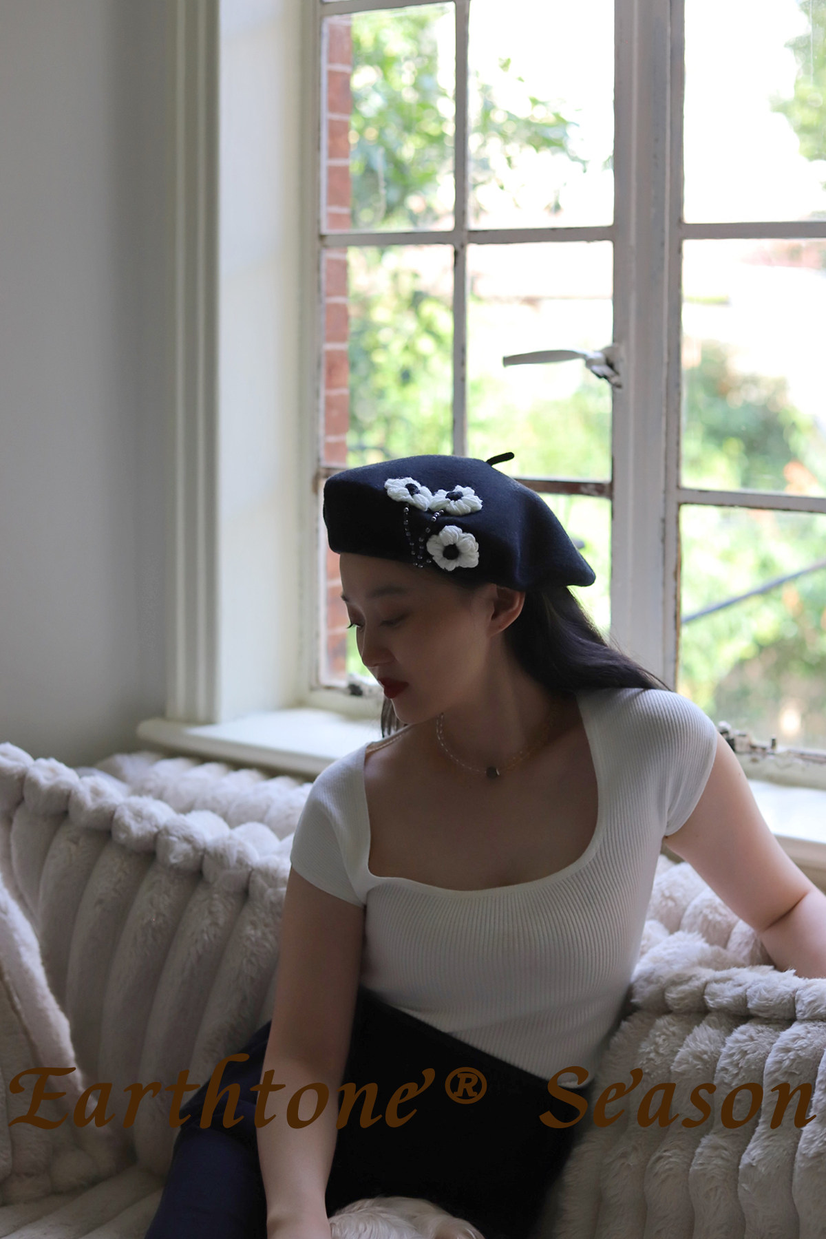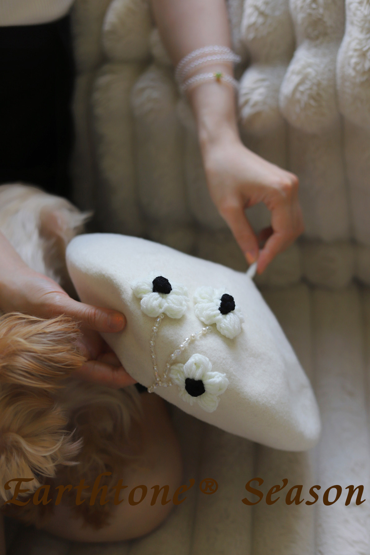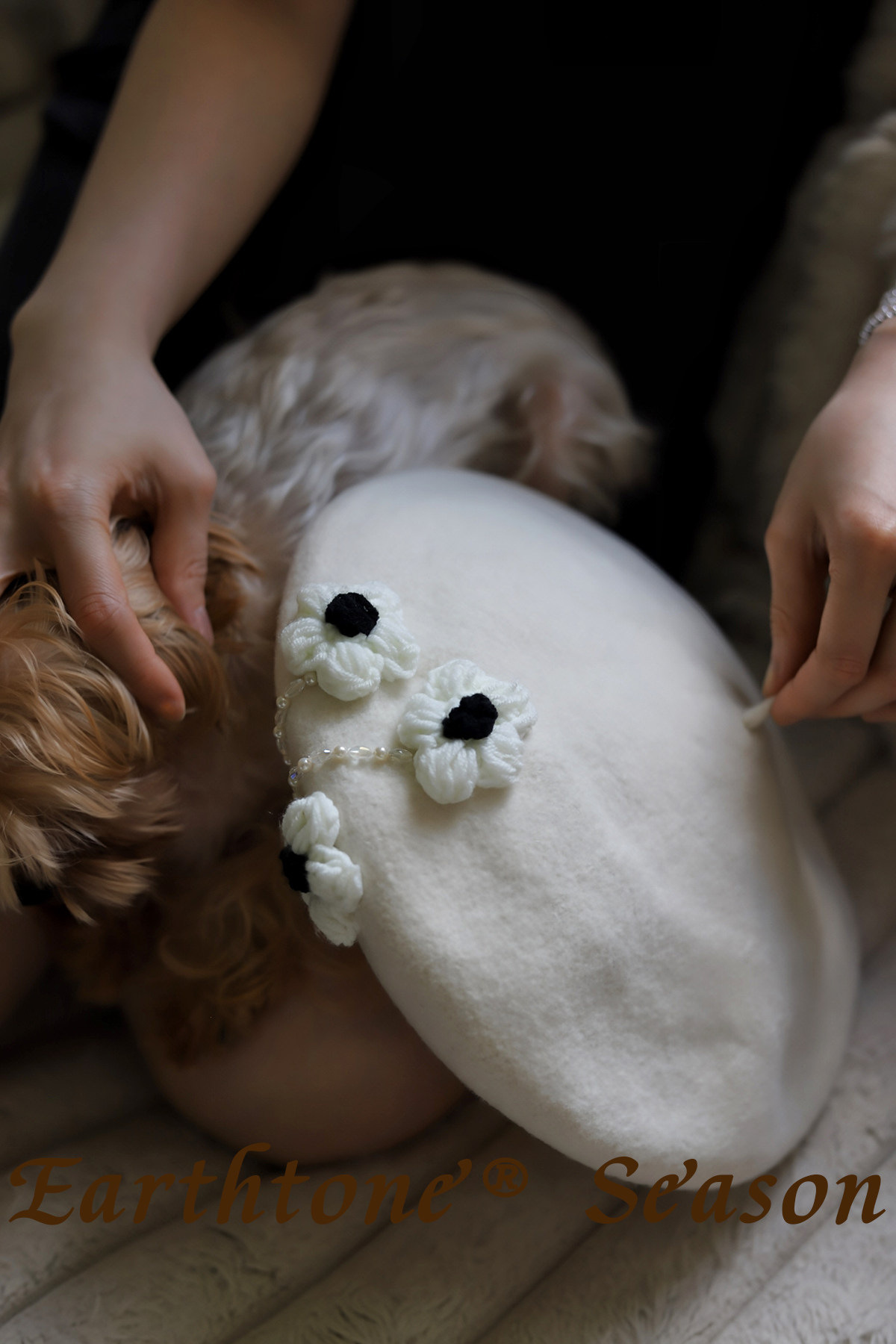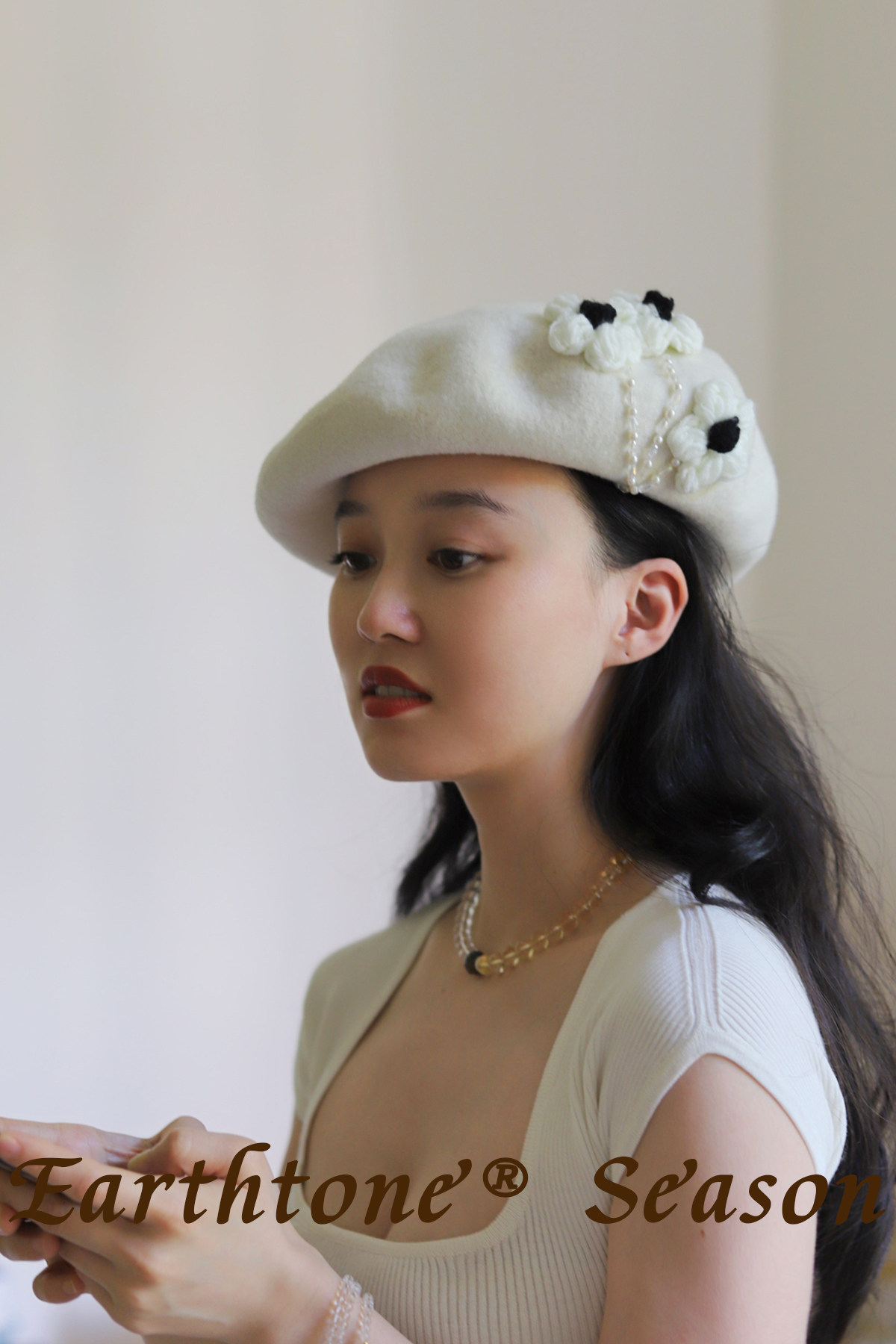 新款韩版花朵羊毛帽保暖贝雷帽显脸小女帽子毛呢画家帽