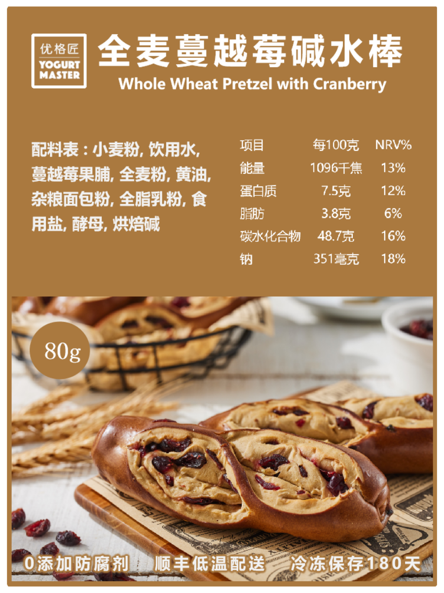 全麦蔓越莓碱水棒 Whole Wheat Pretzel with Cranberry