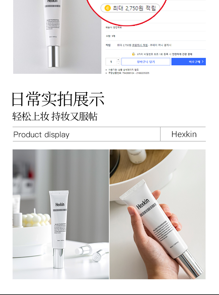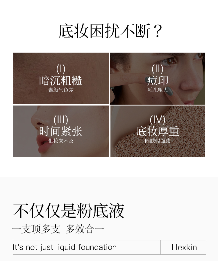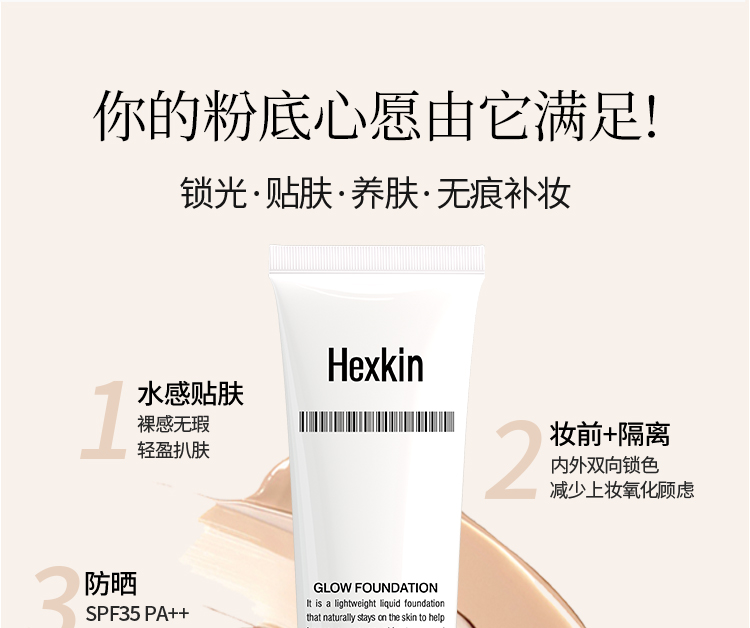 HEXKIN赫诗琴回头霜粉底液膏防晒美白祛斑素颜底妆遮瑕持久不脱妆