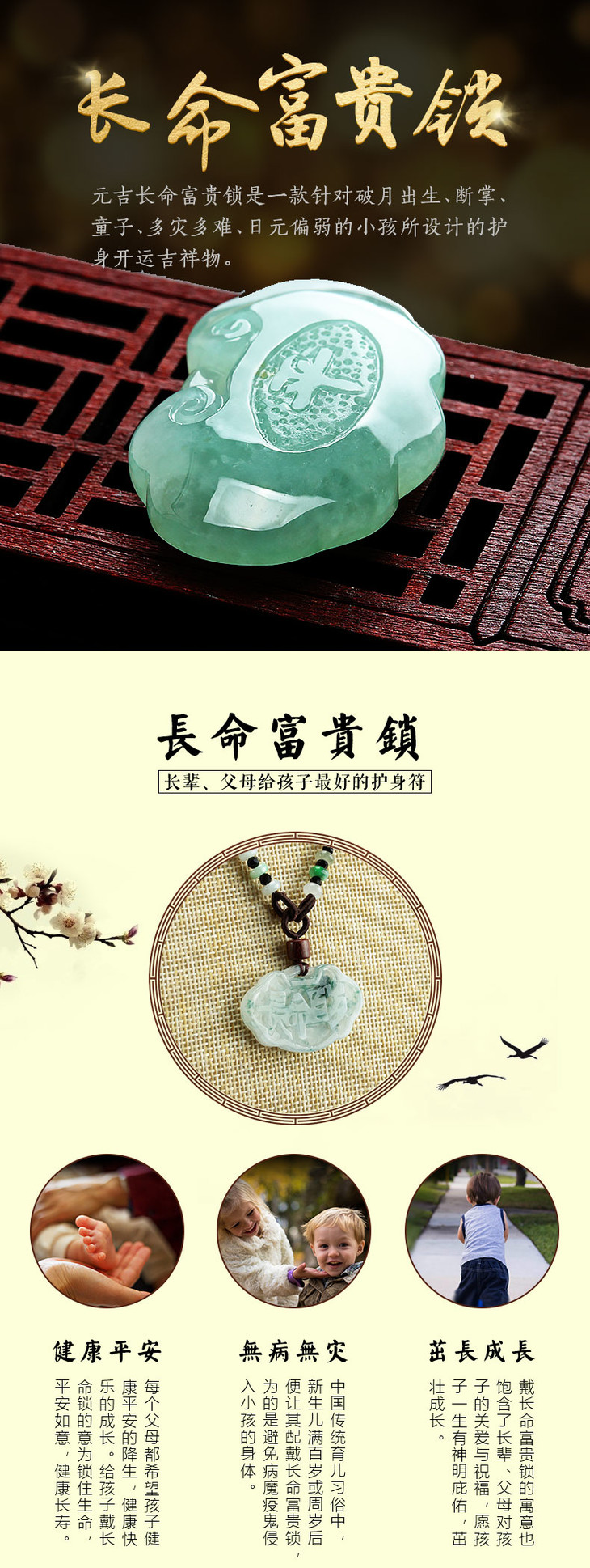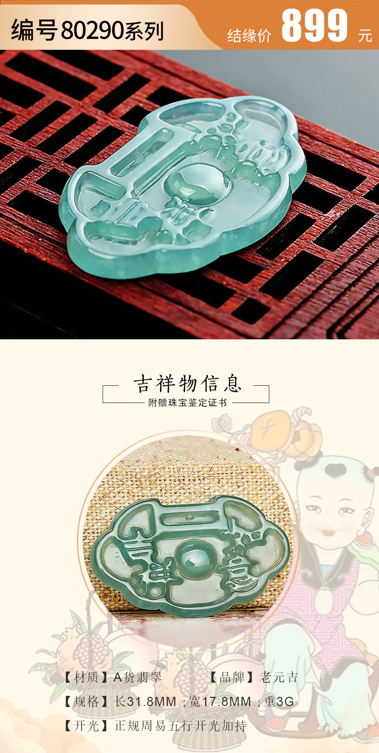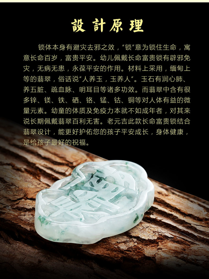 元吉翡翠chang命fu贵锁 宝宝孩子chang命锁吊坠
