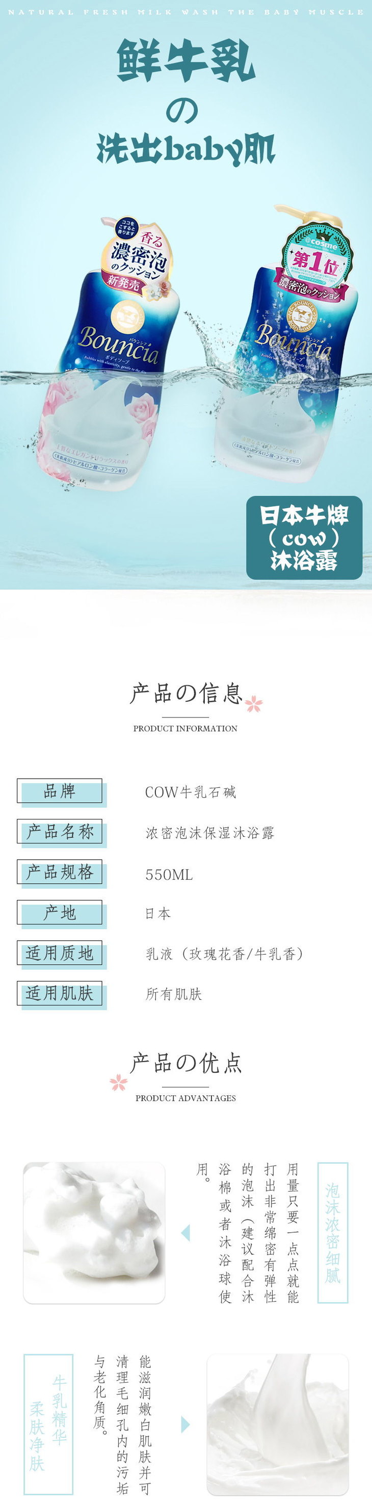 日本COW牛乳石碱浓密泡沫牛奶沐浴露牛奶味/玫瑰味/茉莉梨香/奢华版系列