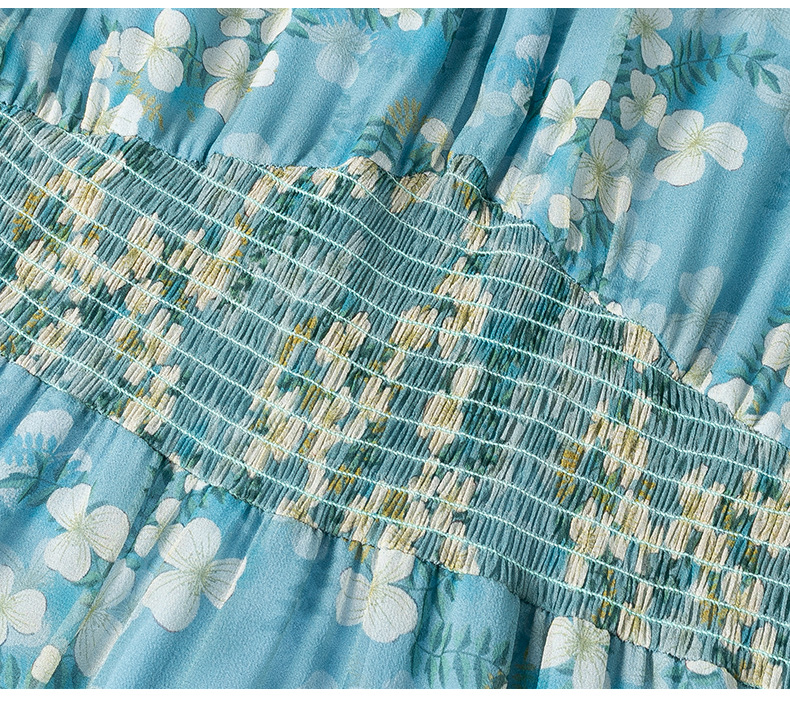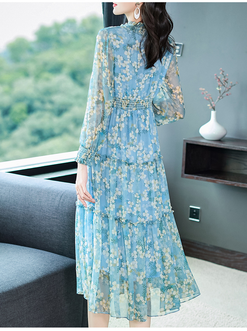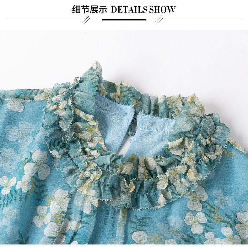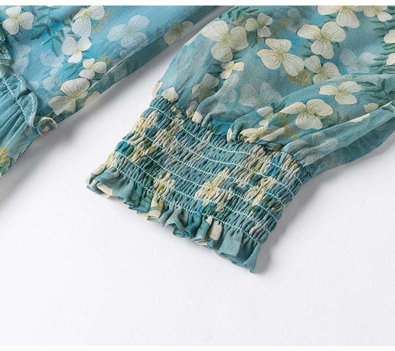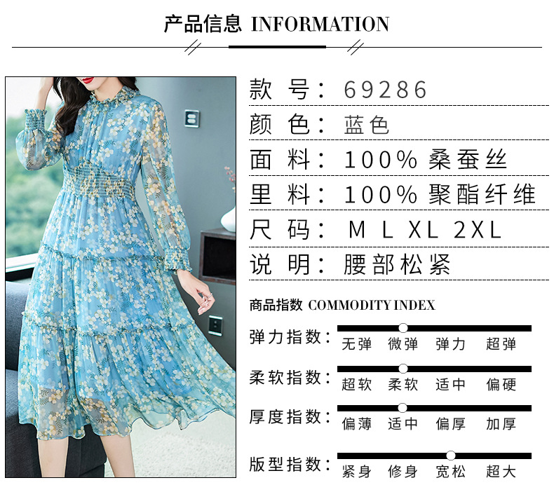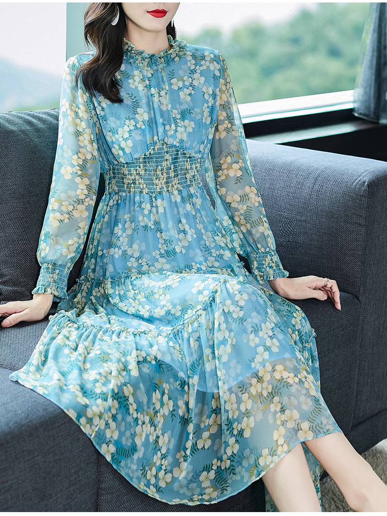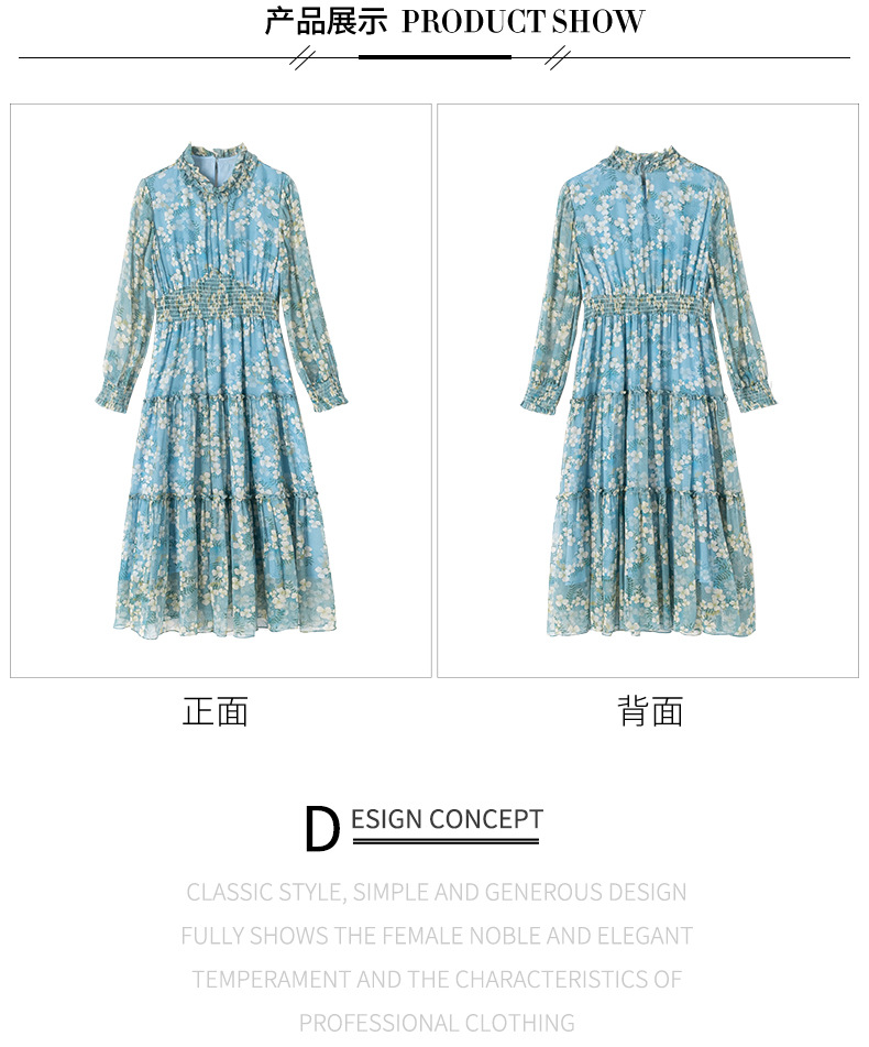 蓝色小碎花真丝印花法式裙 WWM-69286