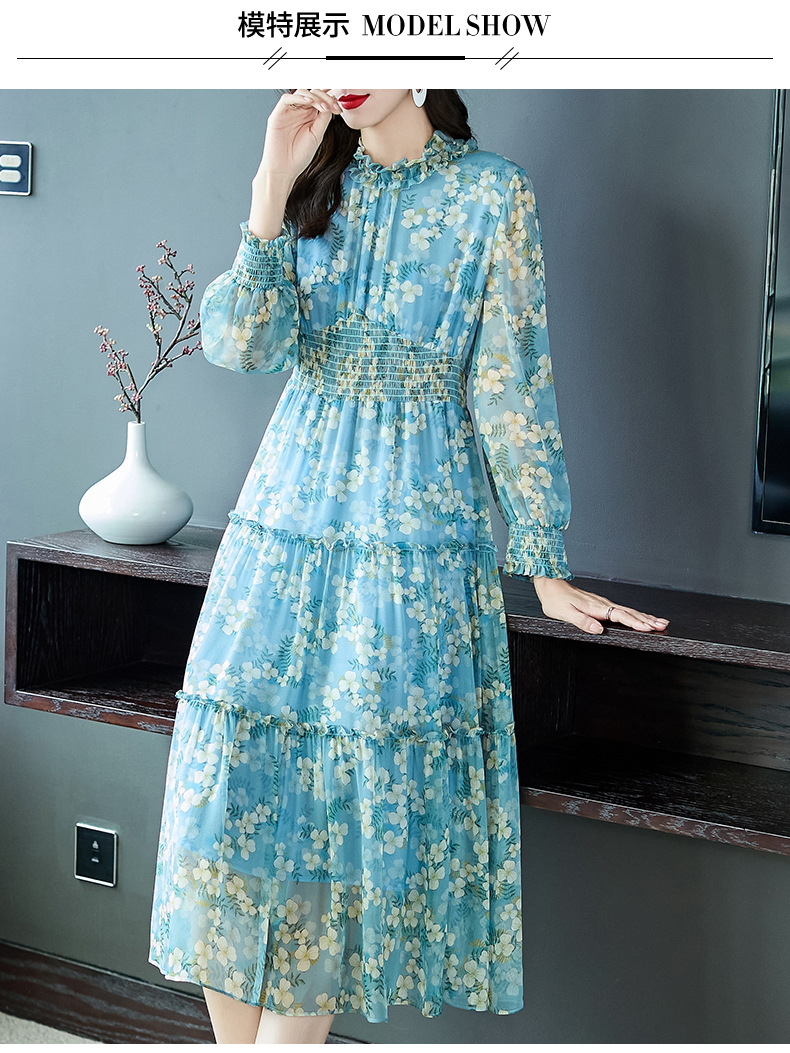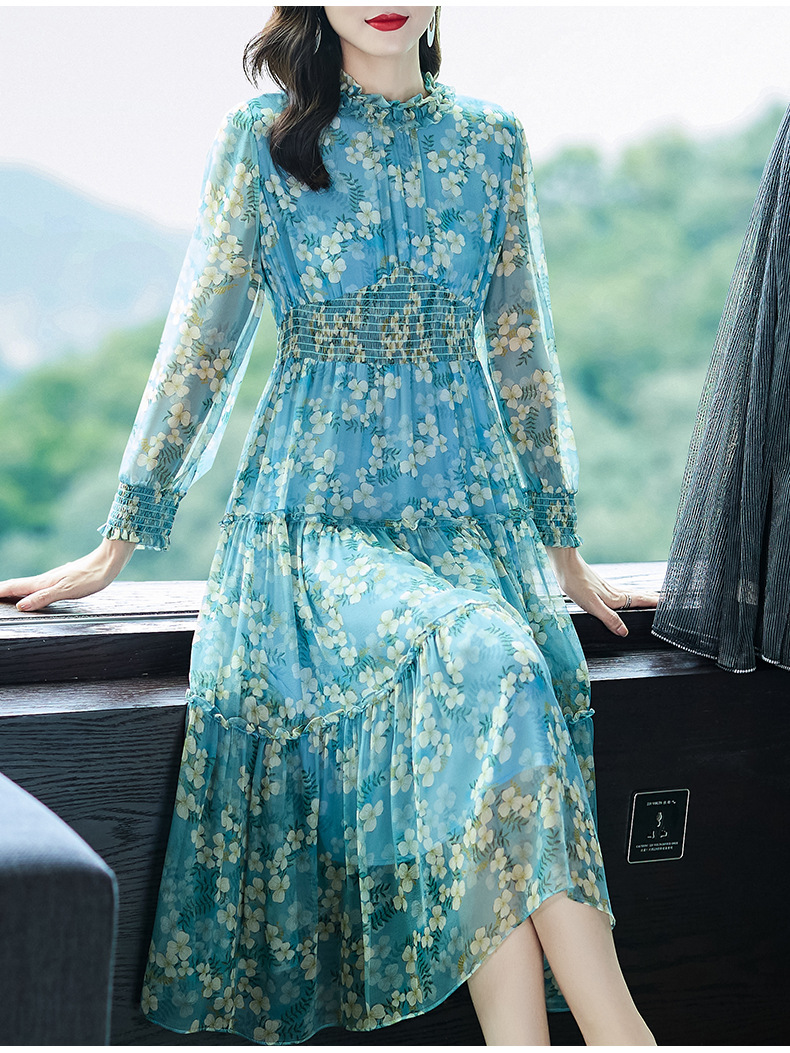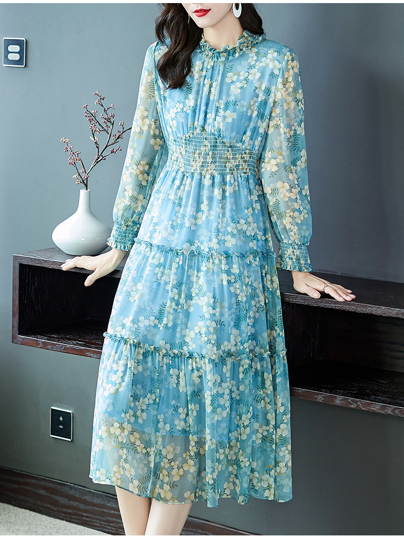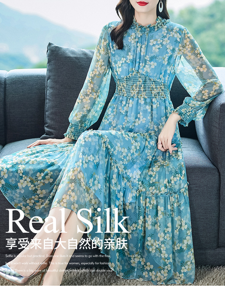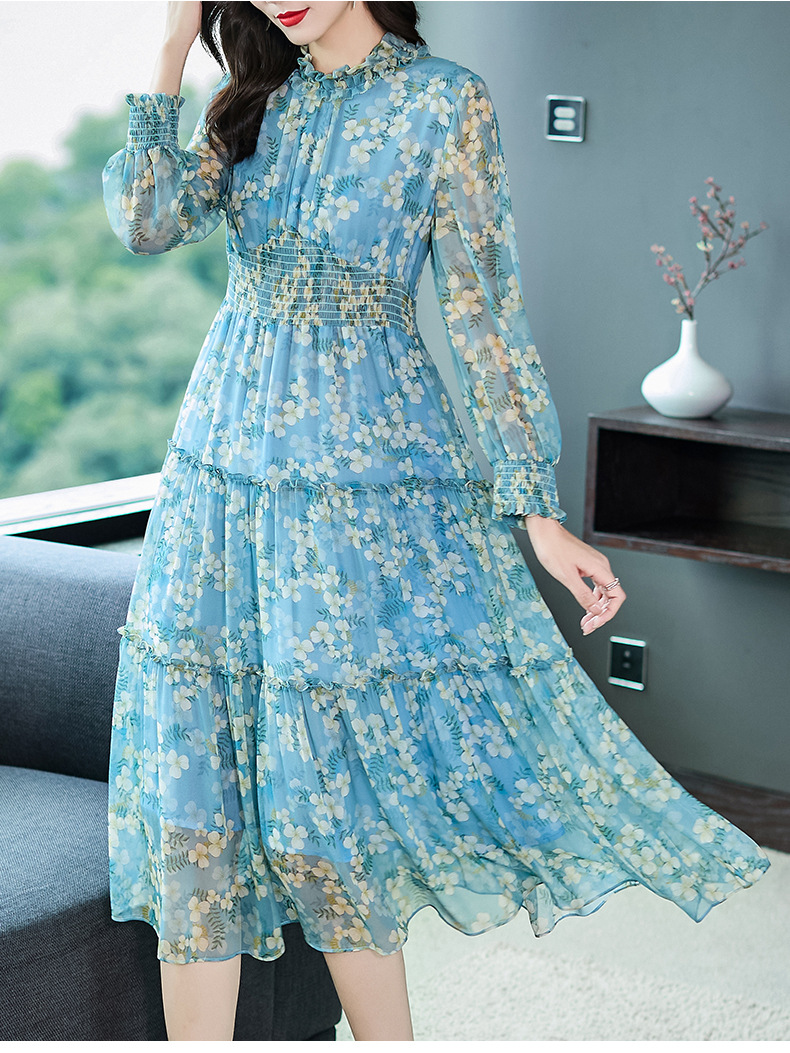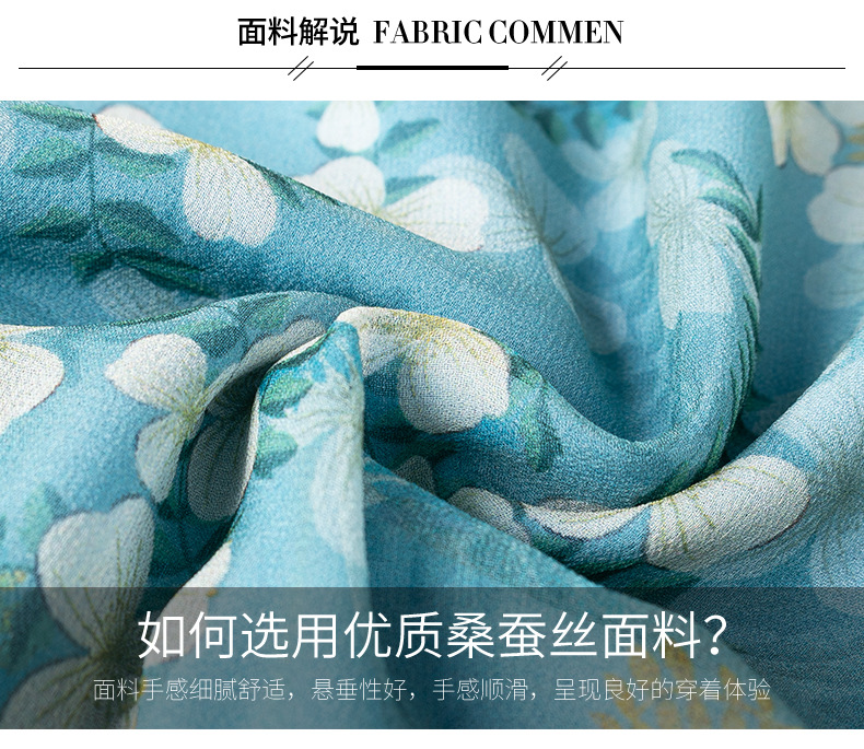 蓝色小碎花真丝印花法式裙 WWM-69286