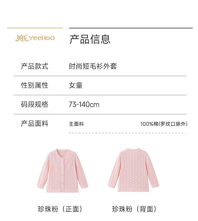 【商场同款】英氏儿童针织衫春夏新款中小童毛衫女童短毛衫外套