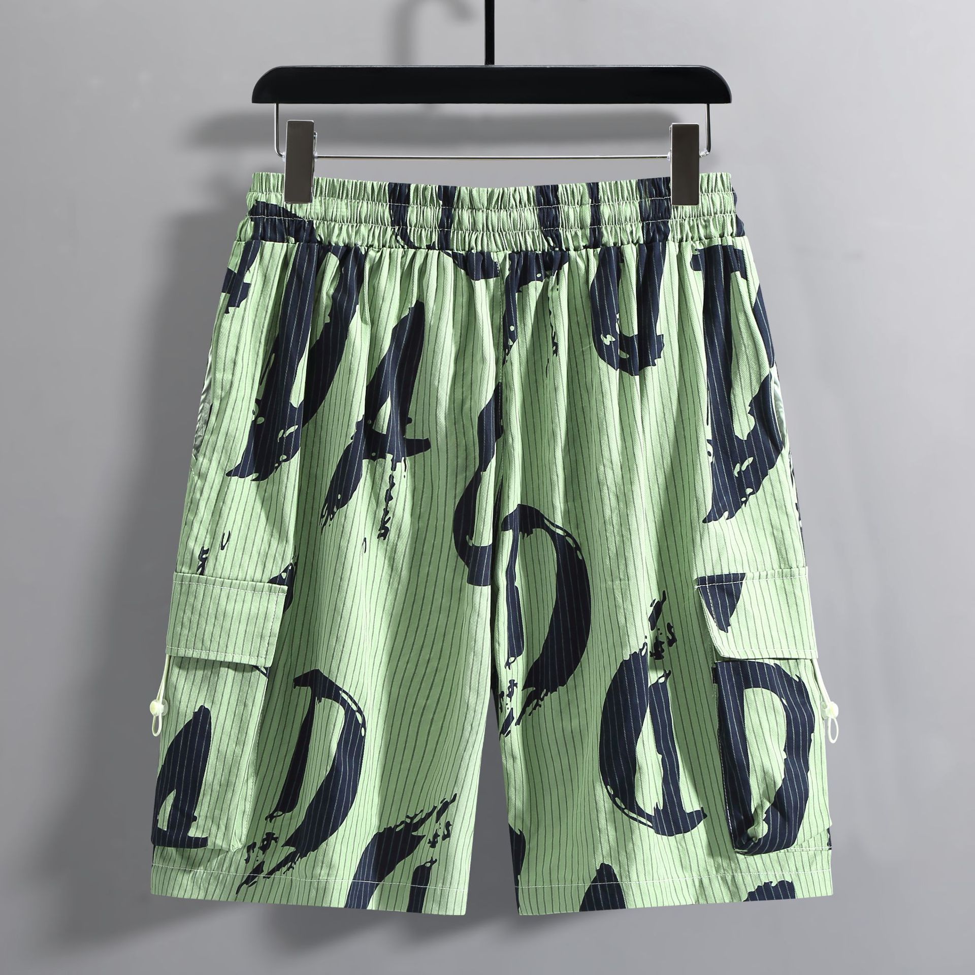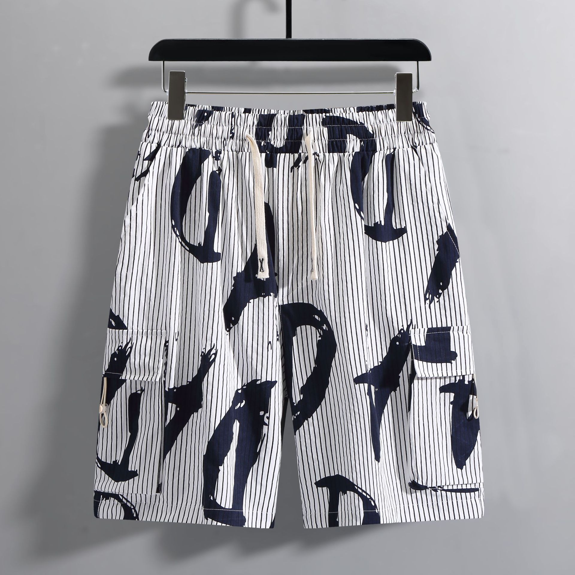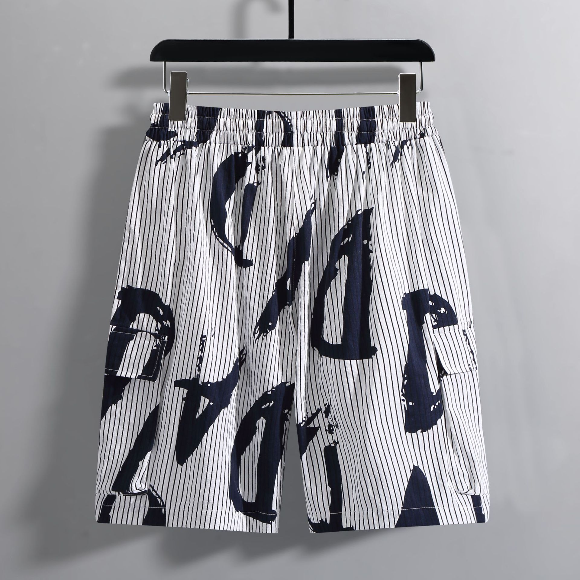 【超大码】【新款DFF】潮牌夏季纯棉宽松细条纹加肥加大码工装短裤透气沙滩裤男休闲外穿五分裤胖子