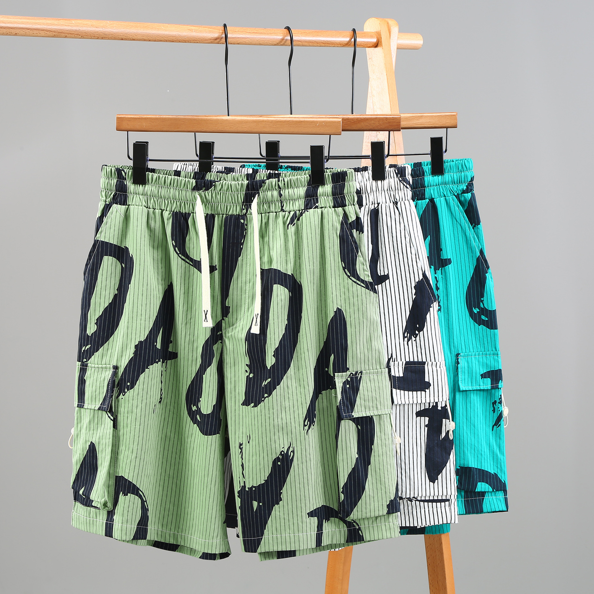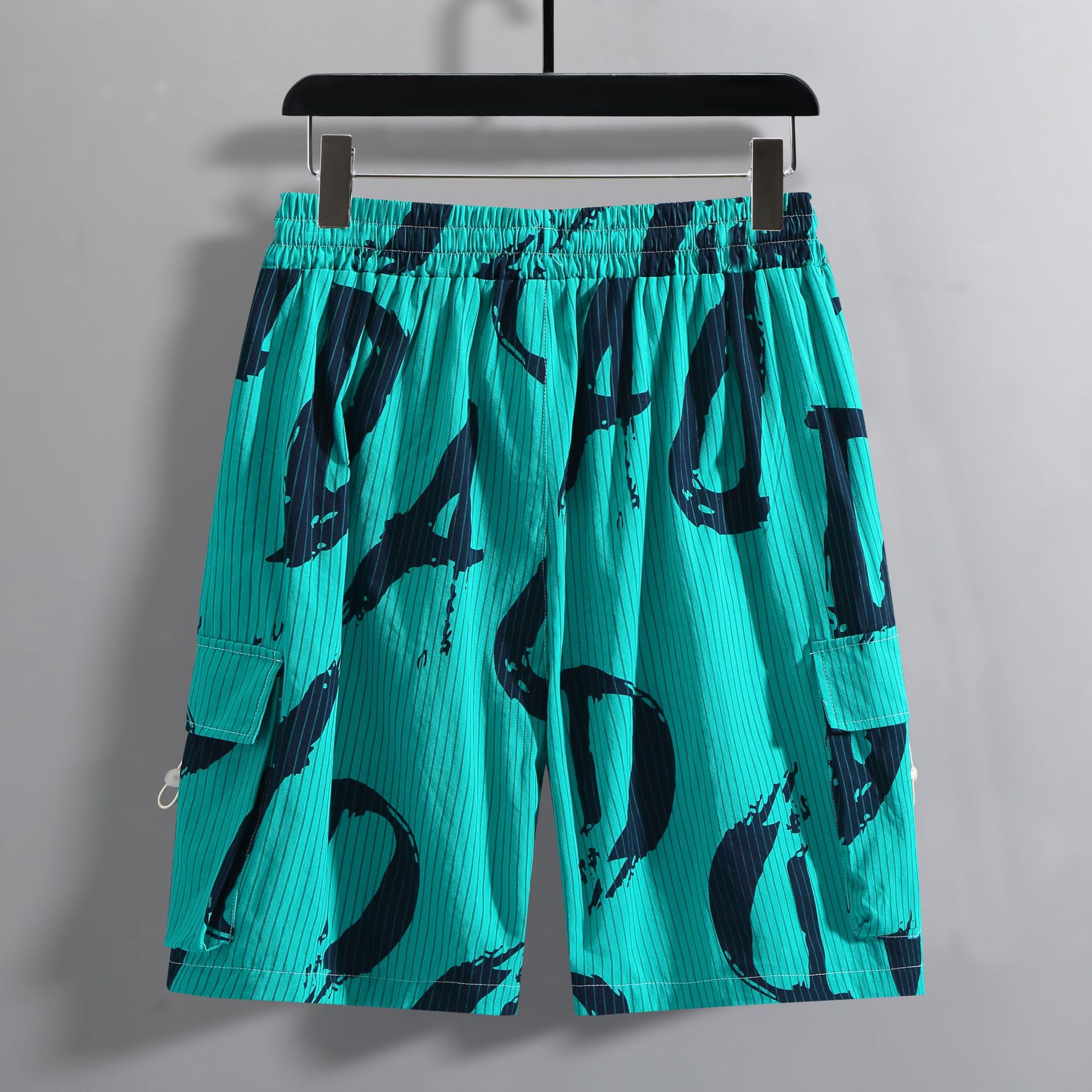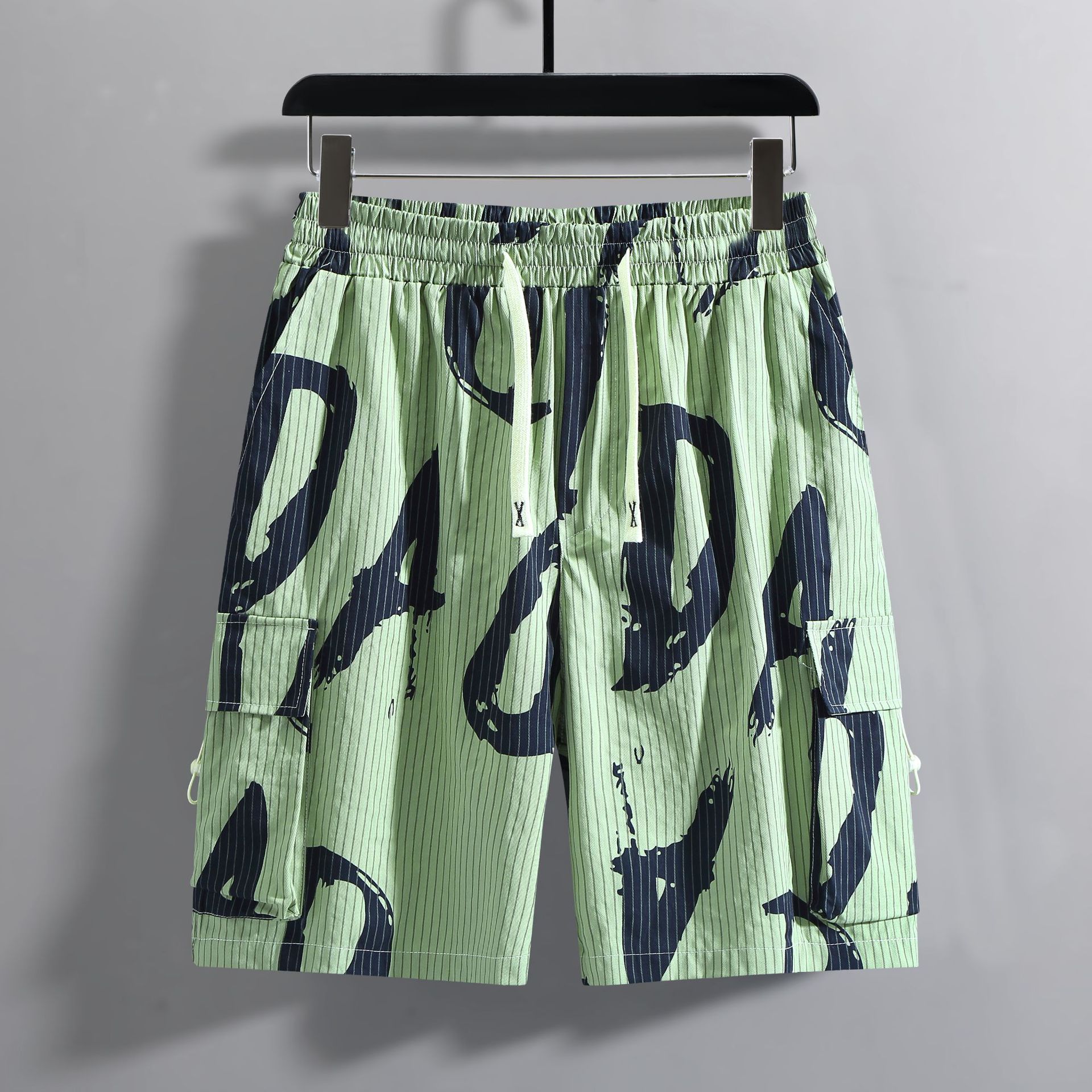 【超大码】【新款DFF】潮牌夏季纯棉宽松细条纹加肥加大码工装短裤透气沙滩裤男休闲外穿五分裤胖子