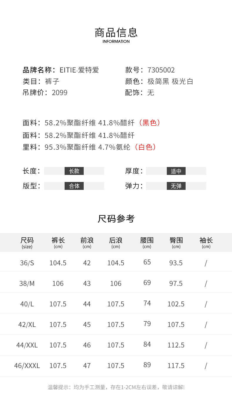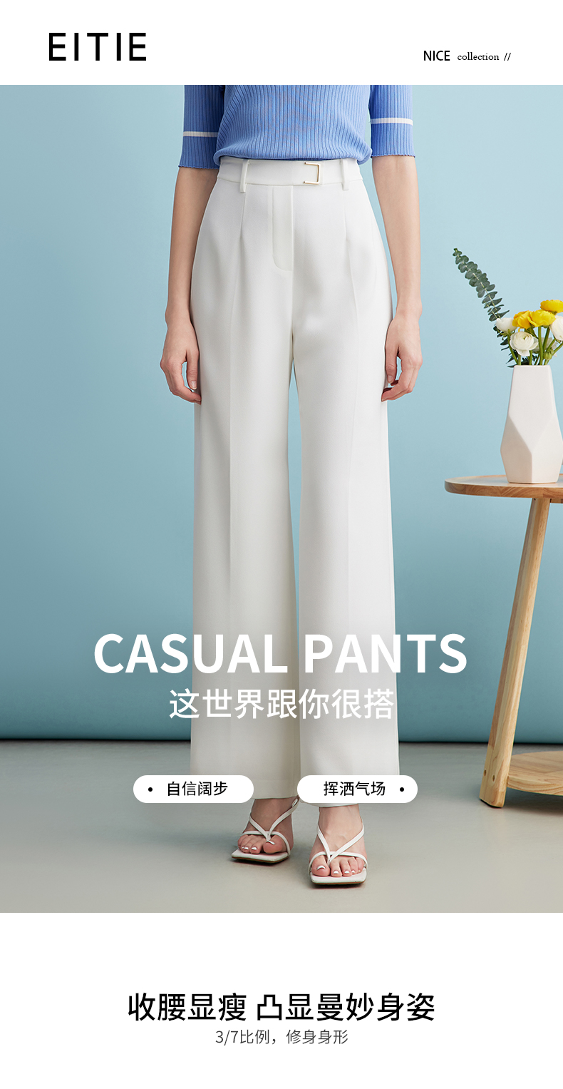 EITIE爱特爱春季新款显瘦直筒裤子7305002