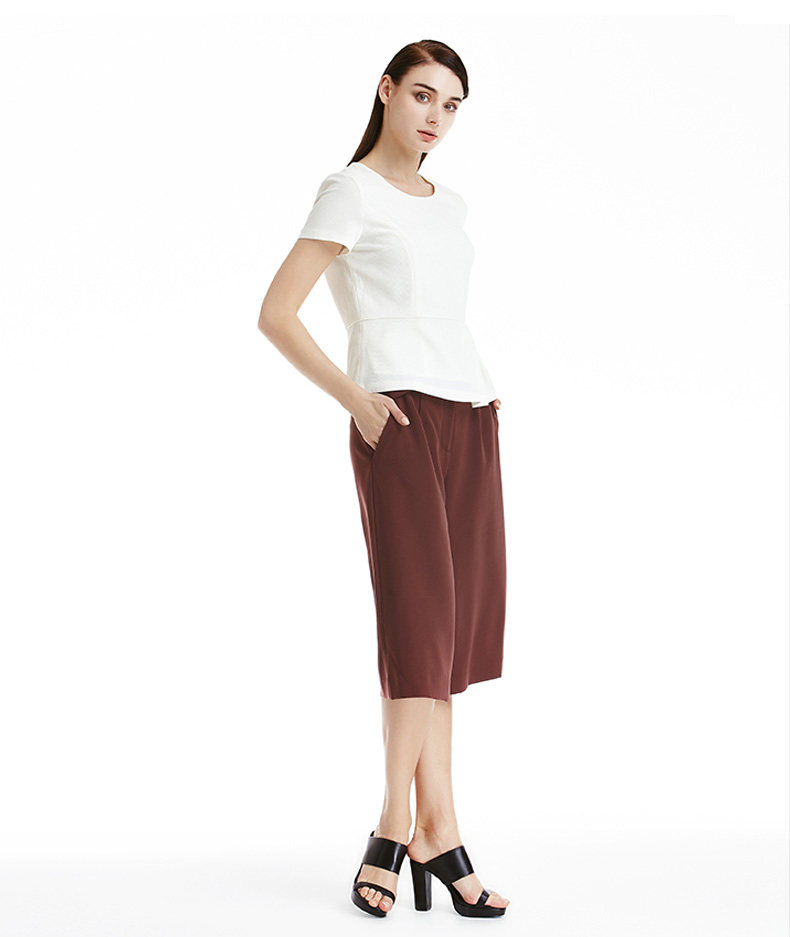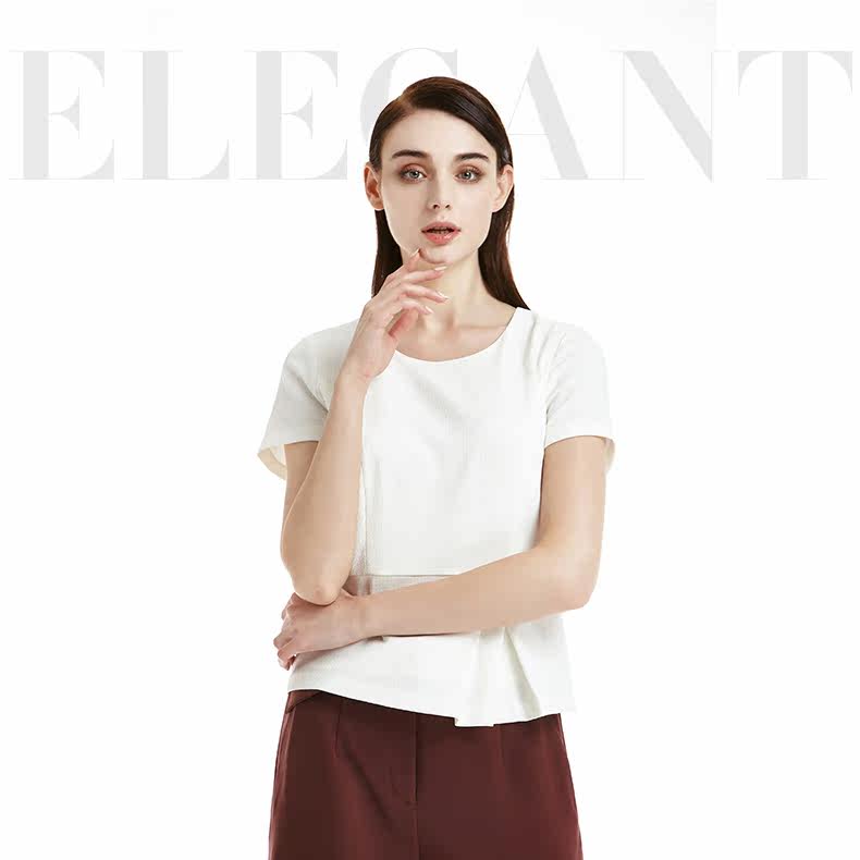 EITIE爱特爱商场同款夏季纯白拼接时尚气质短袖T恤上衣女5313014