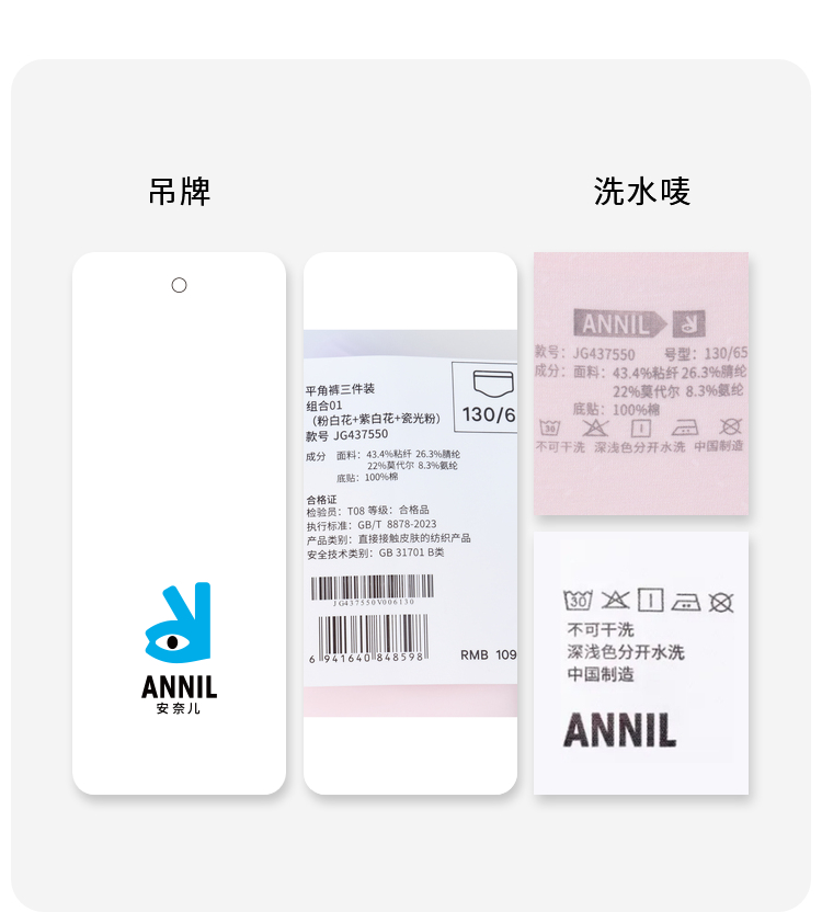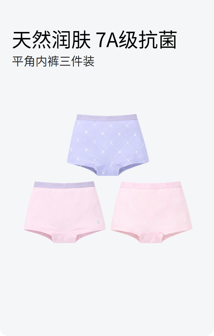【7A抗菌家居】【天然润肤】女童平角内裤三件装新款安奈儿童装实体店同款JG437550