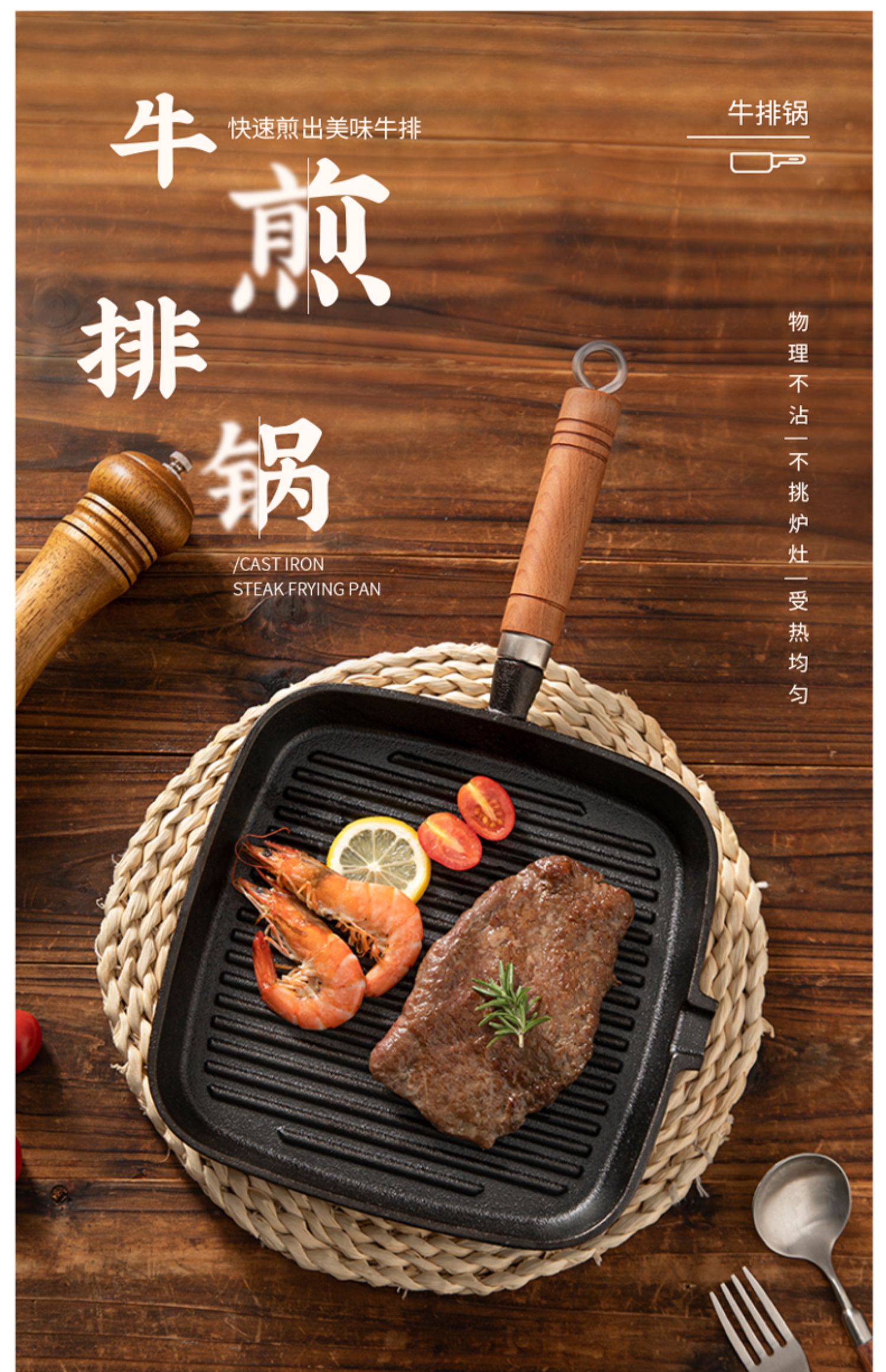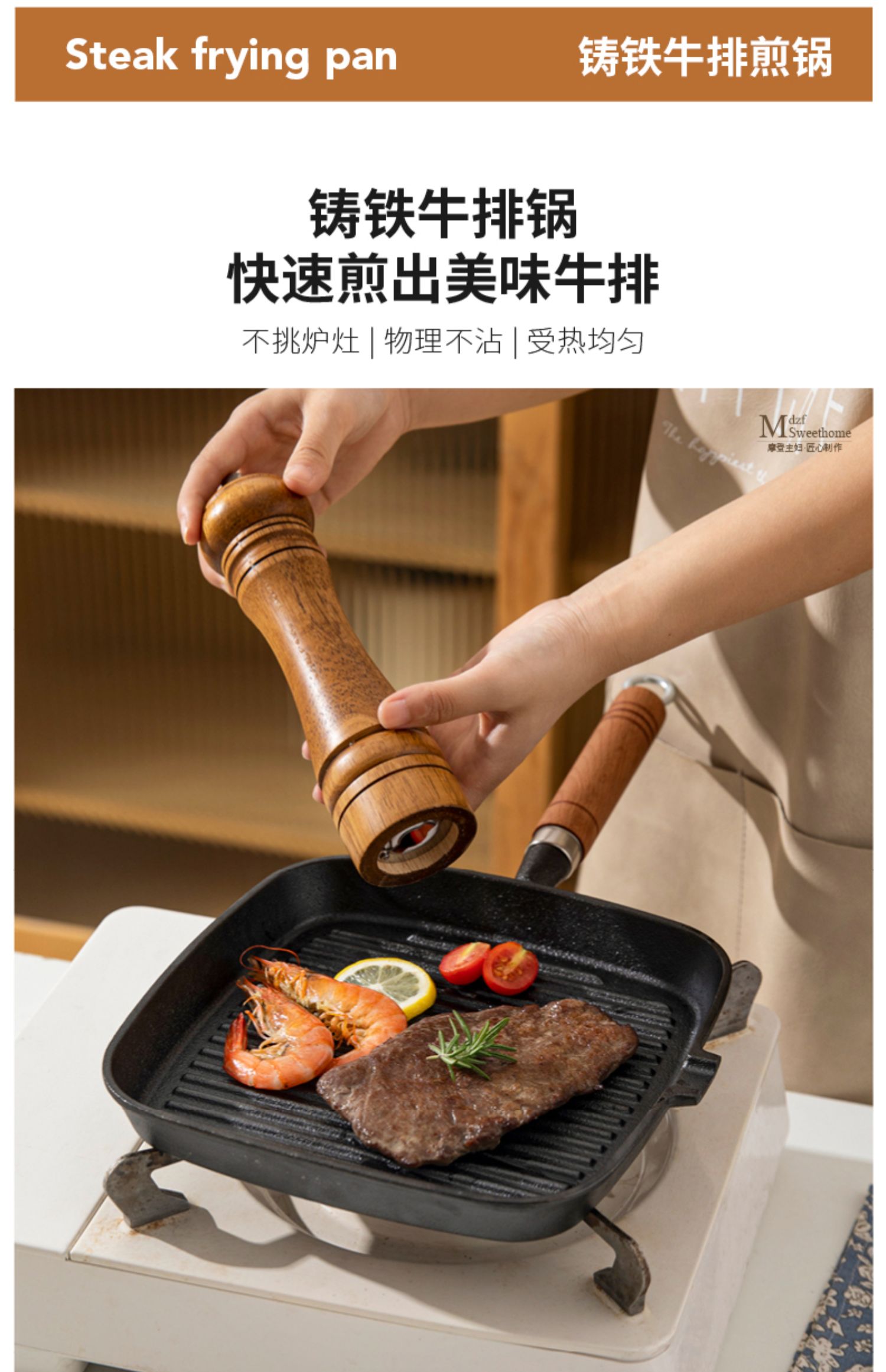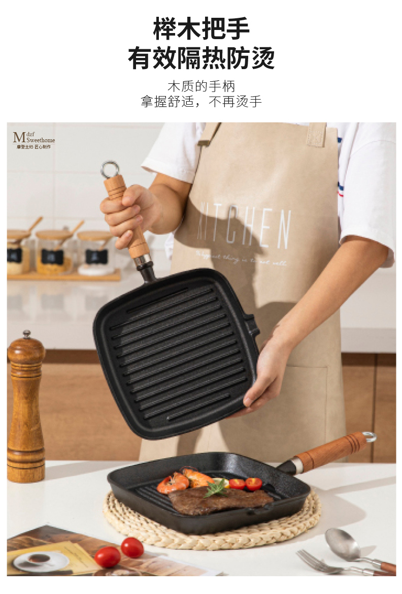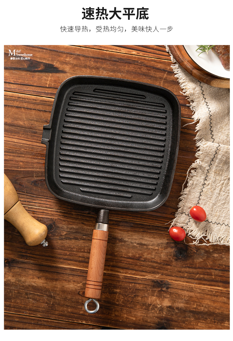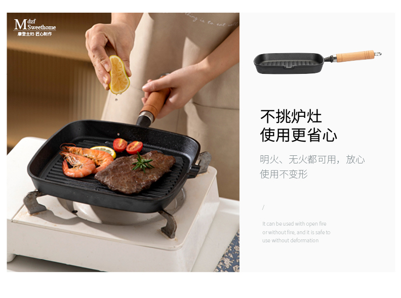 摩登主妇牛排煎锅平底锅家用不粘锅电磁炉牛扒专用煎盘不沾铸铁锅 商品图2