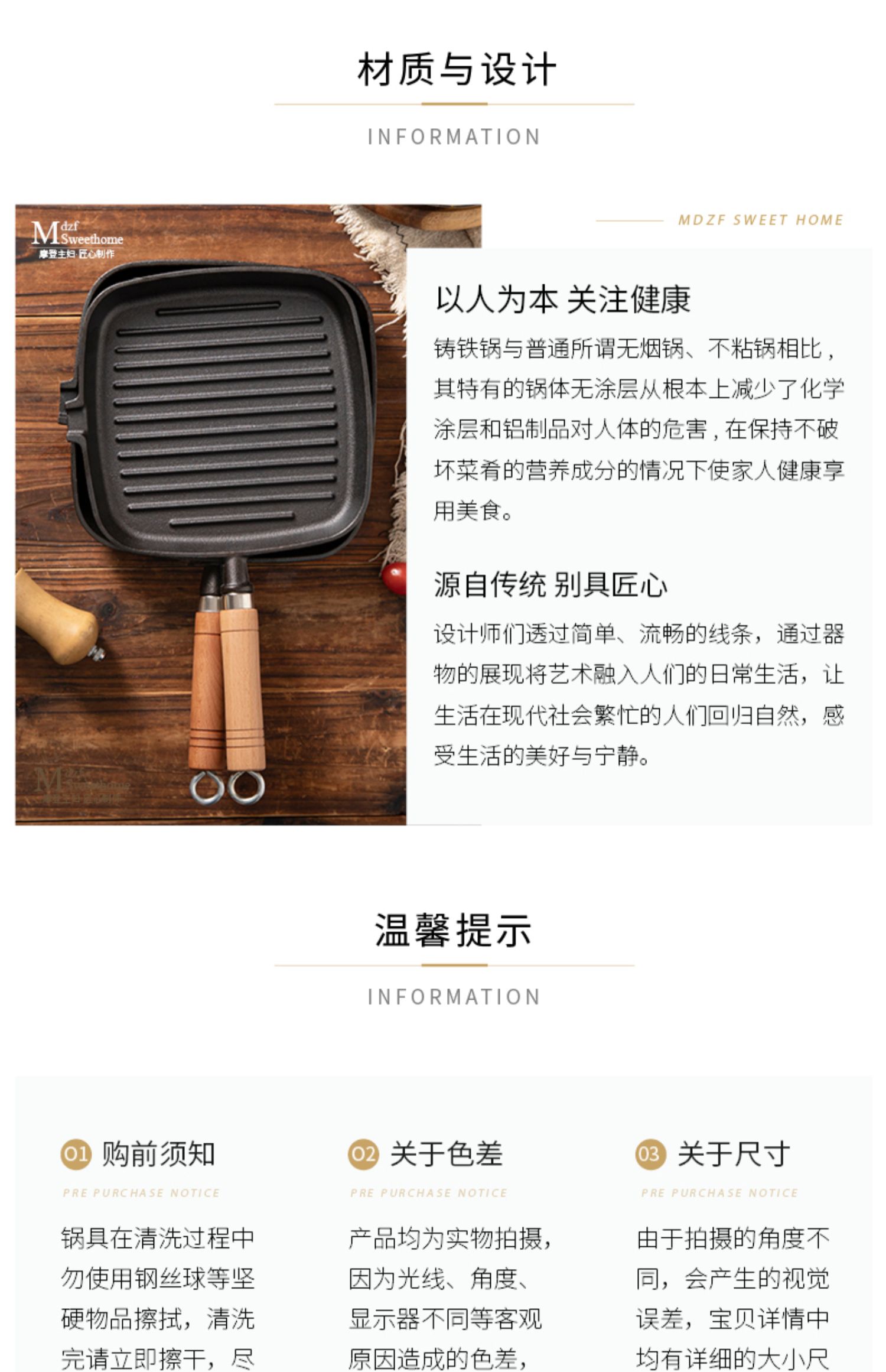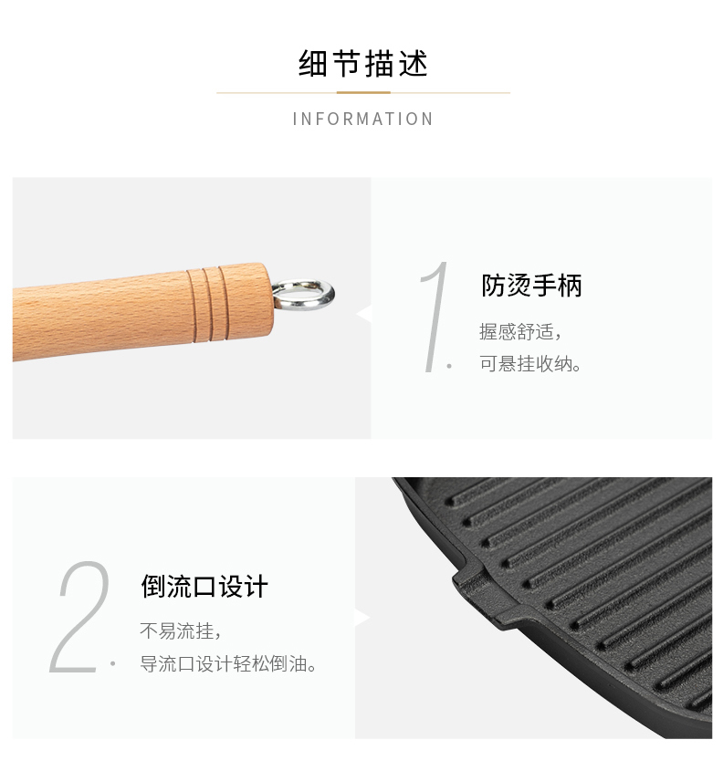 摩登主妇牛排煎锅平底锅家用不粘锅电磁炉牛扒专用煎盘不沾铸铁锅 商品图3