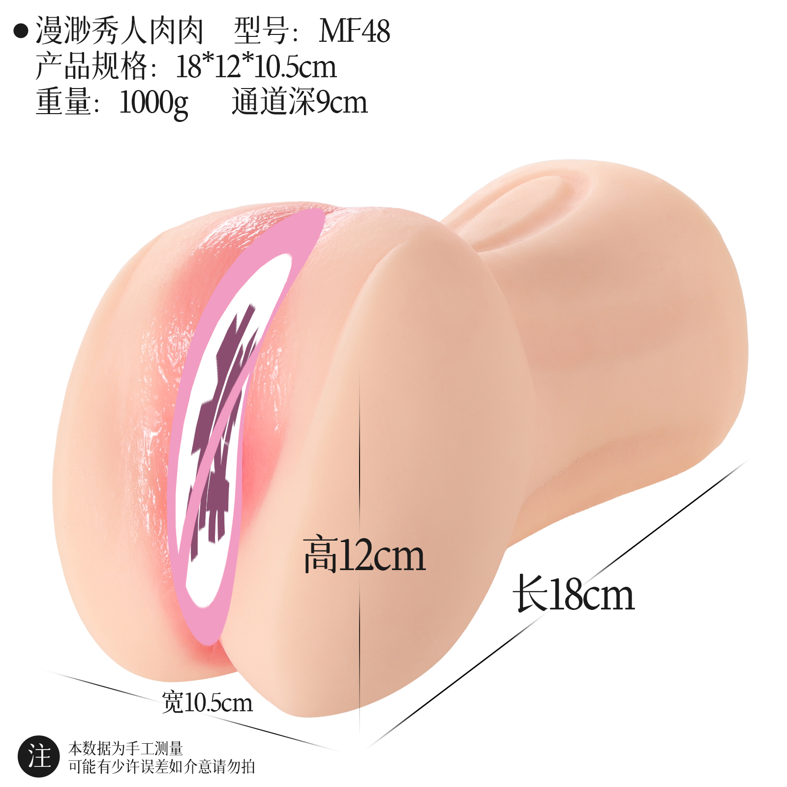漫渺秀人名器系列 XiuRen Model Pussy 快递规格:7号箱:23*13*16 三款合集箱规:29.5*27.5**17cm 重量:3420g 本系列为真人复刻外阴名器 复刻美阴 不同体验内道 进口原料 漫渺秀人肉肉 型号:MF48 条码:6973736552843产品规格:18*12*10.5cm 重量:1000g 通道深15cm 盒规格:17*11*11cm 盒装重:1095g 快递盒重:1212g【产品名称】漫渺秀人肉肉【型号】MF48【产品材质】SRFS【规格尺寸】18*12*10.5cm【颜色】肉色【净重】1000g【主要功能】男士解压【保质期】24个月【生产日期】见包装【品牌名称】ManMiao漫渺【品牌商】上海漫渺国际贸易有限公司【执行标准】Q/MMBJ 002-2017【质检标准】GB/T 22048-2008 GB6675.4-2014 GB 4706.1-2005合格【气味】无香型【保存条件】置阴凉干燥处保存【使用方法】见视频【注意事项】1、本产品为成人用品,严禁未成年人使用 2、产品忌高温且易燃,应远离火源与高温 3、考虑个人卫生问题,使用前后需清洗。——————————————————————————————————————漫渺秀人甜甜 型号:MF49 条码:6973736552850产品规格:16*12*11cm 重量:900g 通道深14cm盒规格:17*11*11cm 盒装重:990g 快递盒重:1105g【产品名称】漫渺秀人甜甜【型号】MF49【产品材质】SRFS【规格尺寸】16*12*11cm【颜色】肉色【净重】900g【主要功能】男士解压【保质期】24个月【生产日期】见包装【品牌名称】ManMiao漫渺【品牌商】上海漫渺国际贸易有限公司【执行标准】Q/MMBJ 002-2017【质检标准】GB/T 22048-2008 GB6675.4-2014 GB 4706.1-2005合格【气味】无香型【保存条件】置阴凉干燥处保存【使用方法】见视频【注意事项】1、本产品为成人用品,严禁未成年人使用 2、产品忌高温且易燃,应远离火源与高温 3、考虑个人卫生问题,使用前后需清洗。——————————————————————————————————————漫渺秀人可儿 型号:MF50 条码:6973736552867规格:16*11.5*10.5cm 重量:820g 通道深13cm盒规格:17*11*11cm 盒装重:915g 快递盒重:1032g【产品名称】漫渺秀人可儿【型号】MF50【产品材质】SRFS【规格尺寸】16*11.5*10.5cm【颜色】肉色【净重】820g【主要功能】男士解压【保质期】24个月【生产日期】见包装【品牌名称】ManMiao漫渺【品牌商】上海漫渺国际贸易有限公司【执行标准】Q/MMBJ 002-2017【质检标准】GB/T 22048-2008 GB6675.4-2014 GB 4706.1-2005合格【气味】无香型【保存条件】置阴凉干燥处保存【使用方法】见视频【注意事项】1、本产品为成人用品,严禁未成年人使用 2、产品忌高温且易燃,应远离火源与高温 3、考虑个人卫生问题,使用前后需清洗。