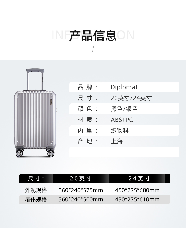 Diplomat外交官TC-667系列带扩充层行李箱20英寸/24英寸
