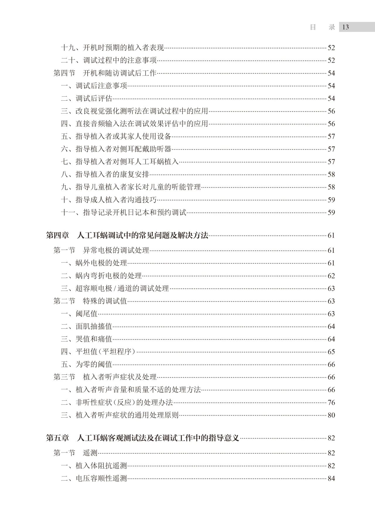 本书旨在为从事人工耳蜗调试工作的听力学工作者提供尽可能详尽的调试理论基础知识及开机调试操作方法和注意事项。全书共有13个章节,详细解释了调试工作中常见的概念、术语、参数等。针对调试过程中遇到的一些特殊问题进行了阐述,并提出了处理意见及具体方法。此外,部分编者分享了他们的调试案例,更有植入者分享了他们的听声体验和康复经历。听力师通过系统掌握人工耳蜗调试工作的理论知识和实践操作技巧,从而为广大人工耳蜗植入者提供更优质的服务,确保他们能通过使用人工耳蜗设备达到听声效果最大化。