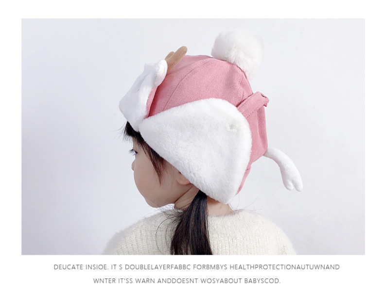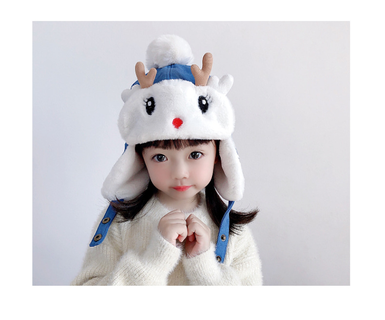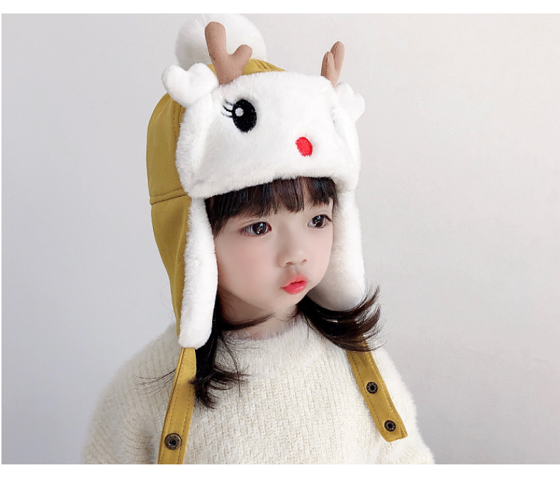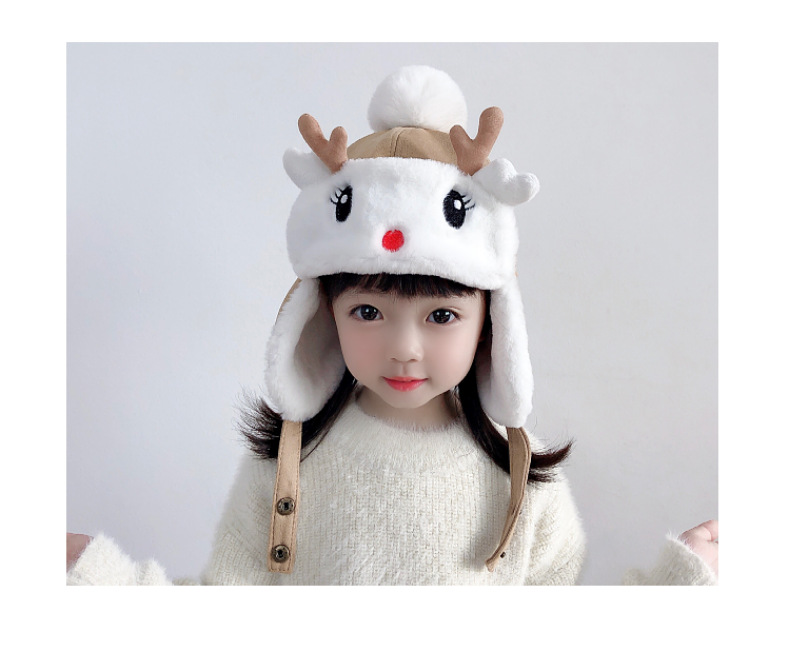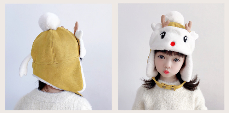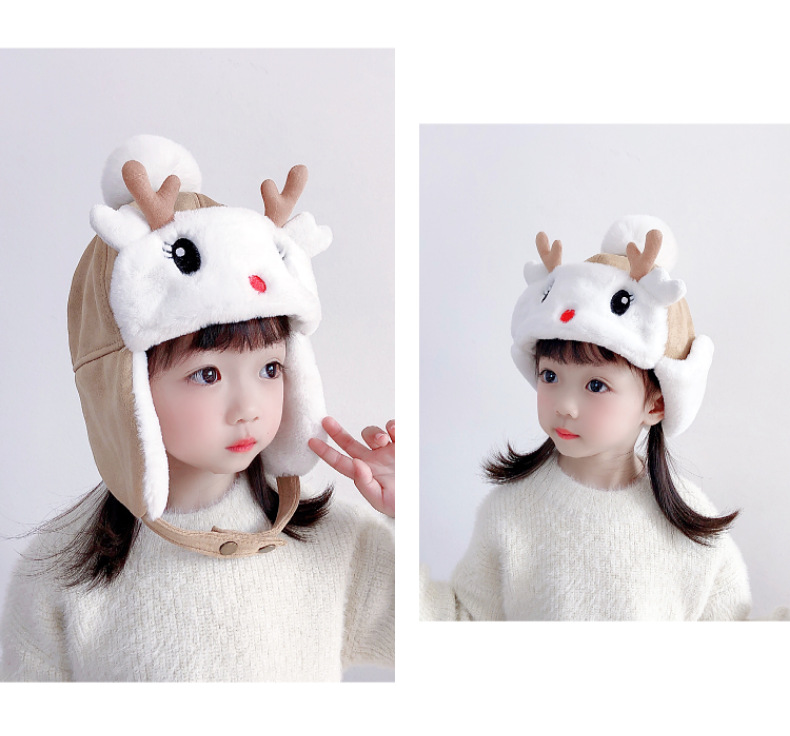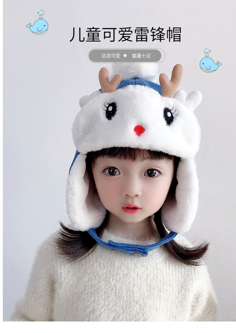 【儿童可爱雷锋帽,活泼可爱,童趣十足】儿童帽子 秋冬季女童宝宝 可爱鹿角婴儿护耳帽 男童加绒加厚雷锋帽冬季-QQ