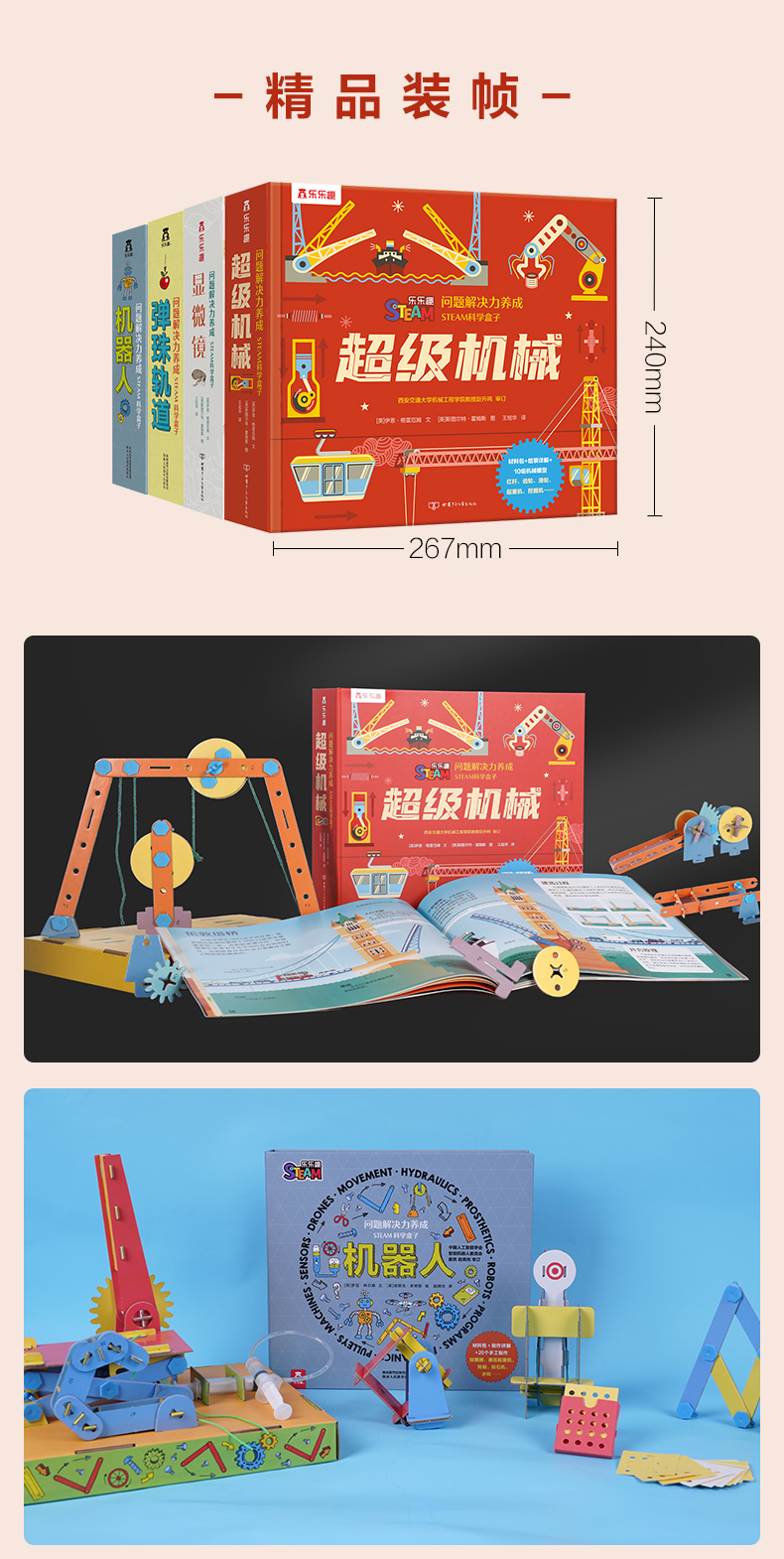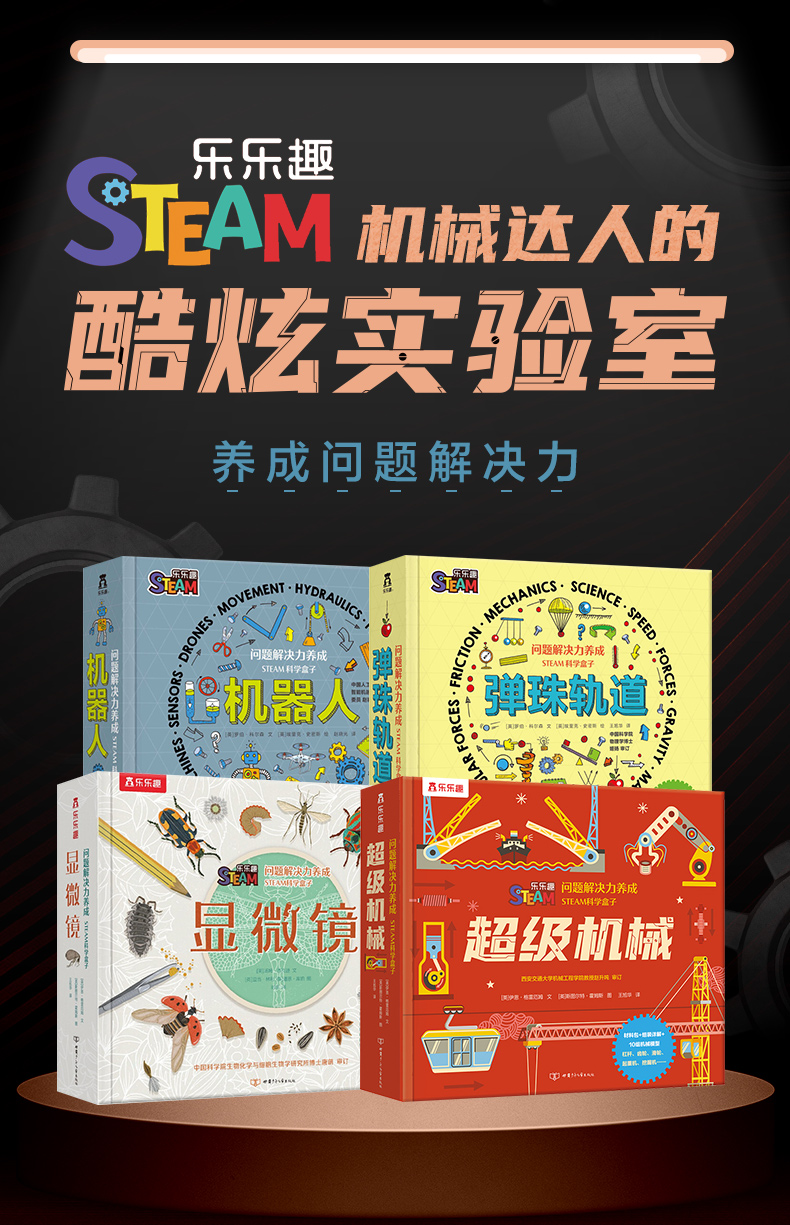 【常青藤爸爸】问题解决力养成STEAM科学盒子(四册)-弹珠轨道-超级机械-机器人-显微镜