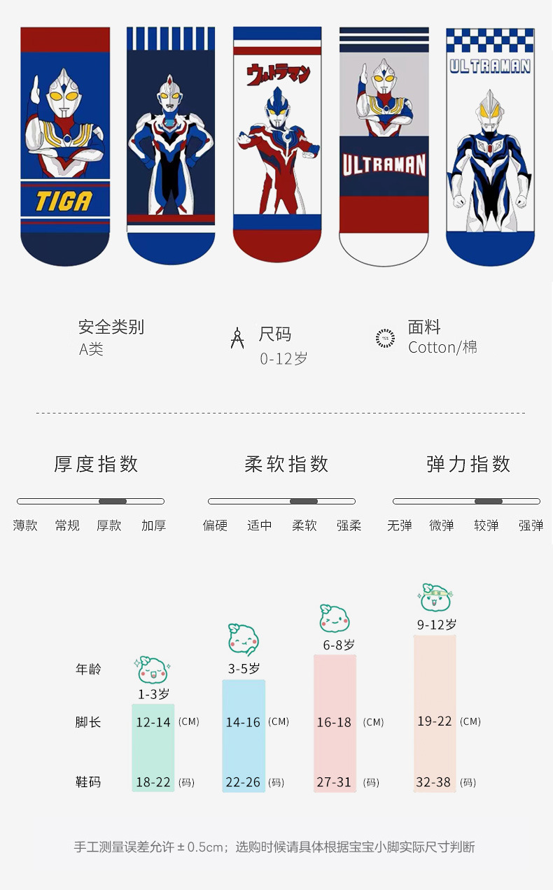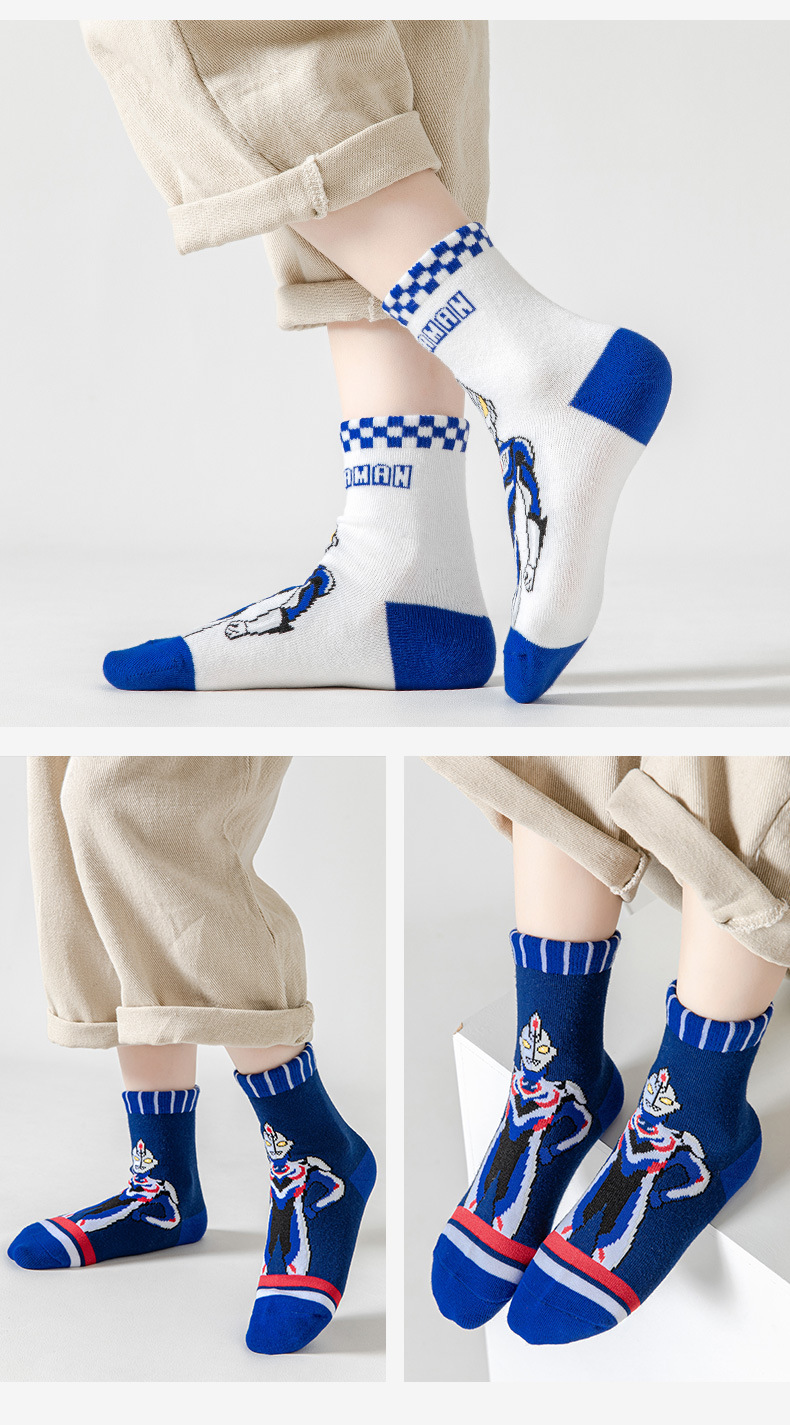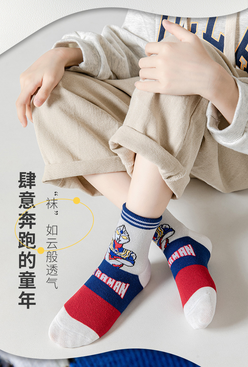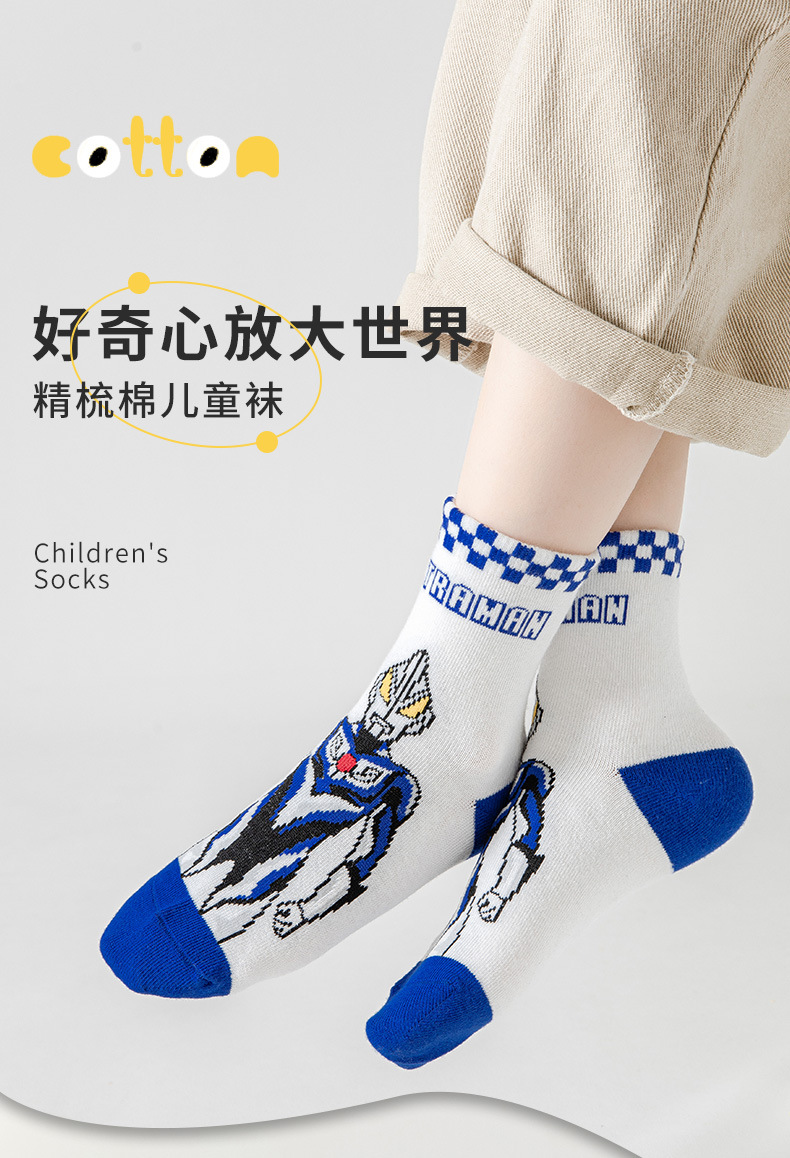 【你相信“光”吗,源于发现生活之美】五双装!儿童奥特曼袜子 男童秋冬运动袜 女童中筒袜 宝宝棉袜 卡通学生袜 好奇心放大世界 精梳棉儿童袜-QQ