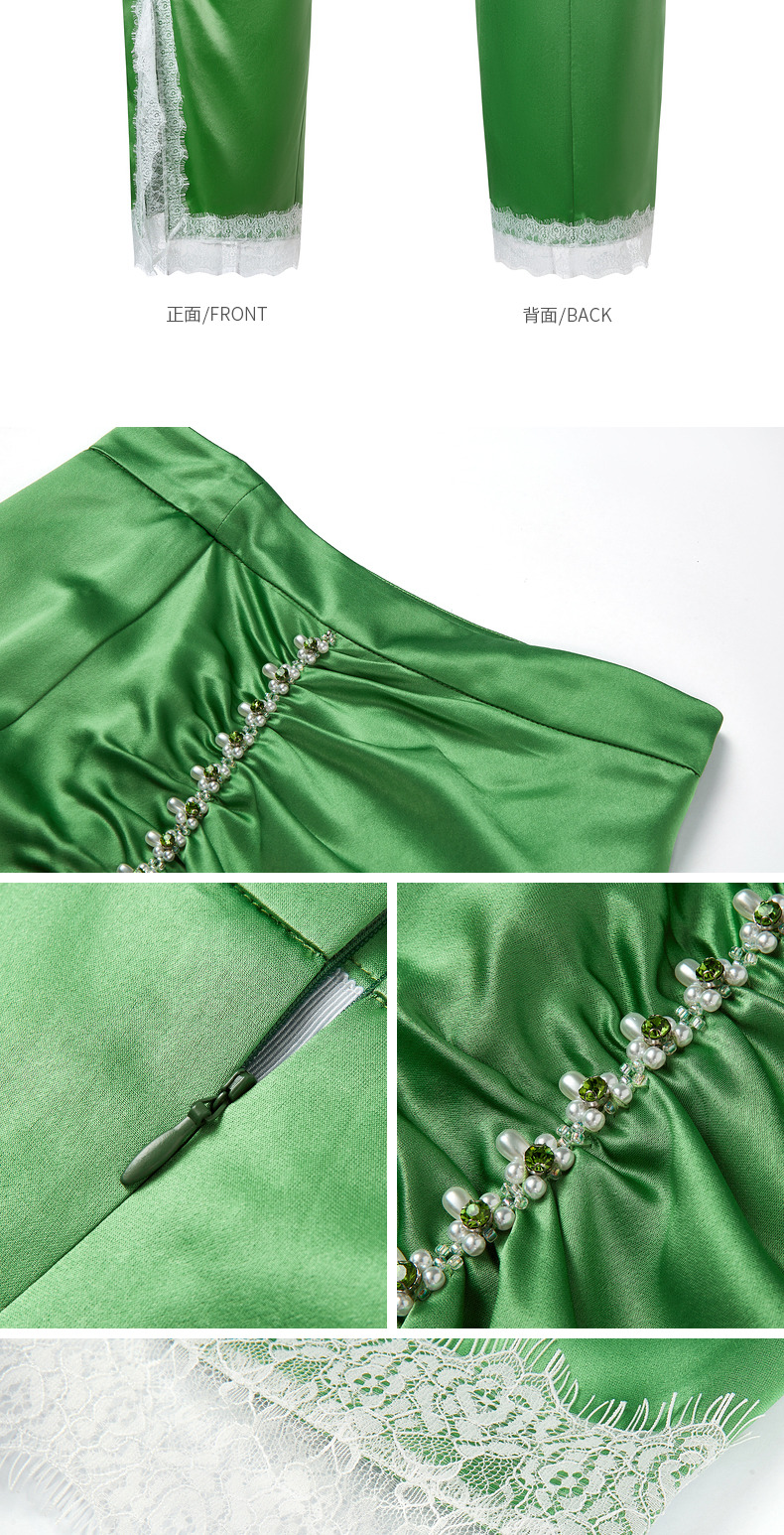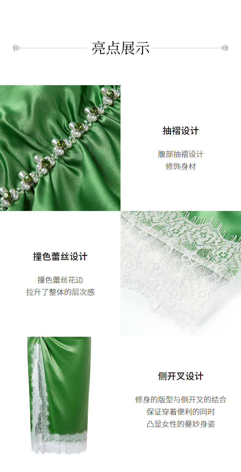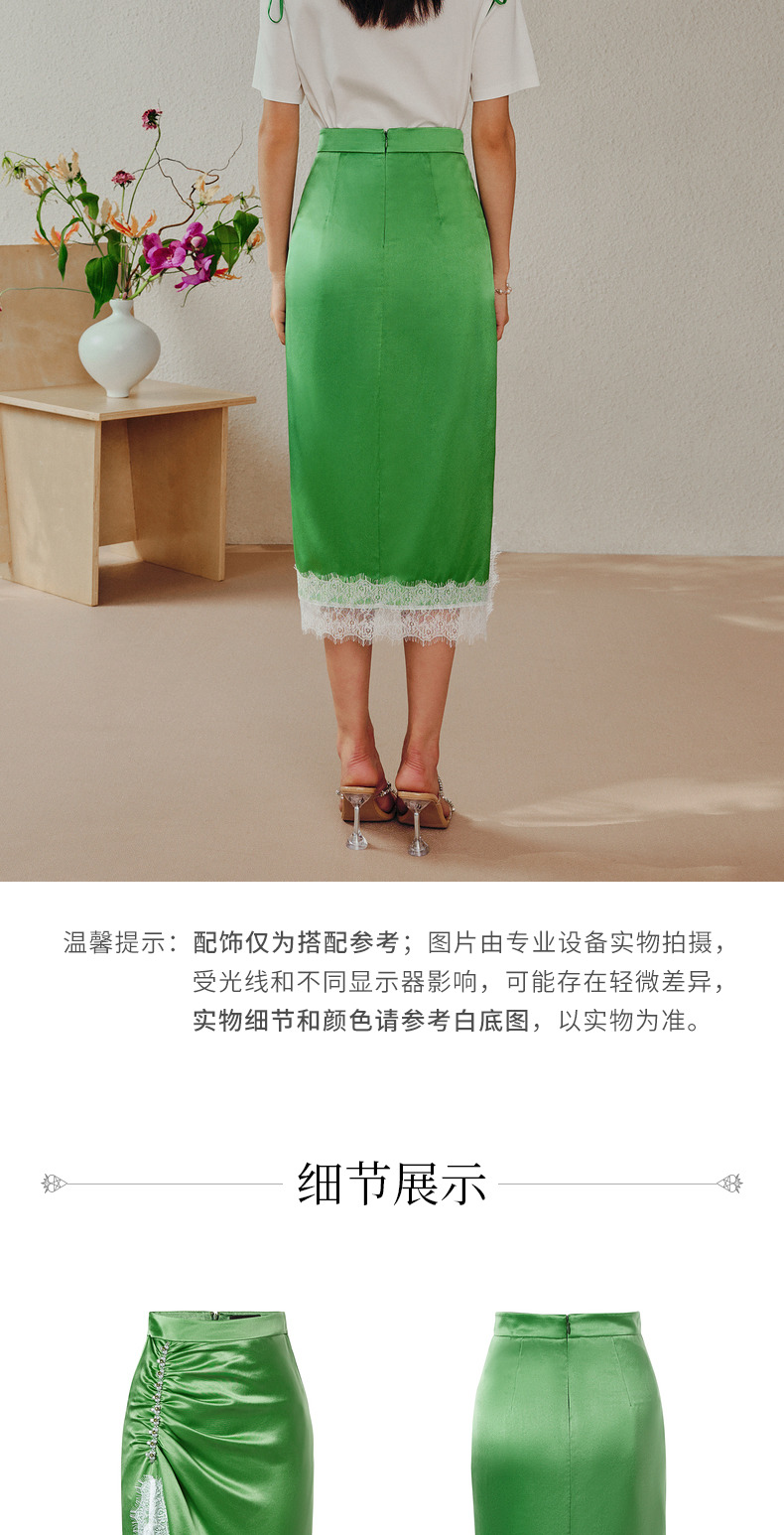 MAXRIENY赫本海军风波光缎面半裙修身包臀开叉裙(货号:MC88SK252)
