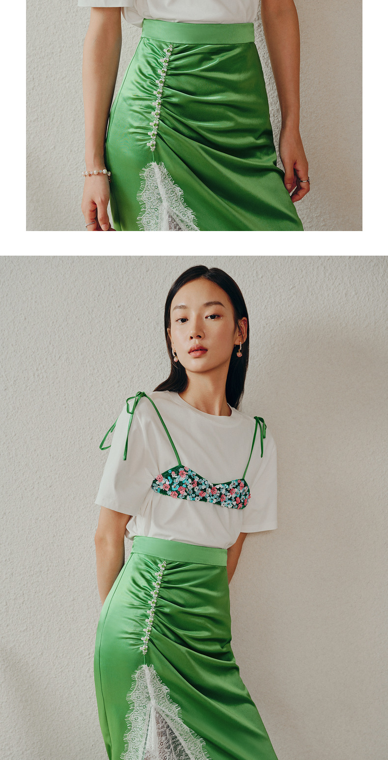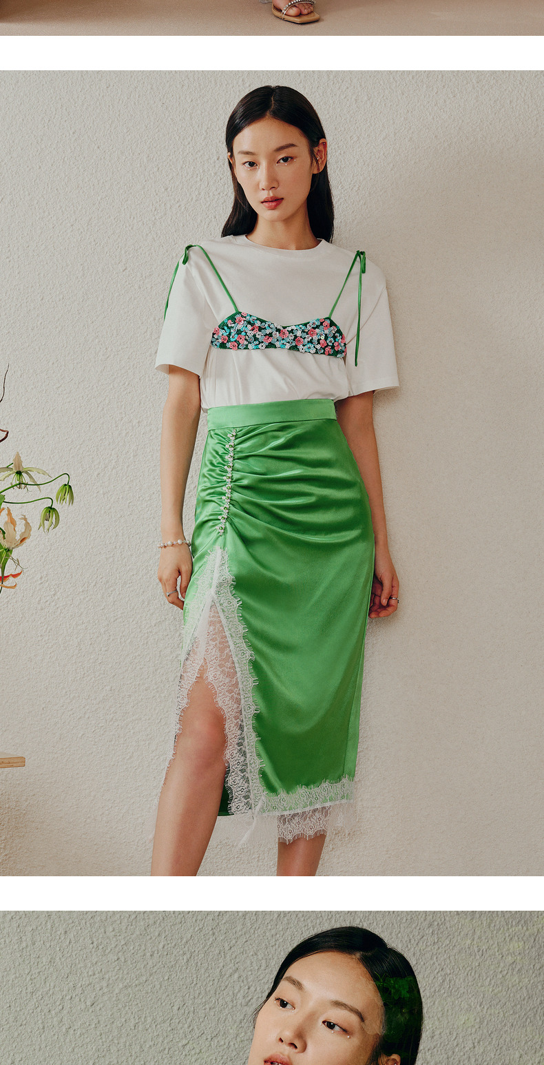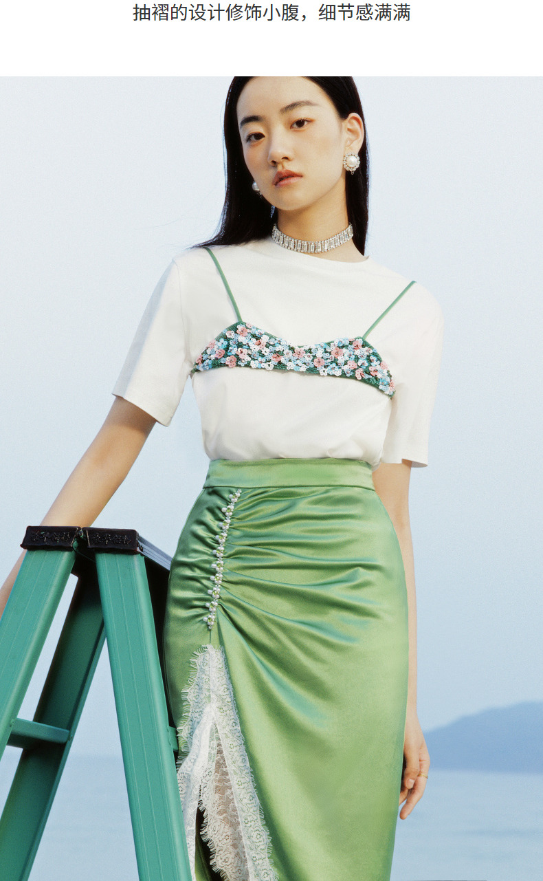 MAXRIENY赫本海军风波光缎面半裙修身包臀开叉裙(货号:MC88SK252)