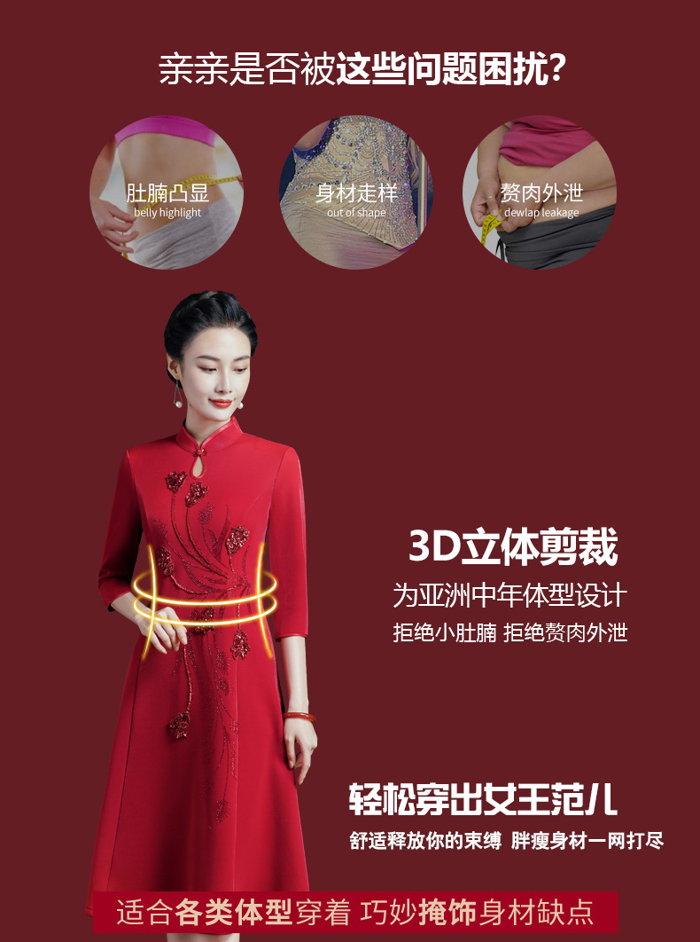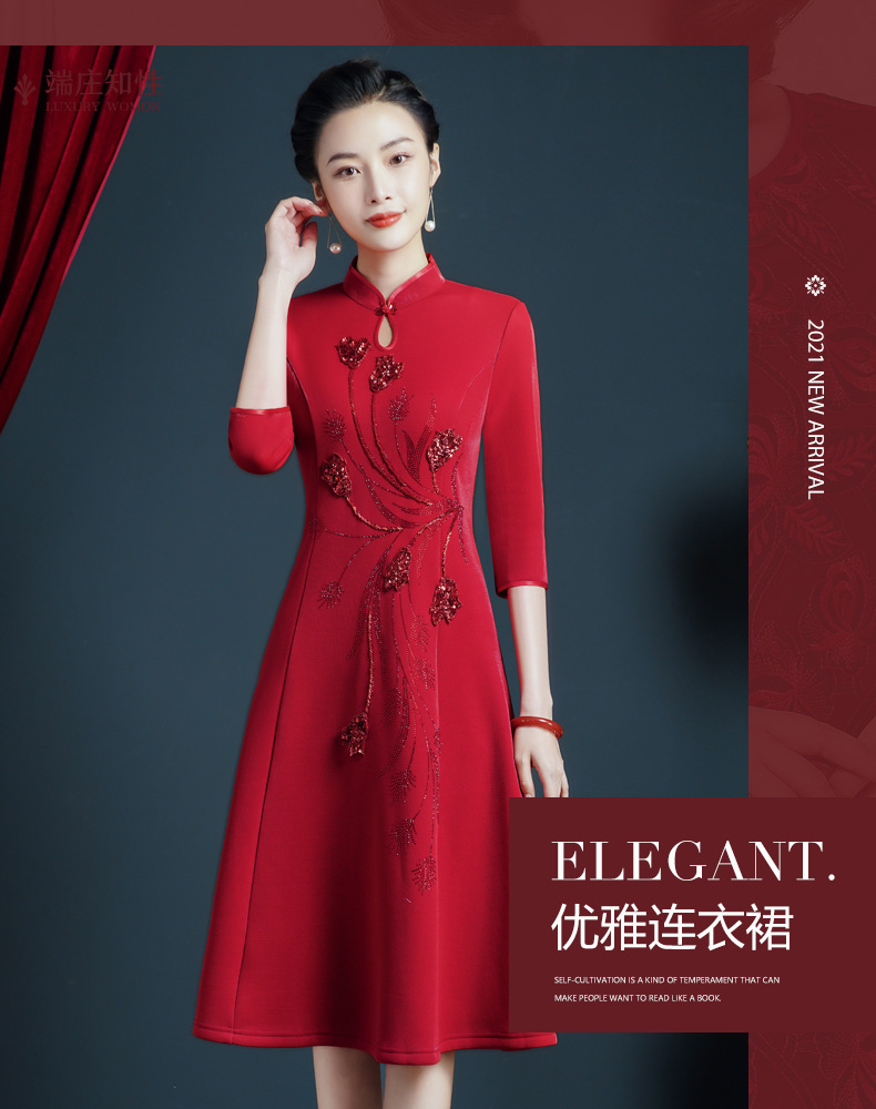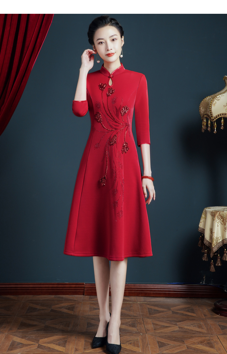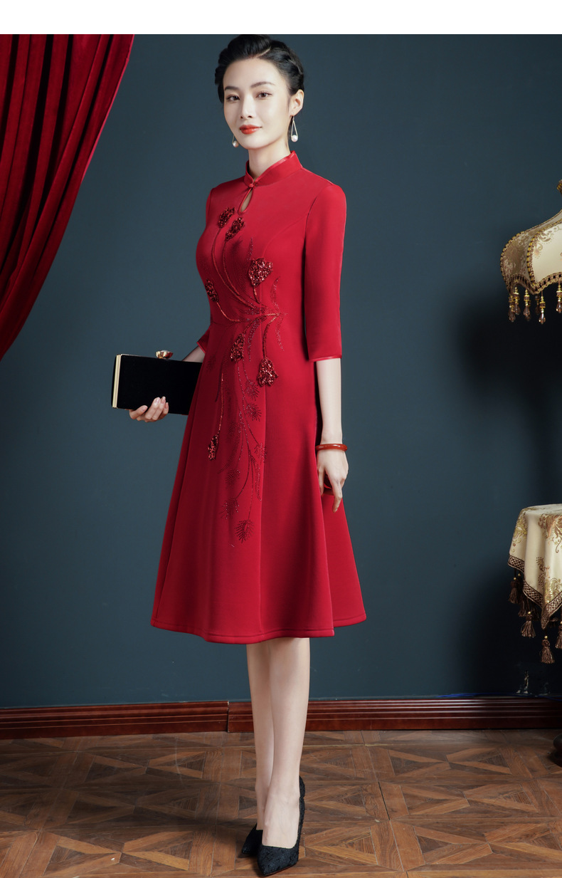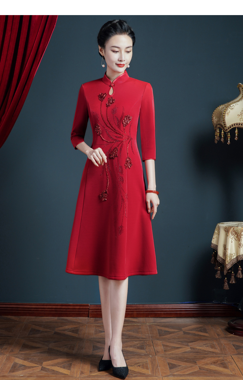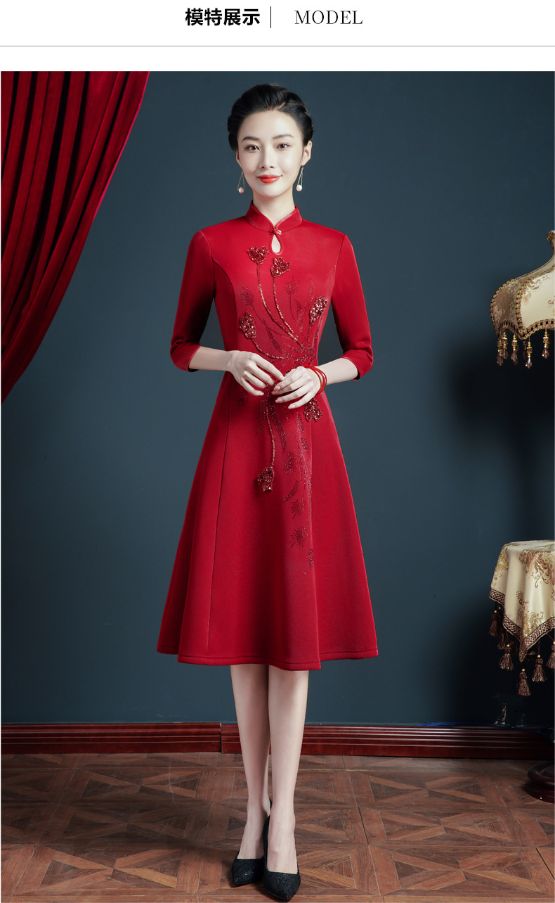 上海旗袍厂JC-5185春秋新款婚宴礼服改良旗袍年轻款气质显瘦连衣裙