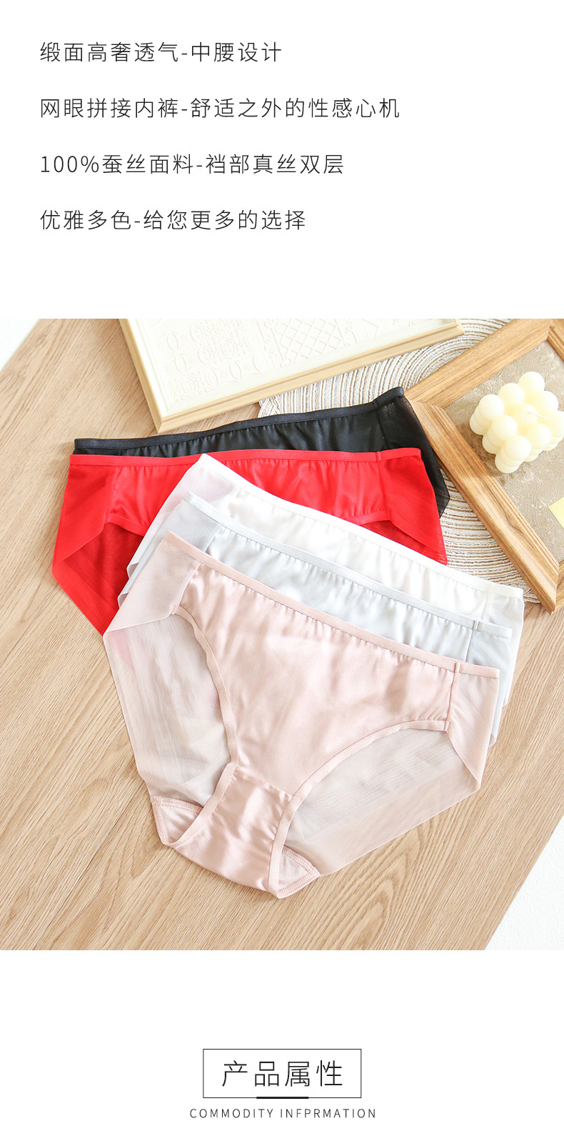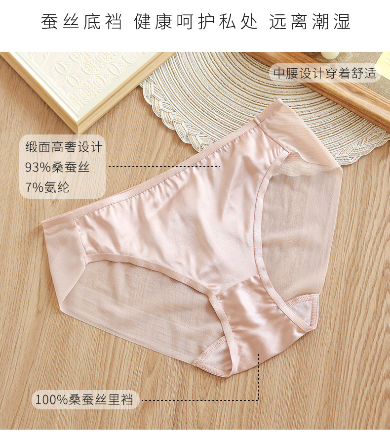 TG-TG01S108真丝缎面无痕三角裤 中腰薄款桑蚕丝内裤性感包臀透气短裤女