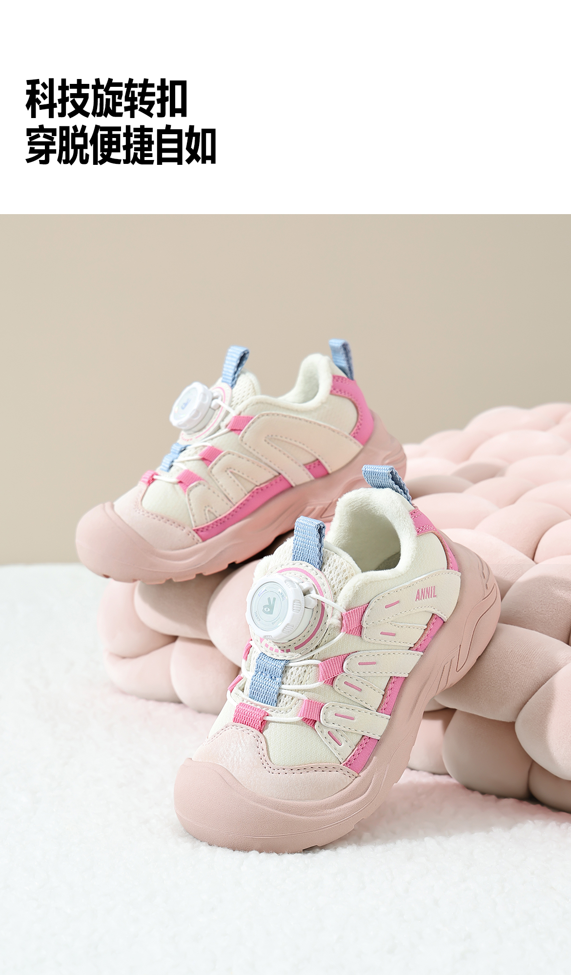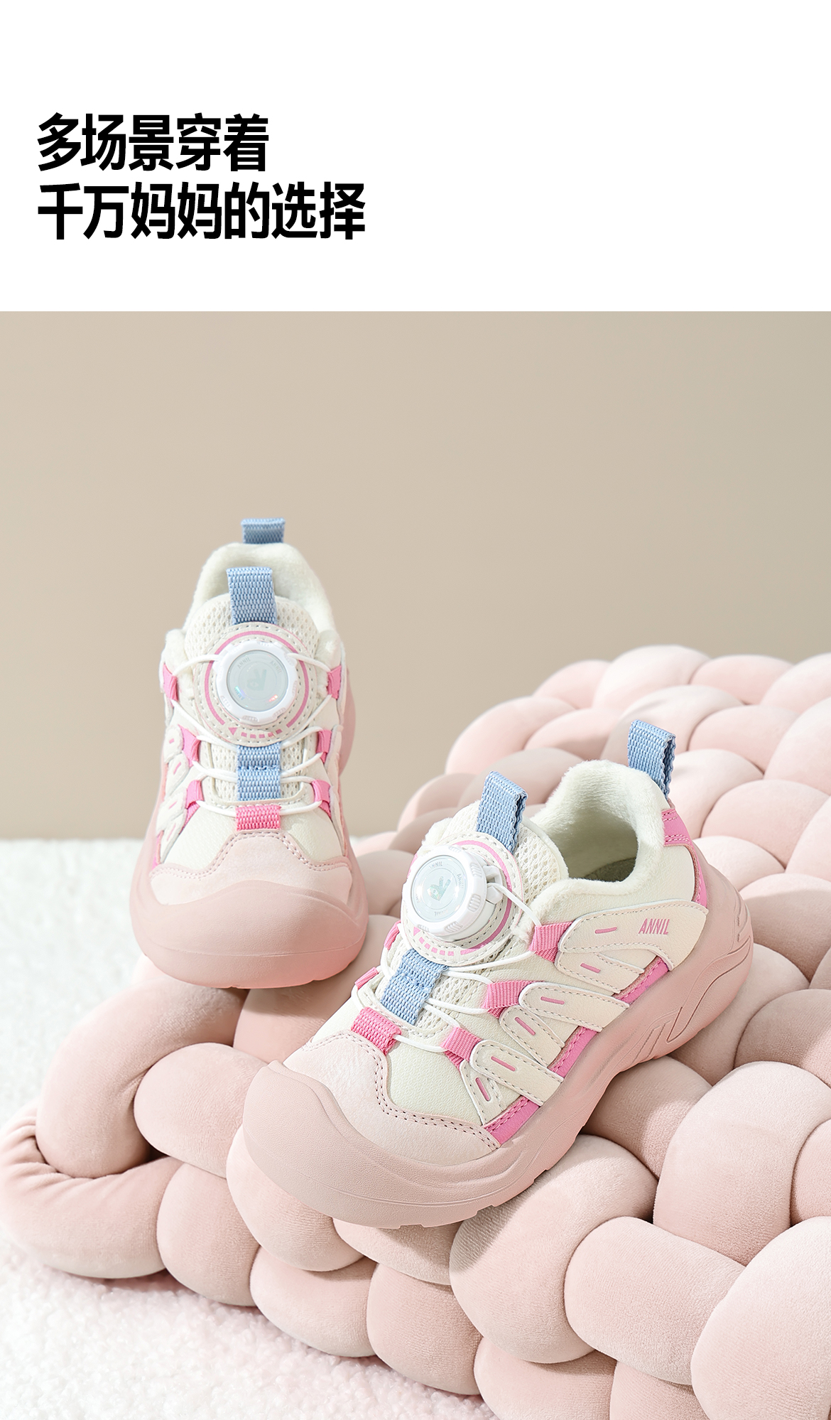 ANNIL/安奈儿童鞋男女童冬季运动鞋儿童绒绒靴保暖二棉鞋旋钮加绒运动鞋HM5405614