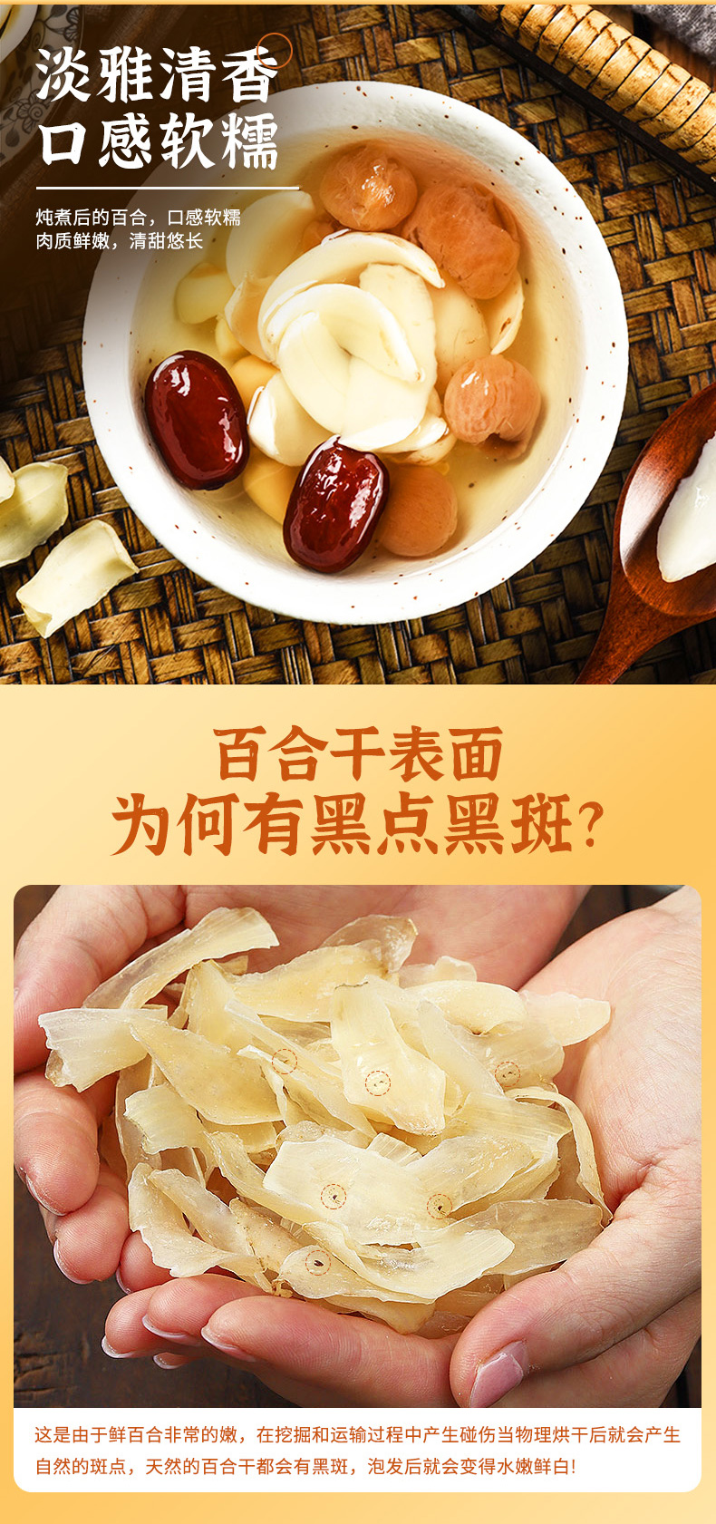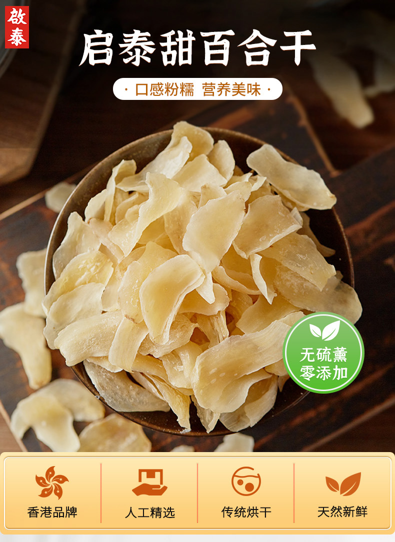 香港啟泰甜百合干160g/瓶新鲜食用百合大片干货 百合莲子茶杏仁桂圆枸杞银耳煲汤配料