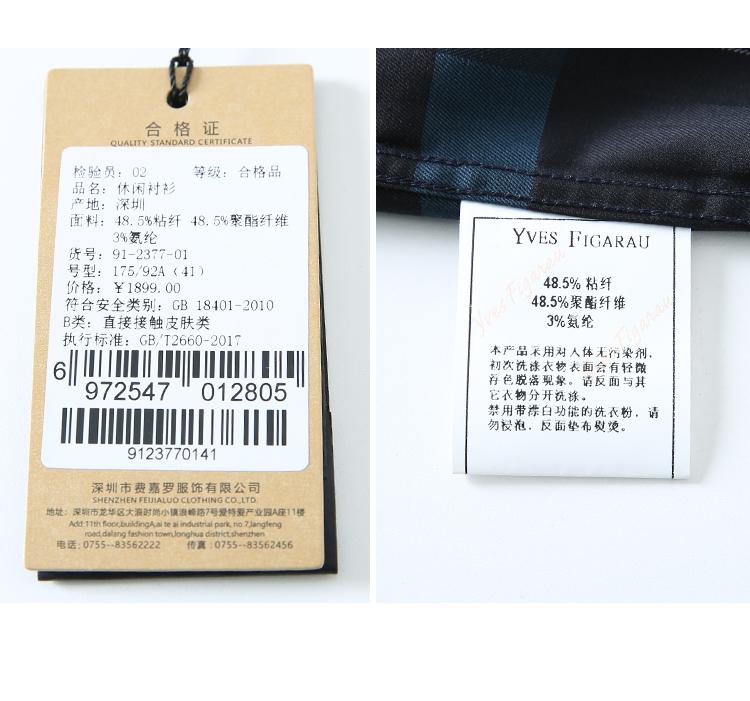 YvesFigarau伊夫·费嘉罗912377休闲长袖衬衫
