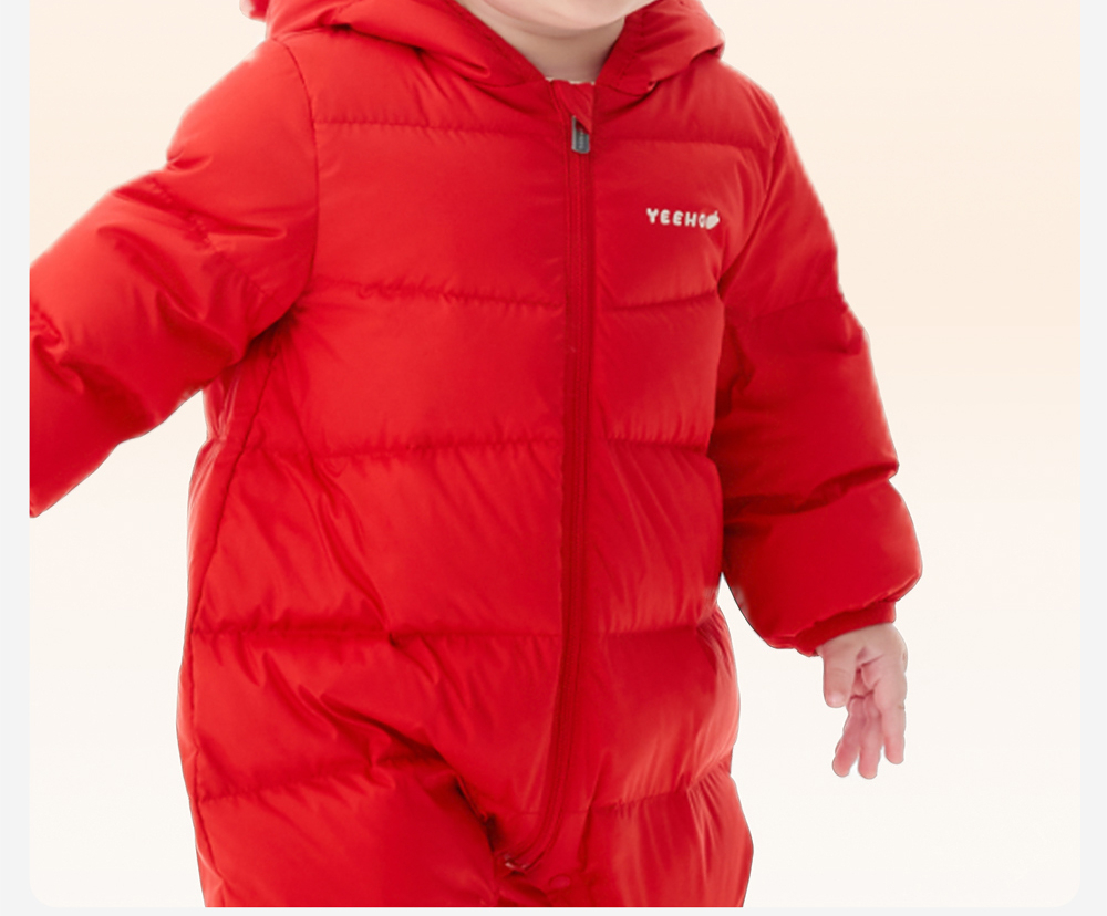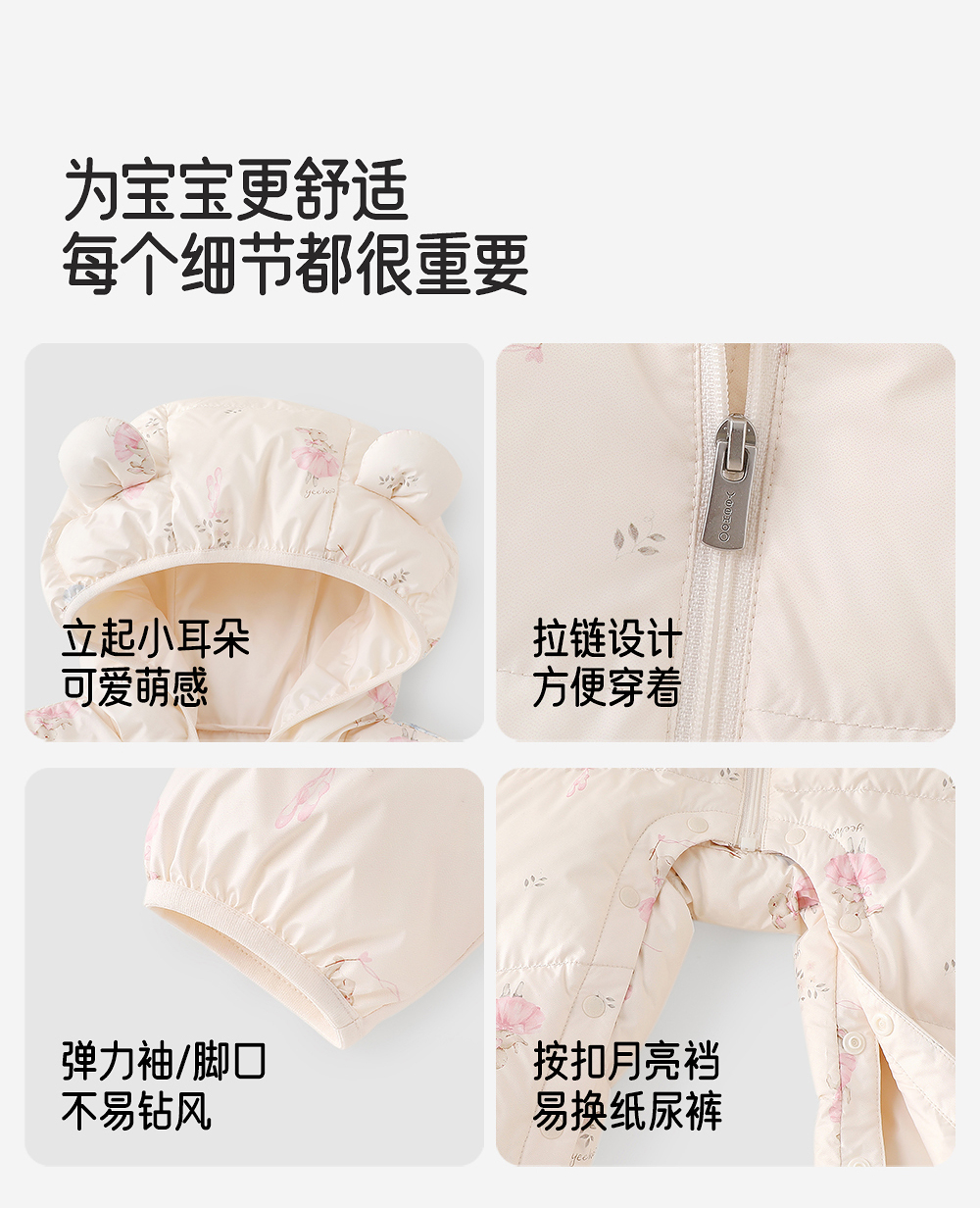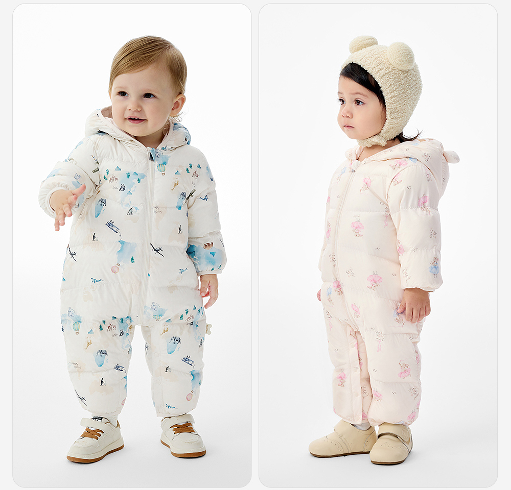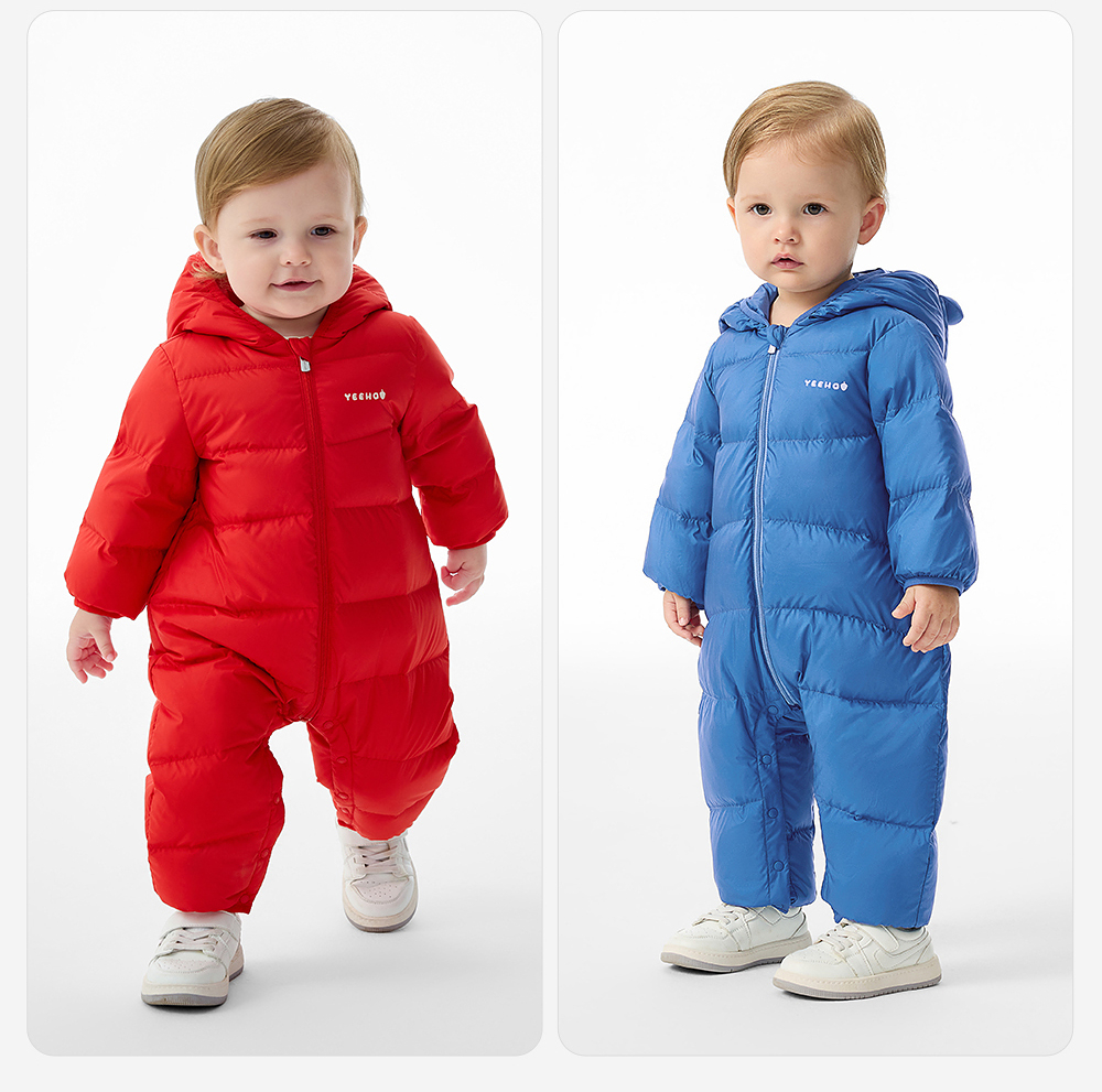 英氏婴幼儿连体衣2025冬季新款男女宝宝连帽长袖加厚保暖羽绒哈衣超韧绒