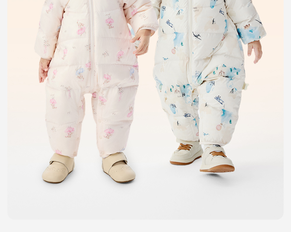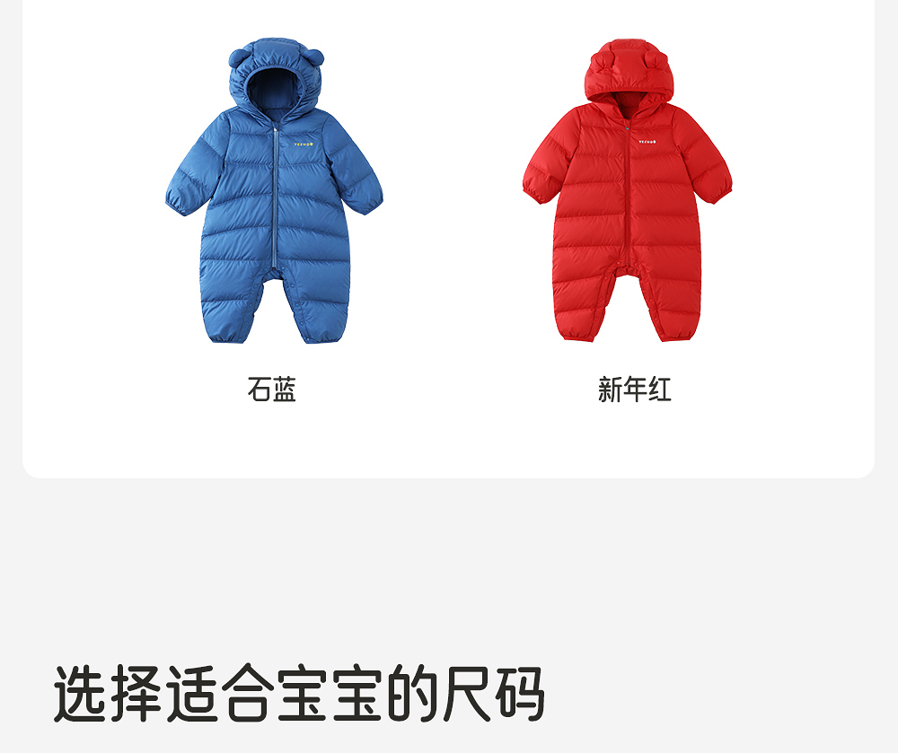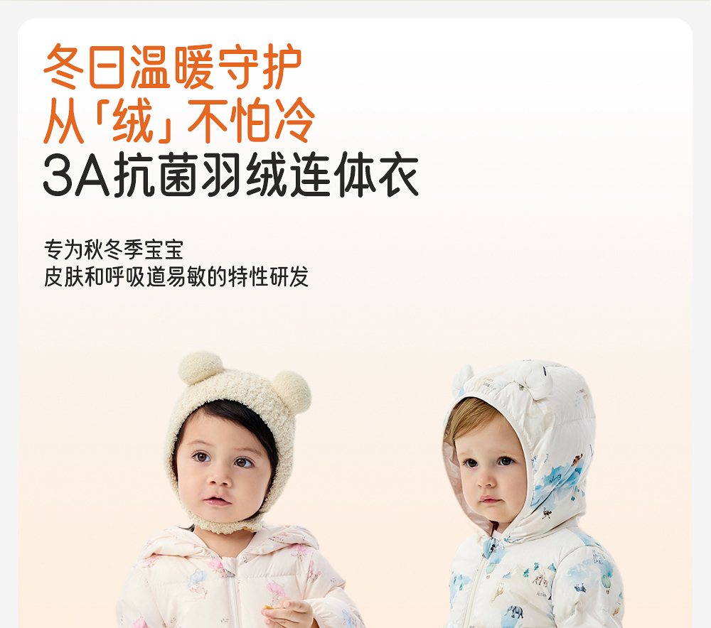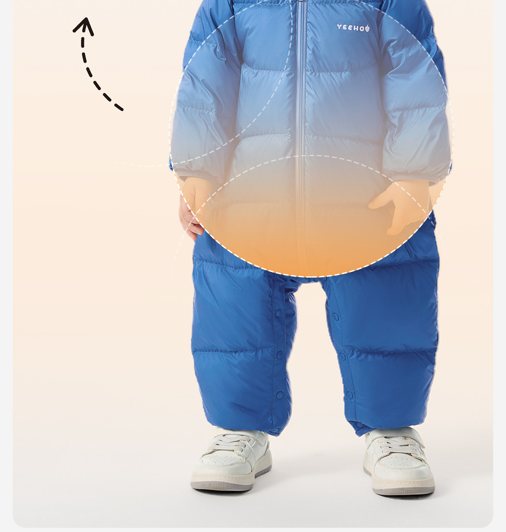 英氏婴幼儿连体衣2025冬季新款男女宝宝连帽长袖加厚保暖羽绒哈衣超韧绒