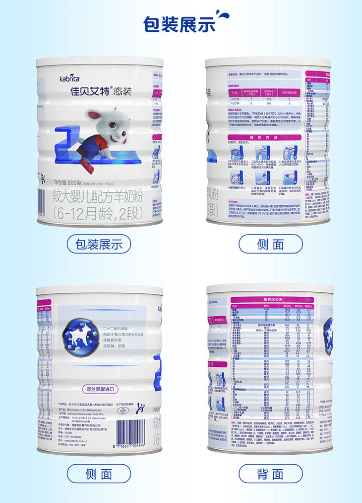 佳贝艾特悠装婴儿羊奶粉2段 800g