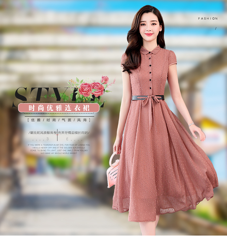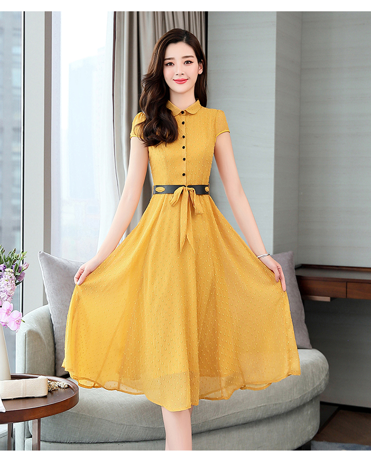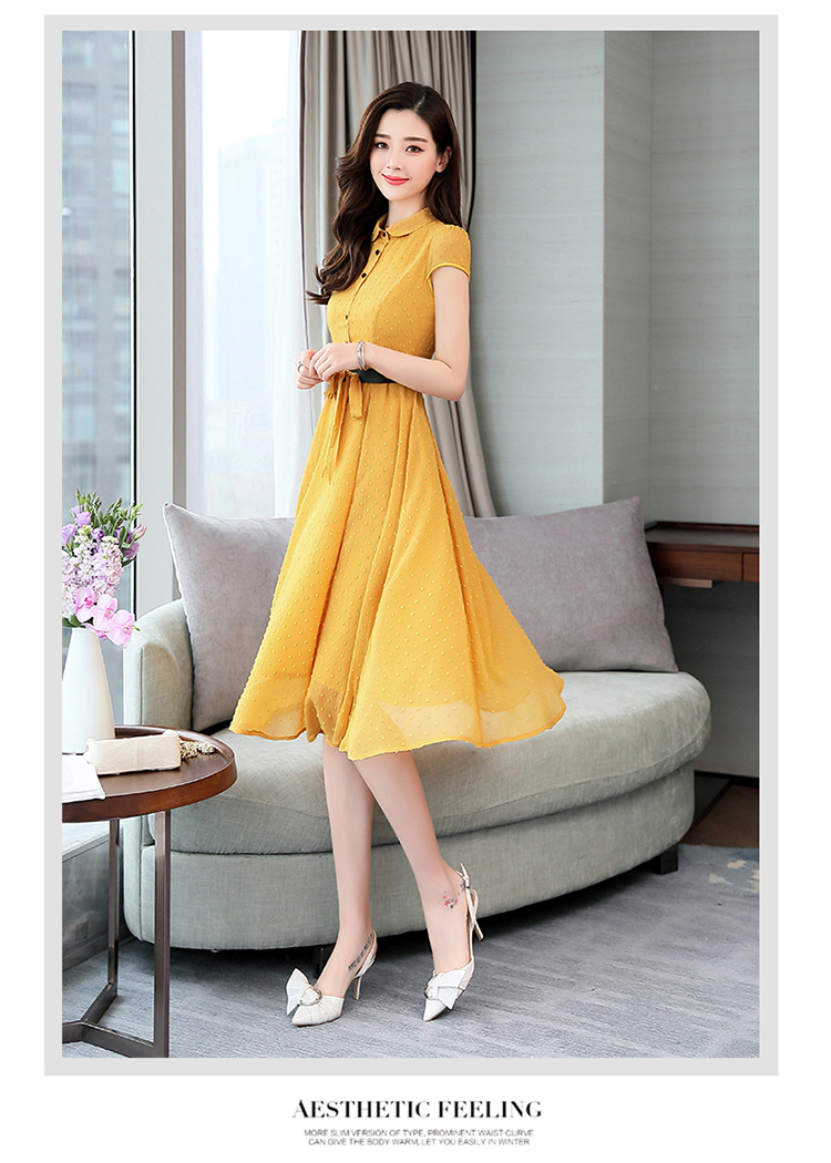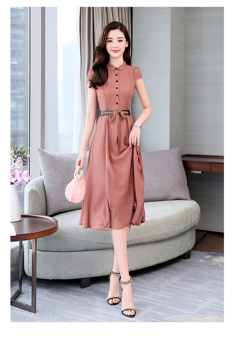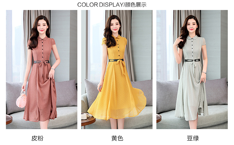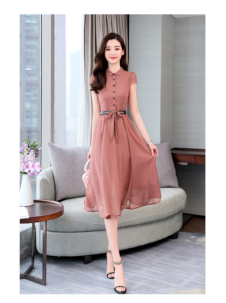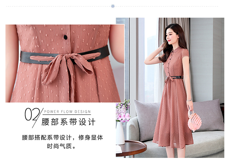 WZNH-MLJL9905(配腰带)纯色舒适时尚潮流单排扣短袖中长款连衣裙