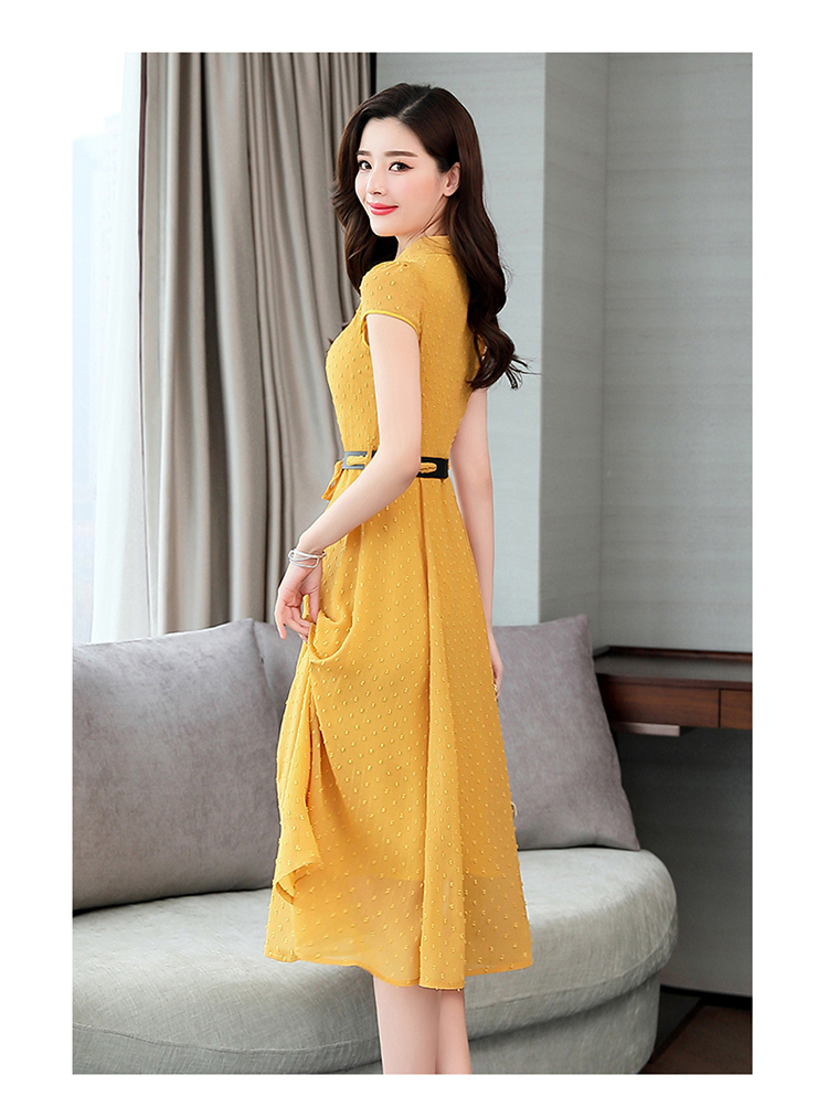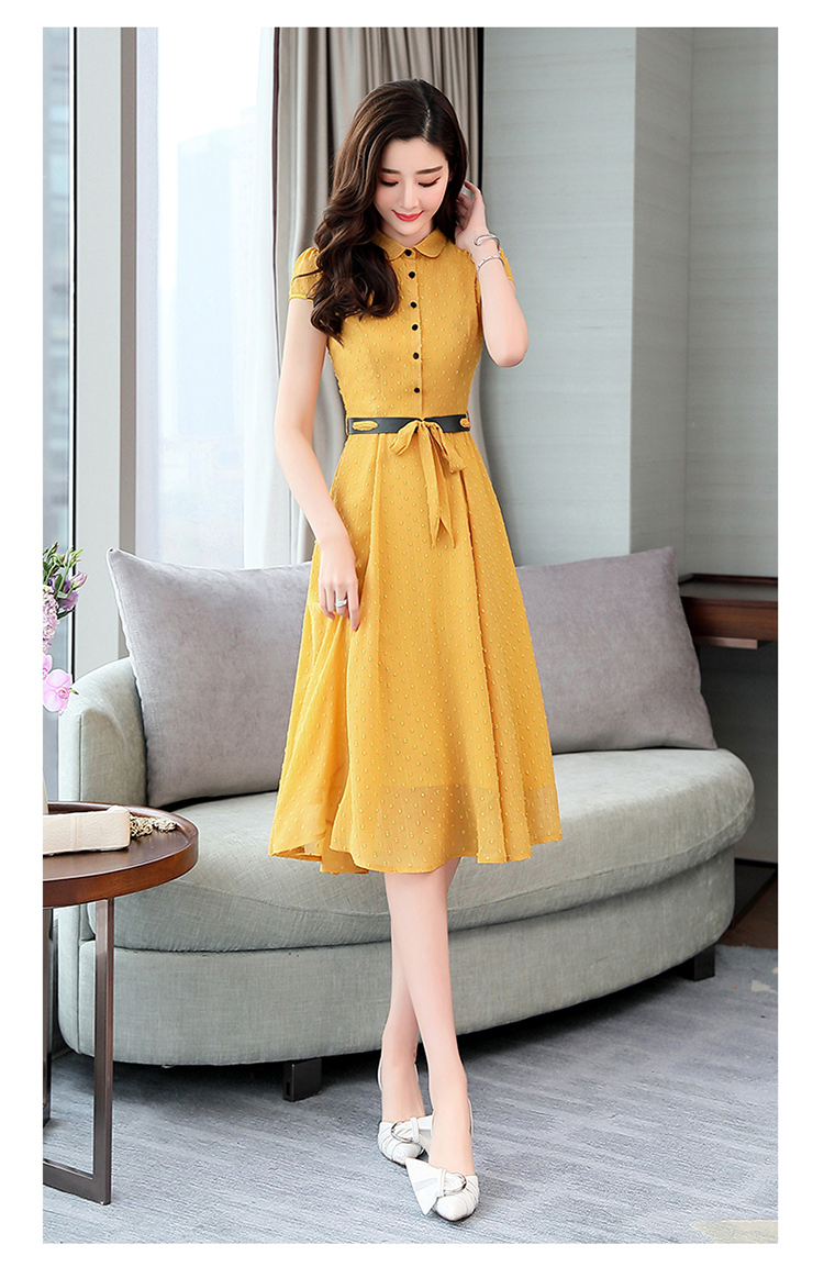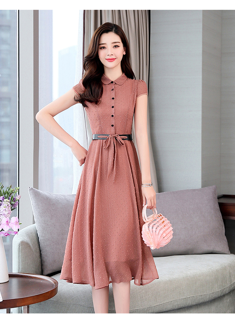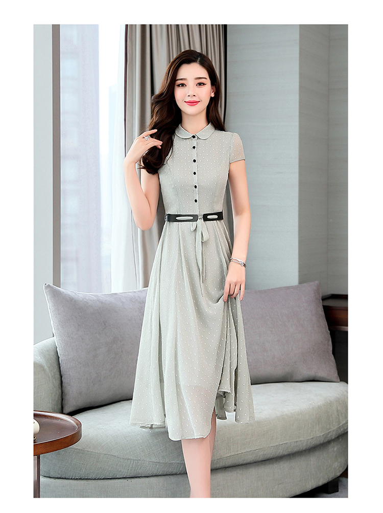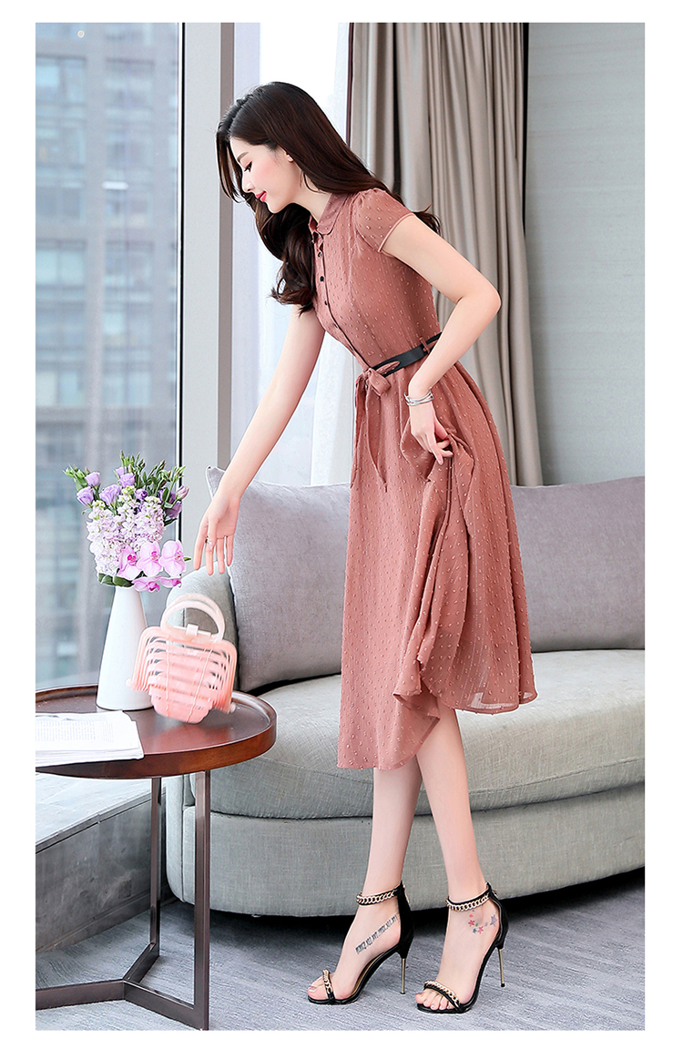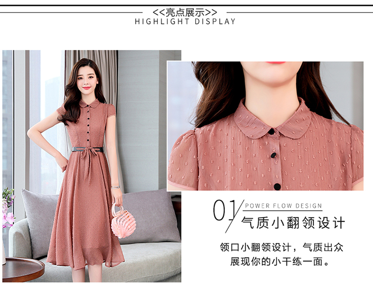 WZNH-MLJL9905(配腰带)纯色舒适时尚潮流单排扣短袖中长款连衣裙