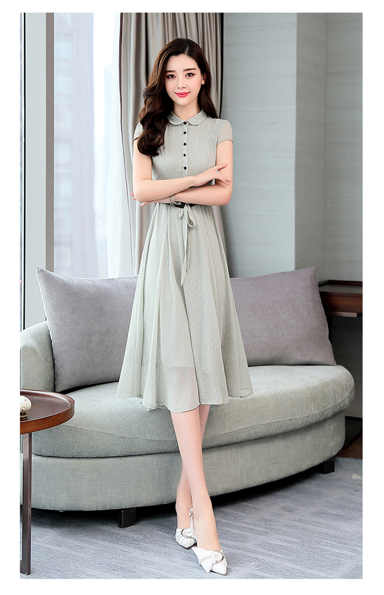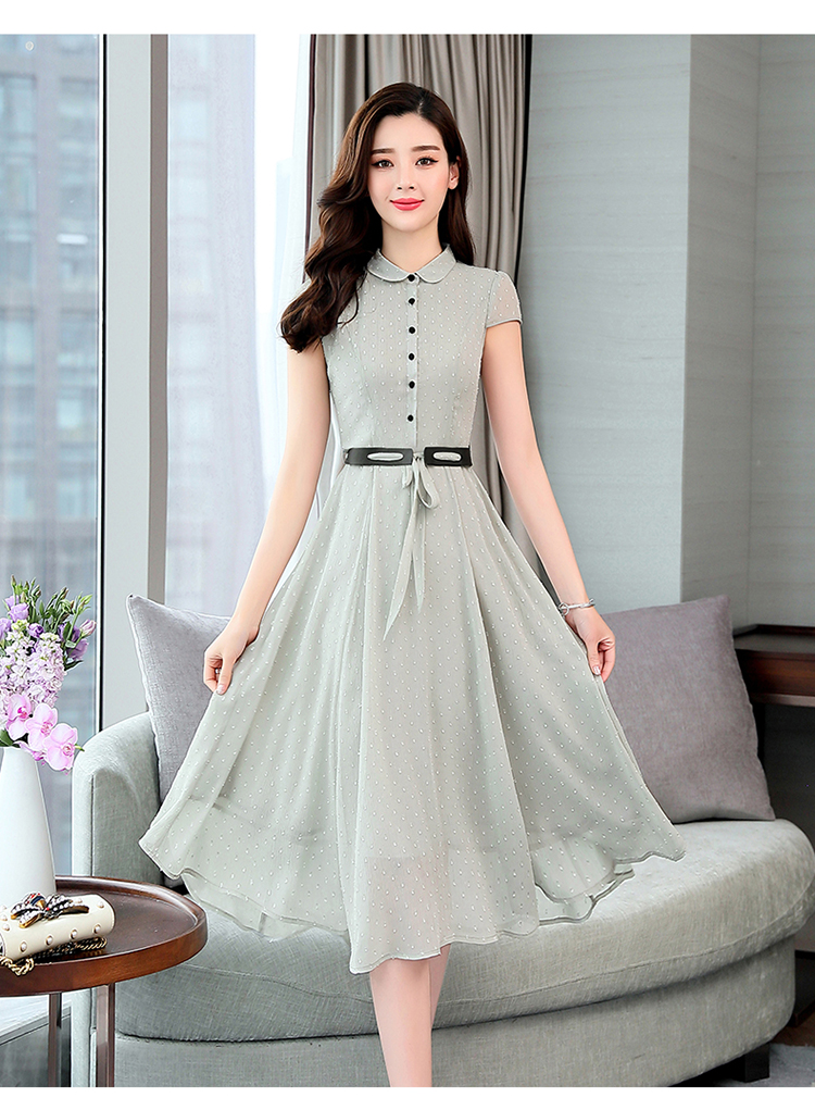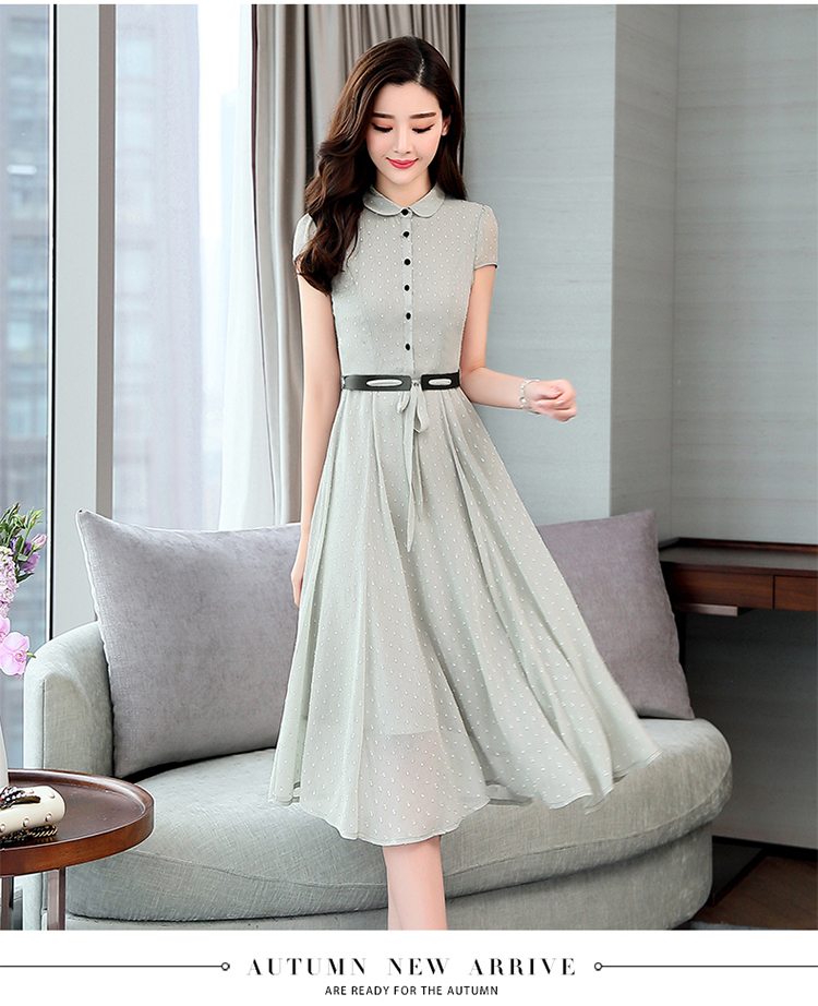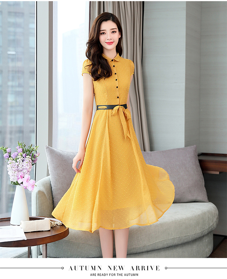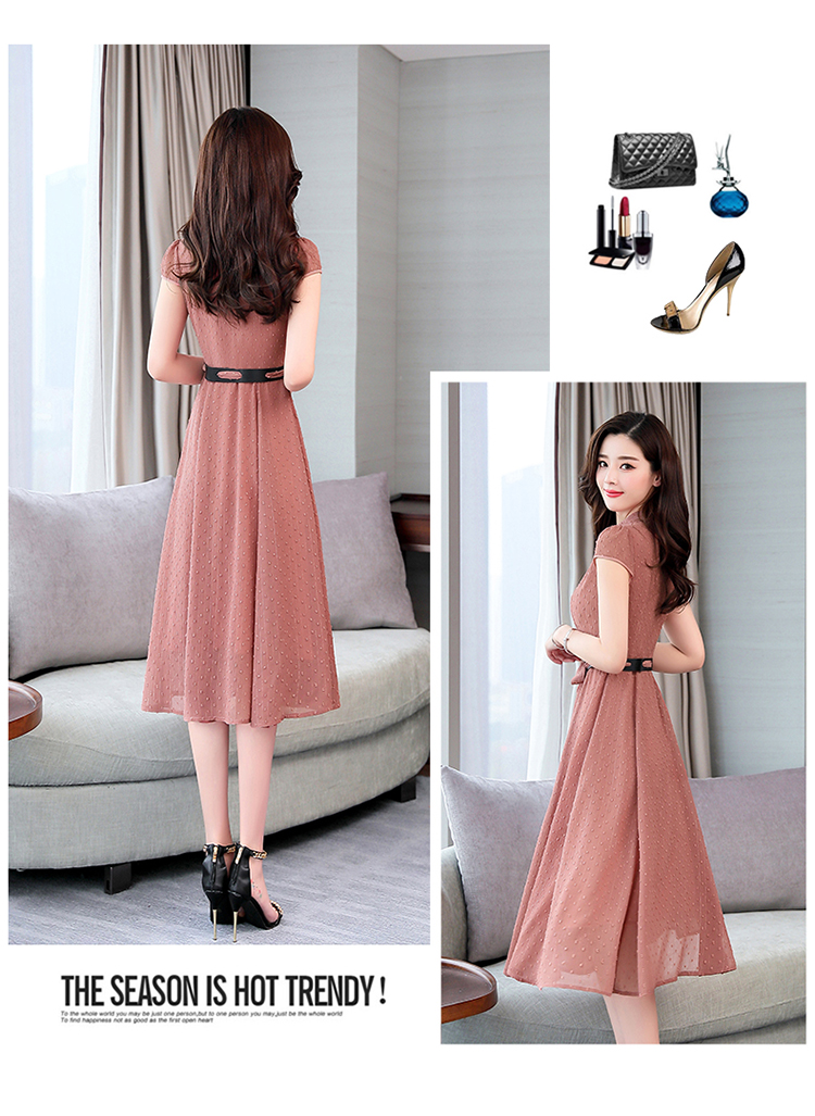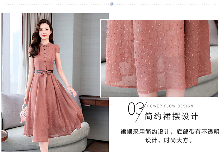WZNH-MLJL9905(配腰带)纯色舒适时尚潮流单排扣短袖中长款连衣裙