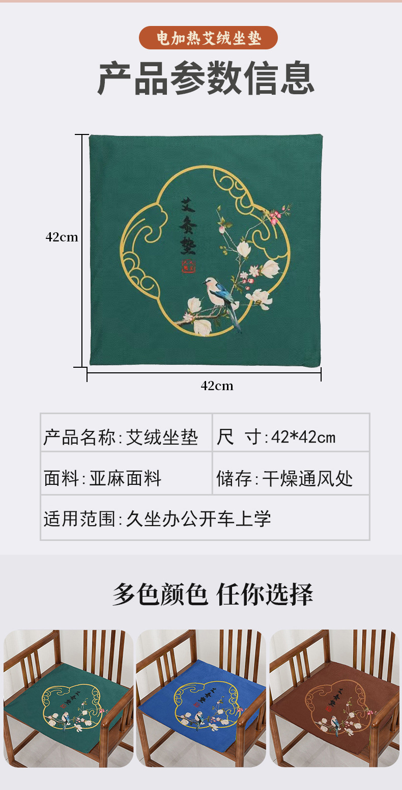 【断货】正安优选·新款刺绣款电加热坐垫(绿色、蓝色、咖色可选)