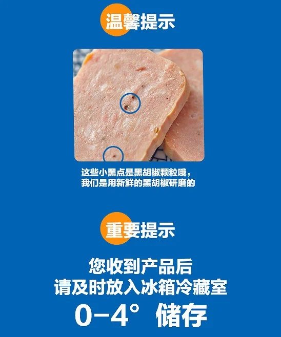 【品名】王家渡午餐肉 【规格】150g 【保质期】午餐肉5个月 【生产日期】近期 【保存方法】0-4 低温冷藏 【产地】四川眉山 【发货地】四川成都 【发货时效】72小时 【快递公司】随机不指定 【不发货地区】海南、青海、内蒙古、新疆、西藏、四川甘孜,阿坝,凉山以及港澳台等 ,临时限发区域以快递实际揽收为准。 【偏远地区运费补充】【售后退/换说明】 1)因冷链生鲜食品的特殊性,售出不退不换,介意勿拍! 2)产品售出不支持拒收 3)签收立即验货,如有问题,立即售后,务必提供【快递面单图,快递包装图,产品问题图】要拍清晰,保留好凭证。(未提供凭证或超过24小时售后时效,不予处理!) 4)冷链包装运输,但由于快递、天气等原因,收到商品如有轻微软化属于正常现象,不影响肉的品质,可放心食用,立即放冰箱冷冻即可。