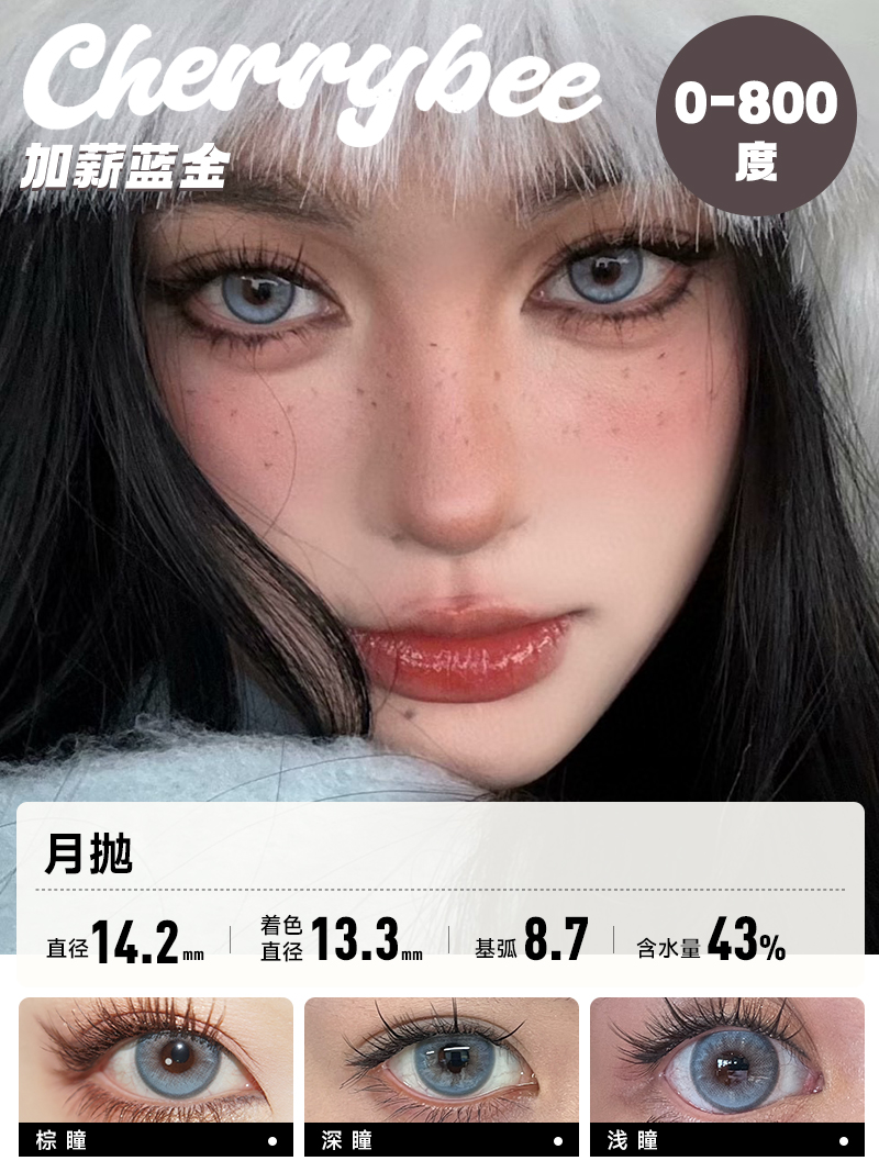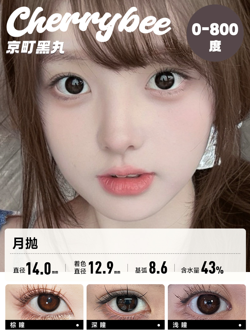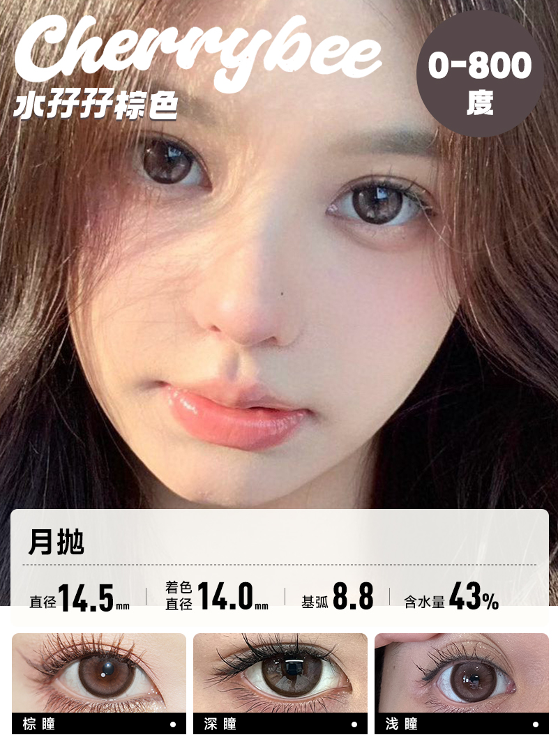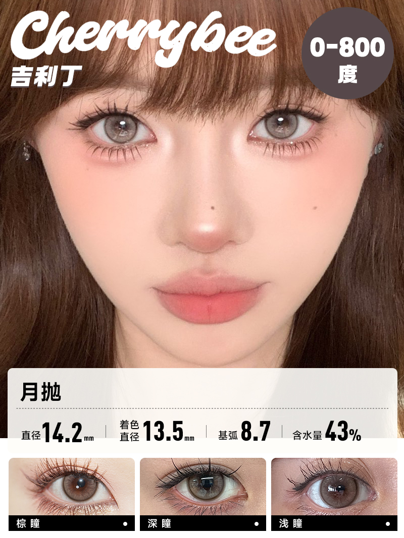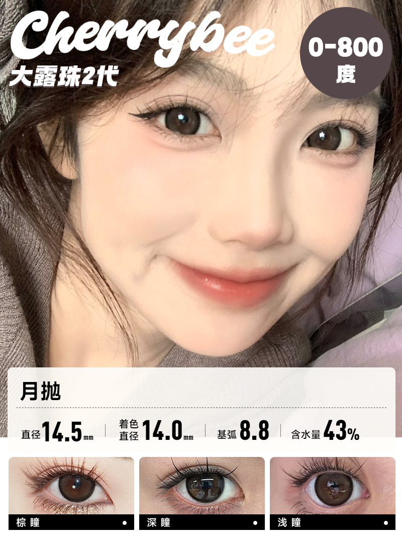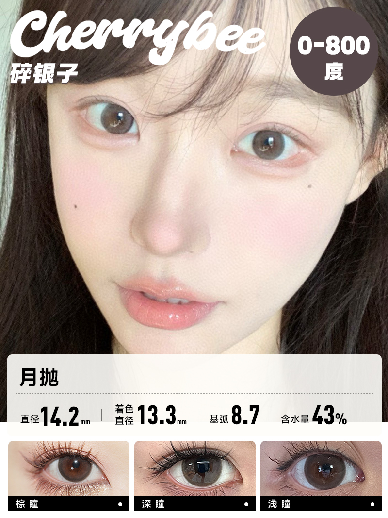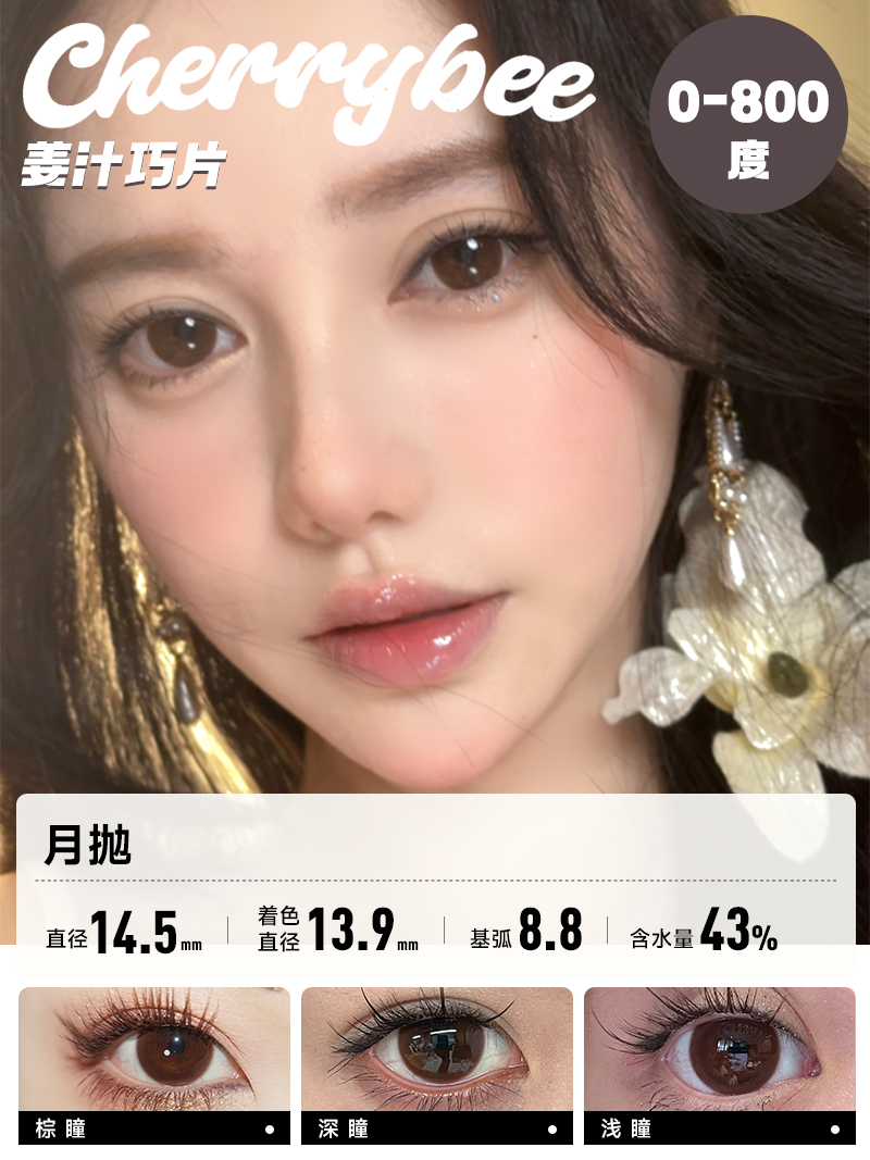 CHERRYBEE / 碎银子/水孖孖棕/油柑王/吉利丁/姜汁巧片 / 月抛美瞳 / 2片入 / 14.0mm-14.2mm-14.5mm