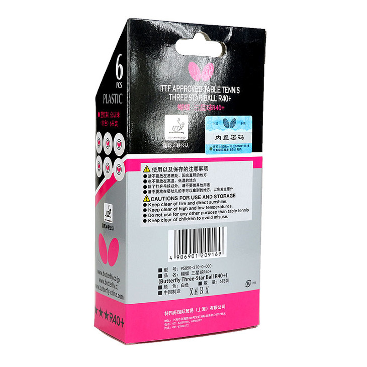 商品名称:蝴蝶Butterfly 95850 新材料R40+有缝三星球 6粒装