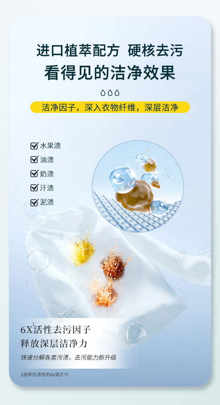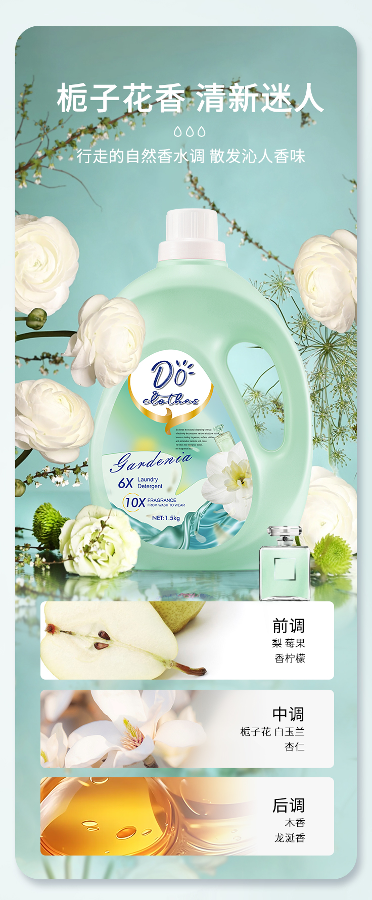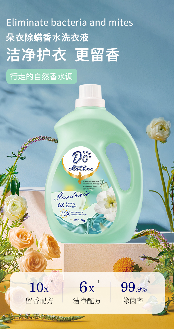 英国独有微胶囊爆香科技10倍留香,栀子花果香调洗衣液。洁净+留香+除螨抑菌+柔顺多效合一,天然植萃配方,母婴可用!6倍活性因子,深入衣物纤维,高效洁净力!商超同款