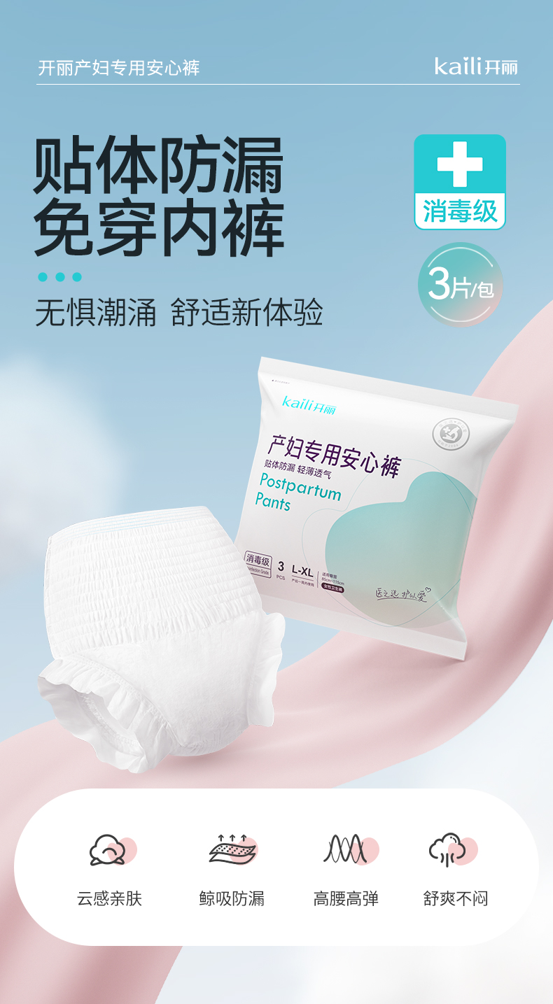 9条|消毒级开丽产妇安心裤裤型卫生巾特大号