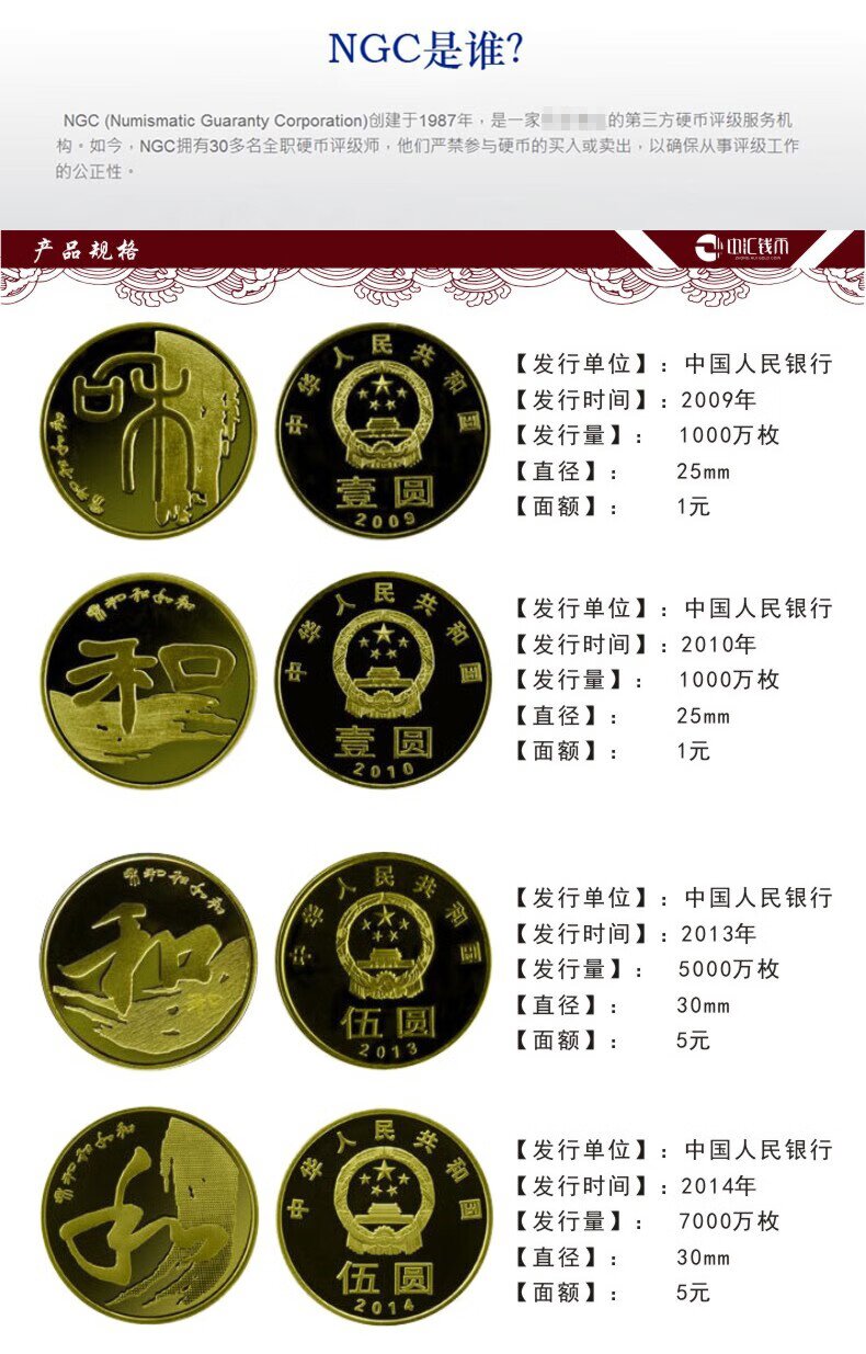 【秒杀】和字纪念币 一组 二组 三组 四组 NGC评级币