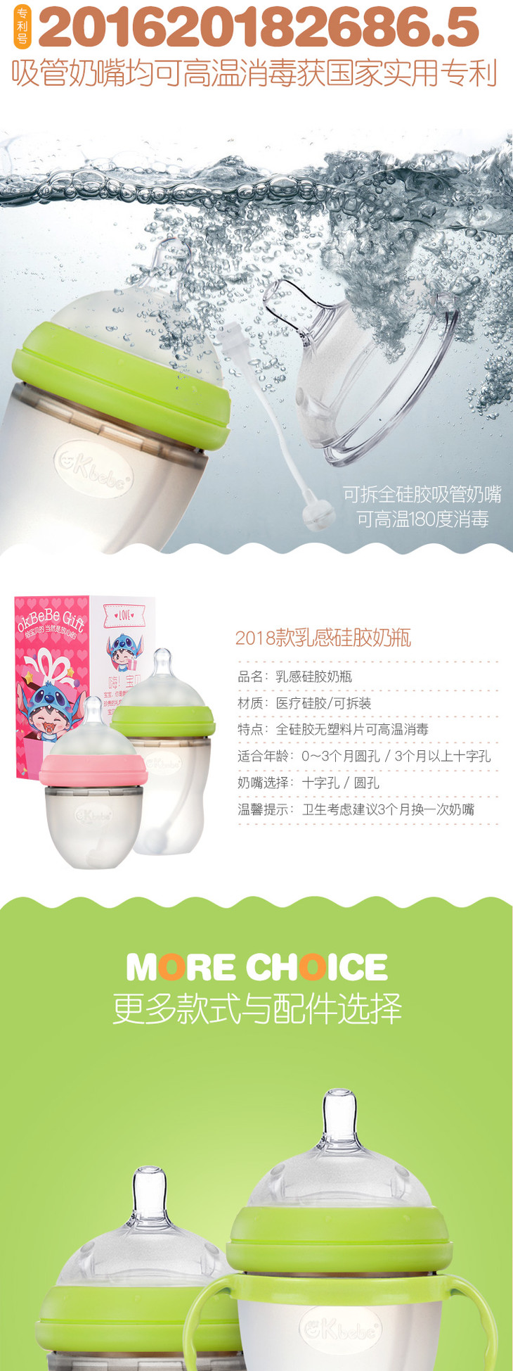 CKBEBE断奶神器硅胶奶瓶带吸管120ml绿色JPY带授权招加盟代理