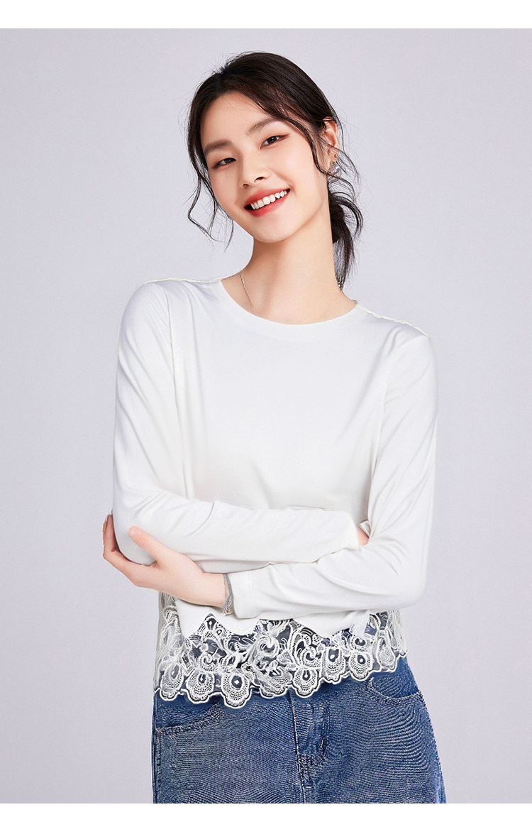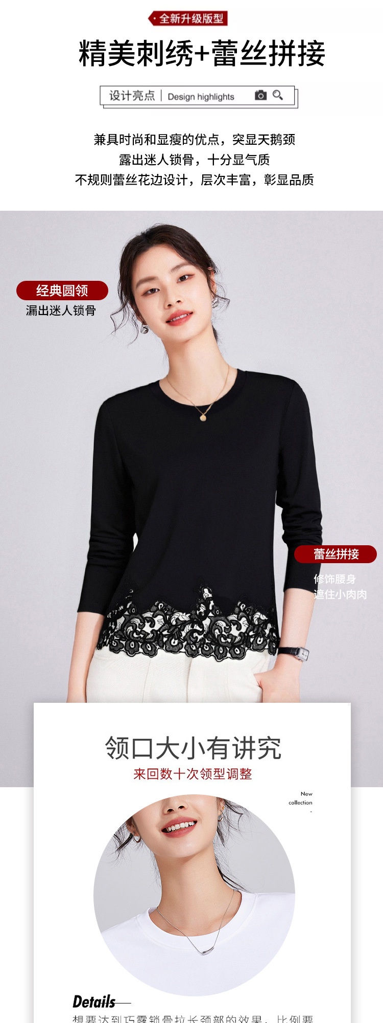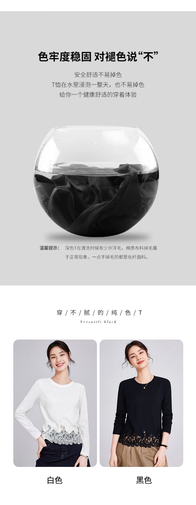 「自j」全新升级【铂金会员119/天猫159/差价40】(00034)洛诗琳设计感蕾丝拼接长袖T恤2025秋季新款百搭圆领显瘦上衣