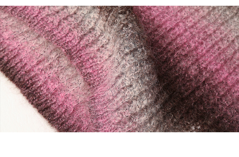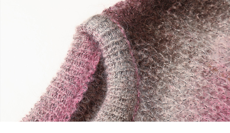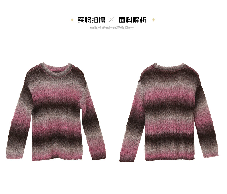 甜美风渐变色马海毛毛衣女 宽松圆领软糯长袖针织衫