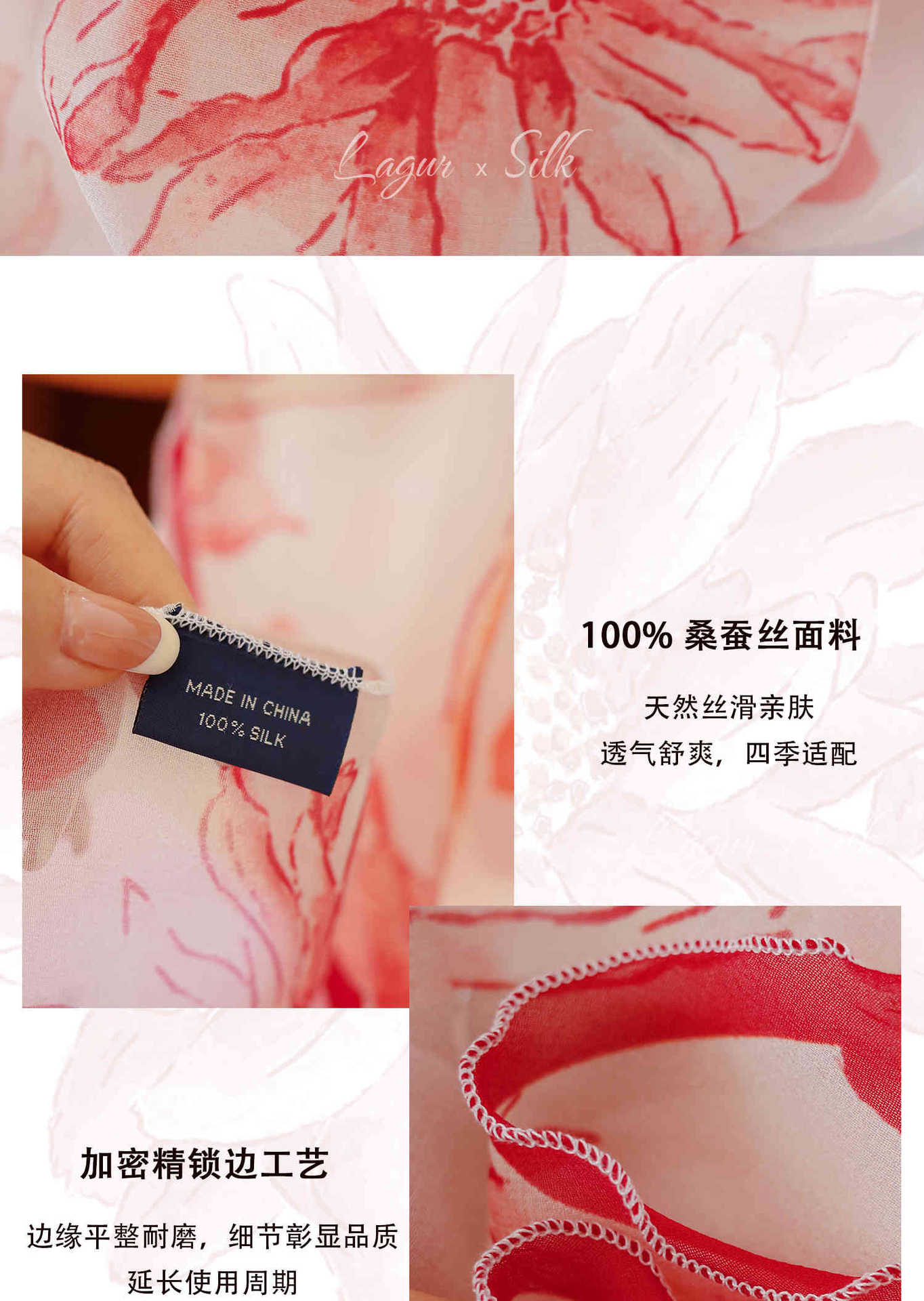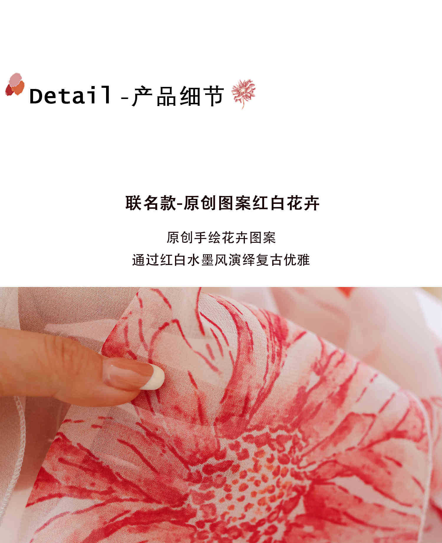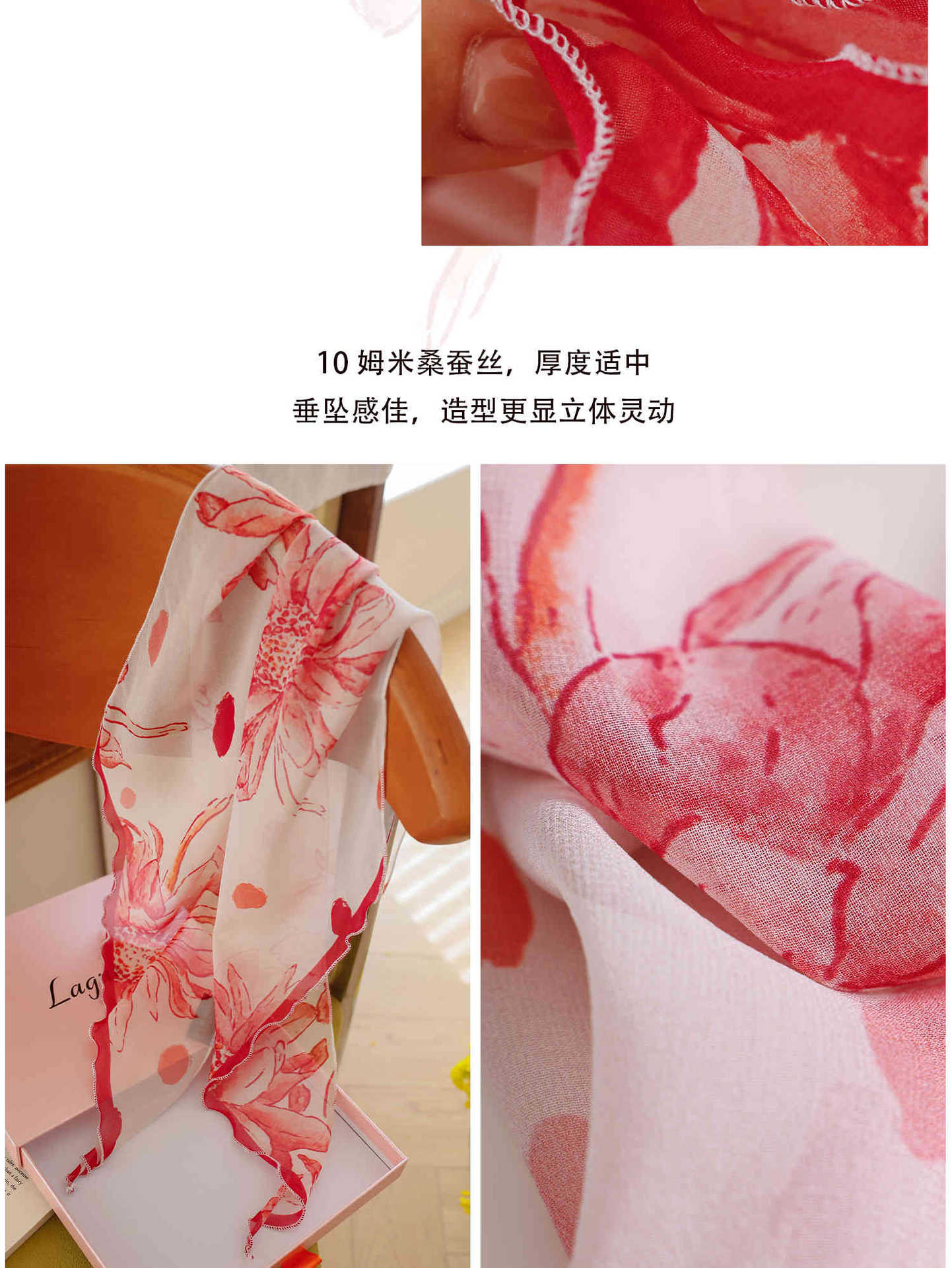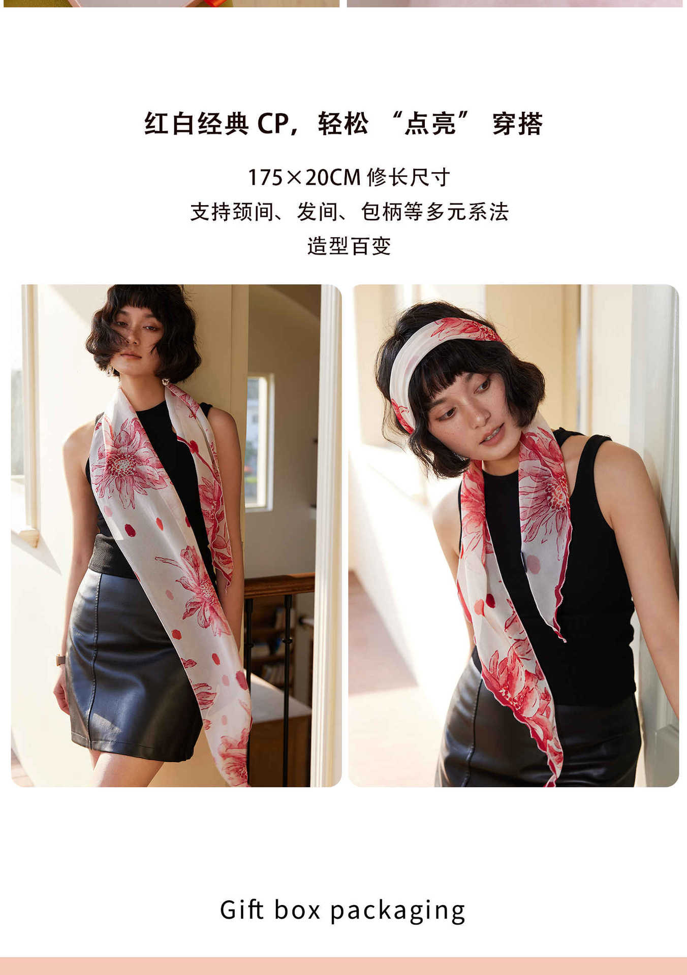 「原创艺术手绘红白花卉」100%真丝丝巾头巾花朵发带发饰新款女秋