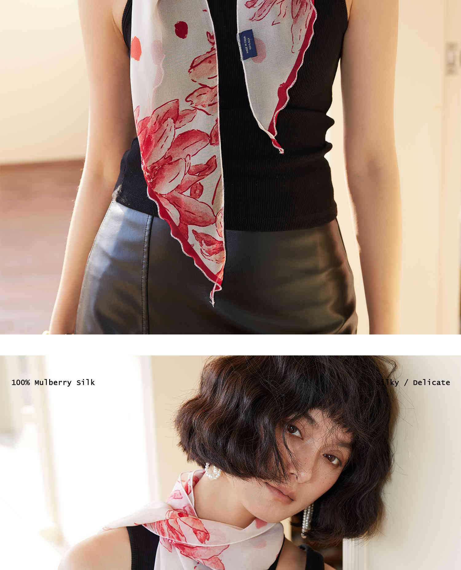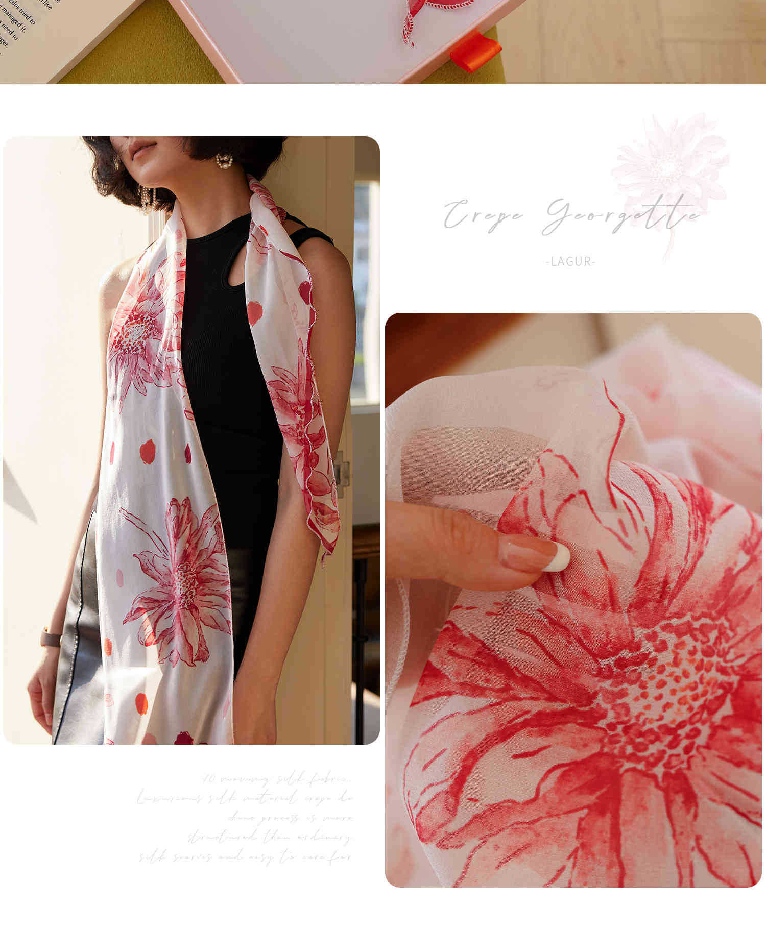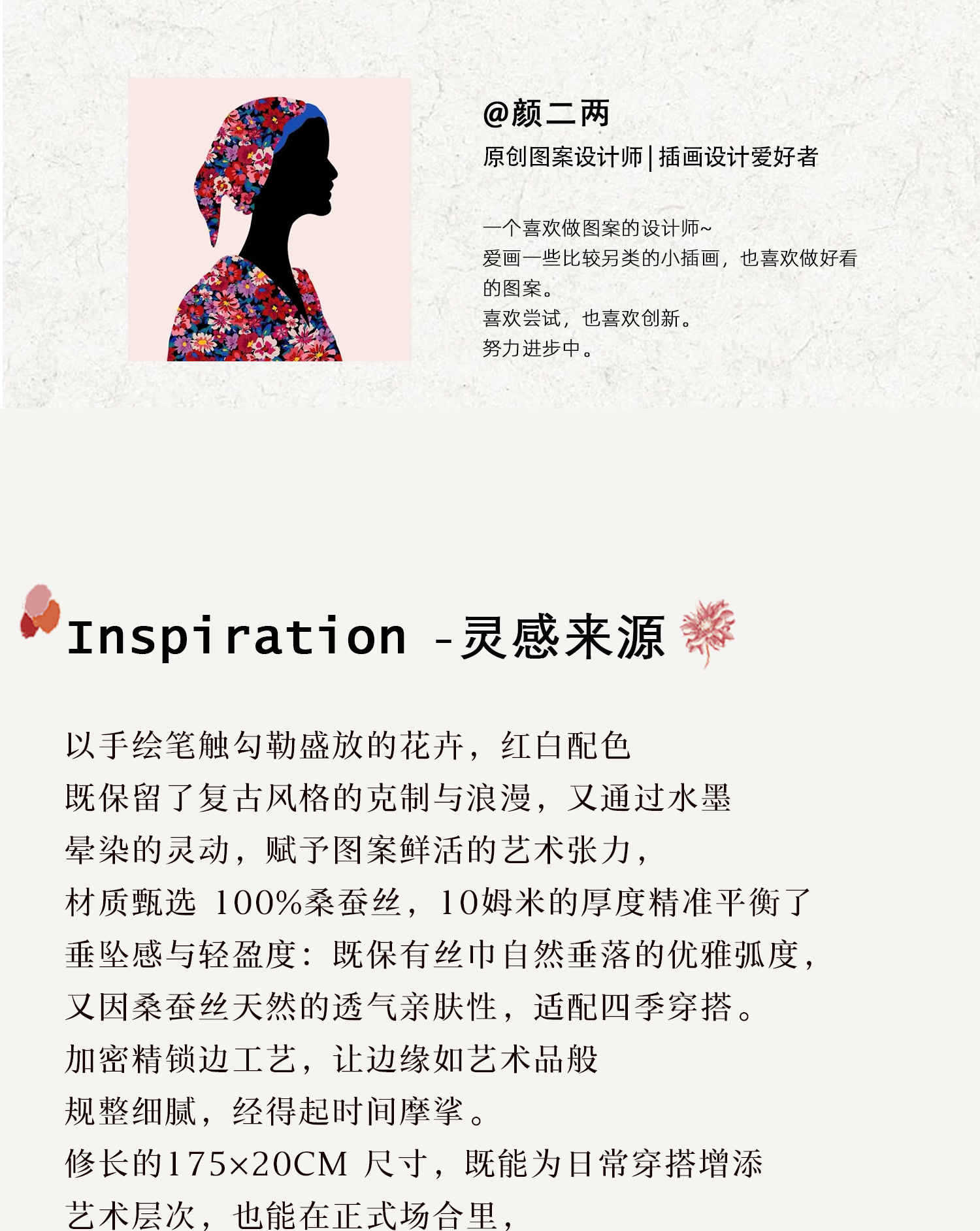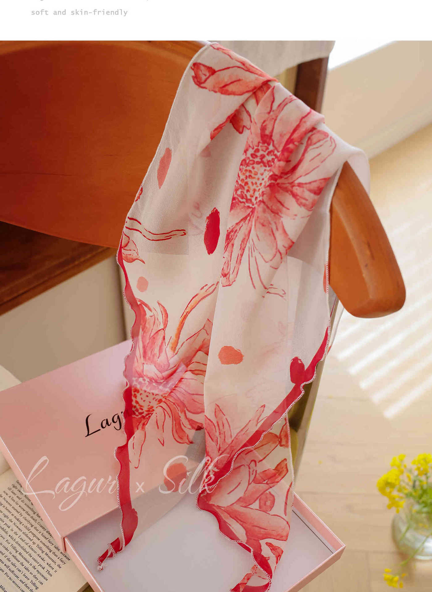 「原创艺术手绘红白花卉」100%真丝丝巾头巾花朵发带发饰新款女秋