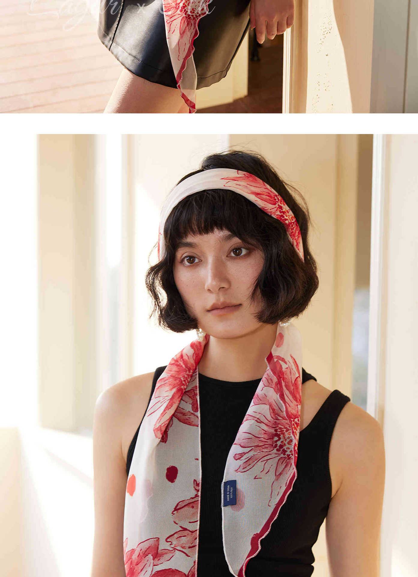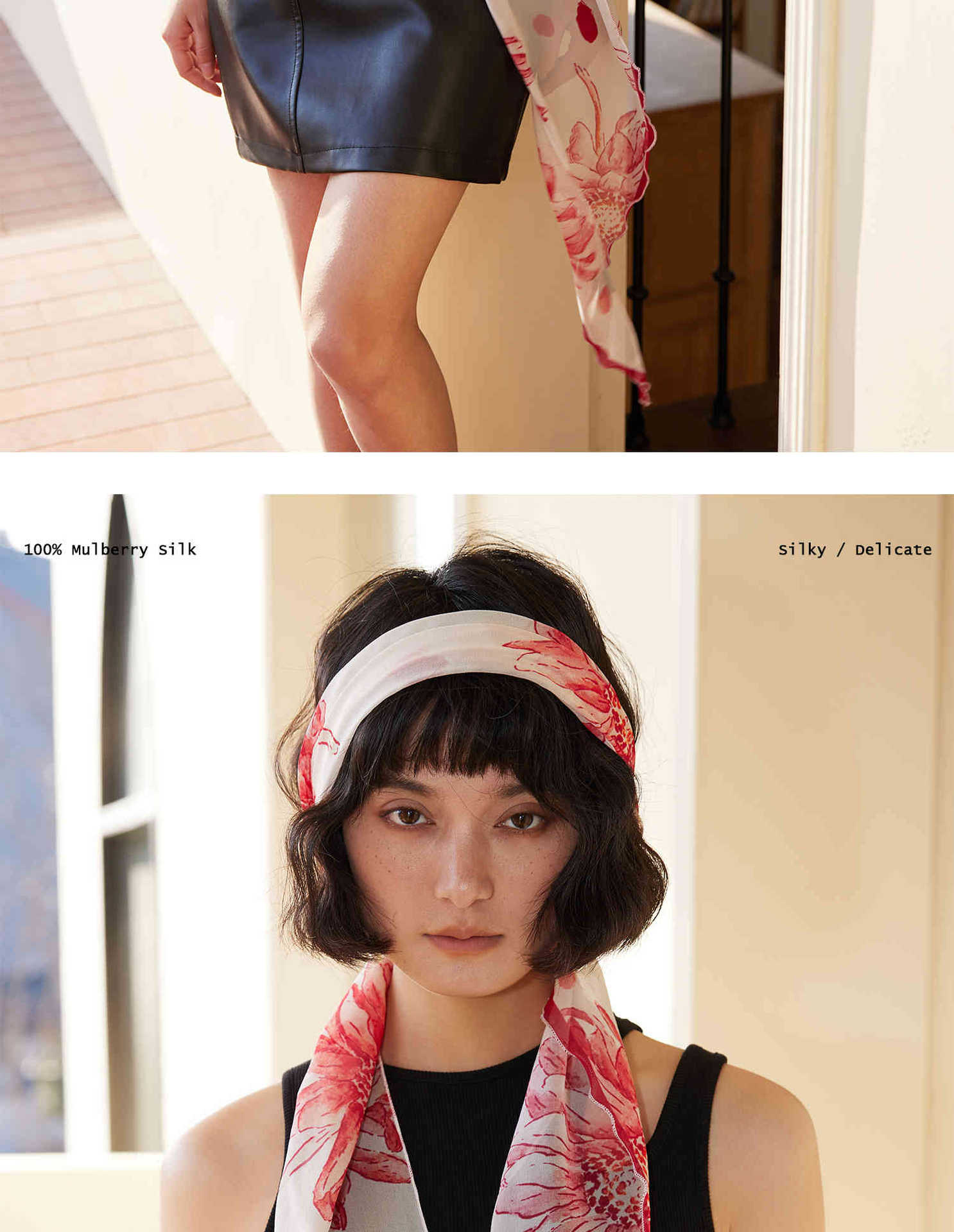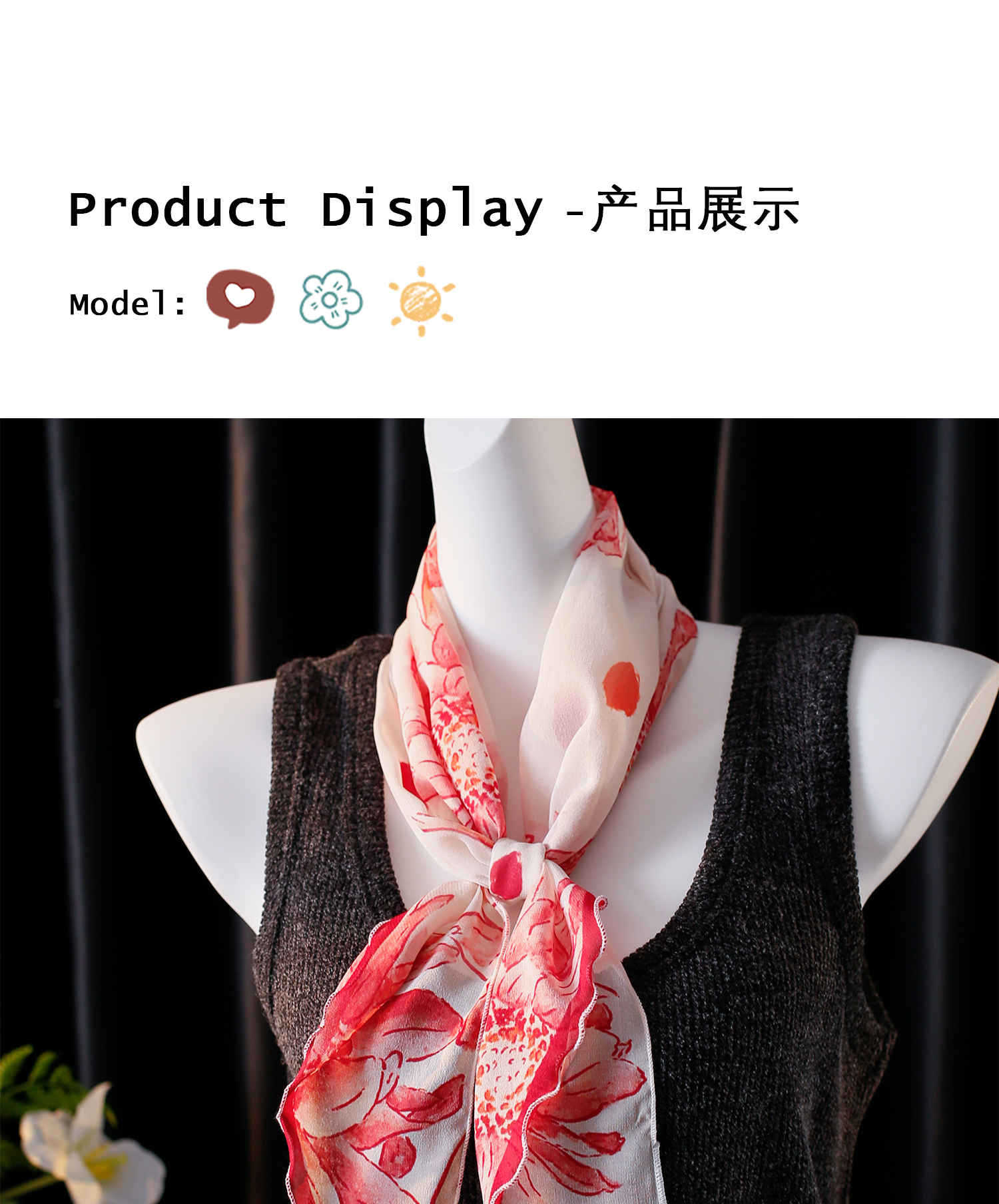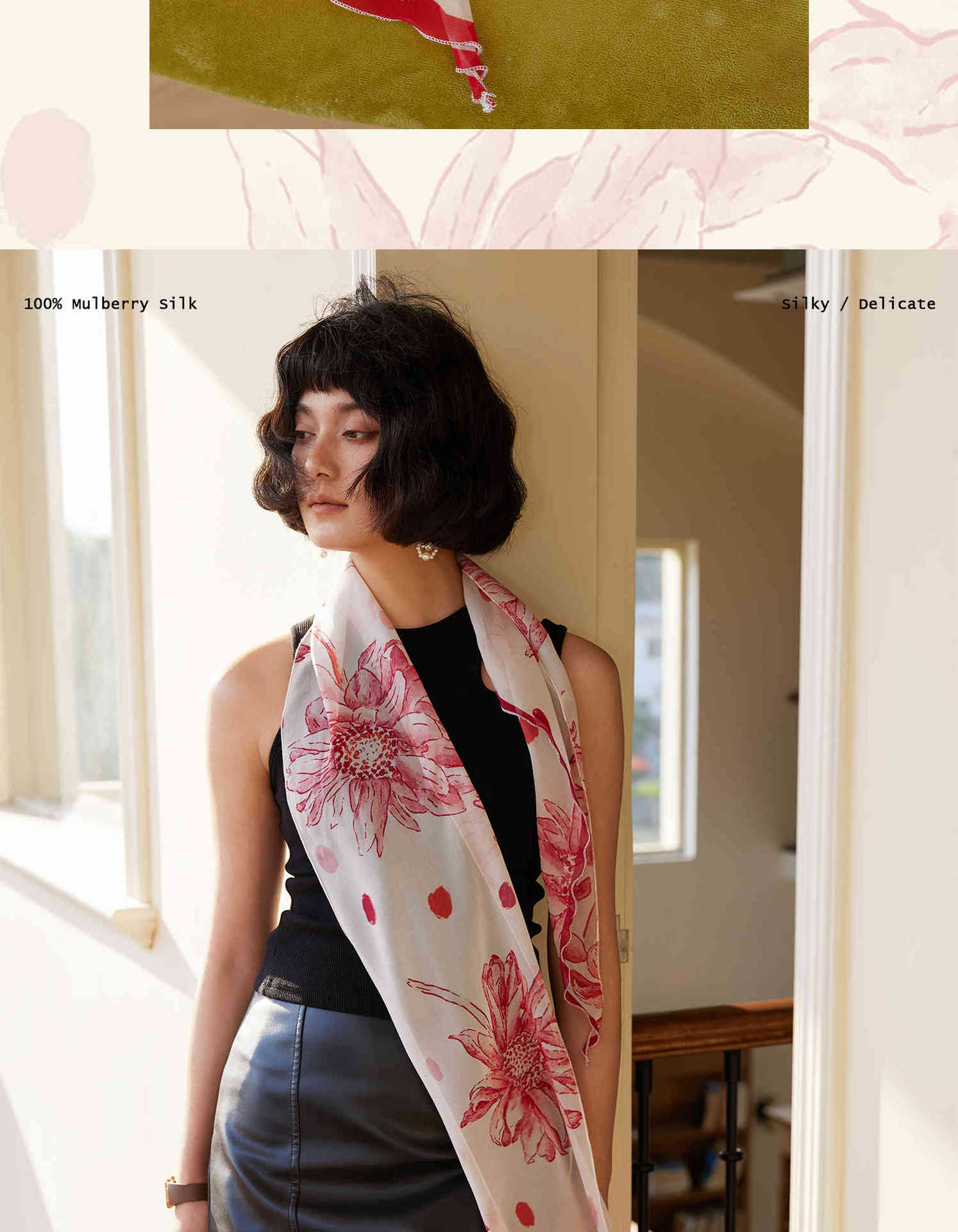 「原创艺术手绘红白花卉」100%真丝丝巾头巾花朵发带发饰新款女秋