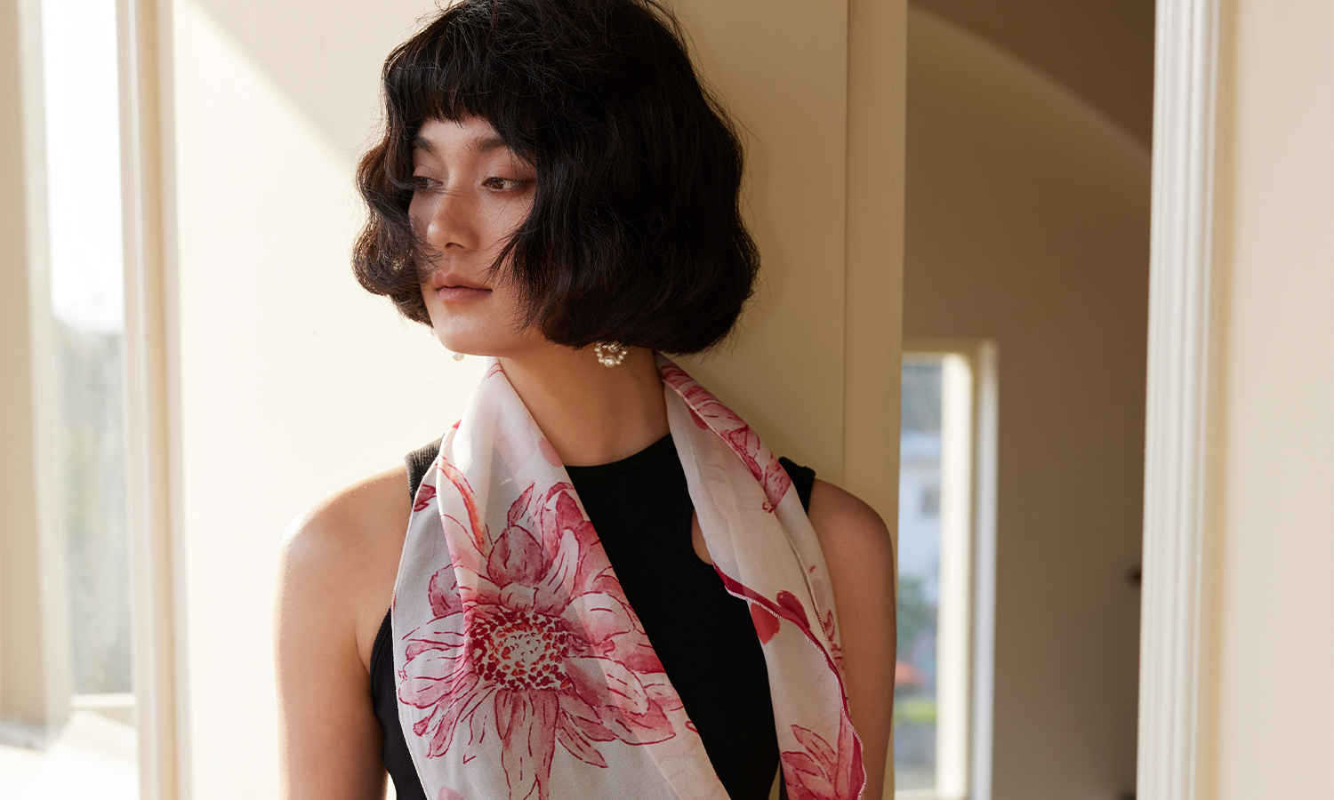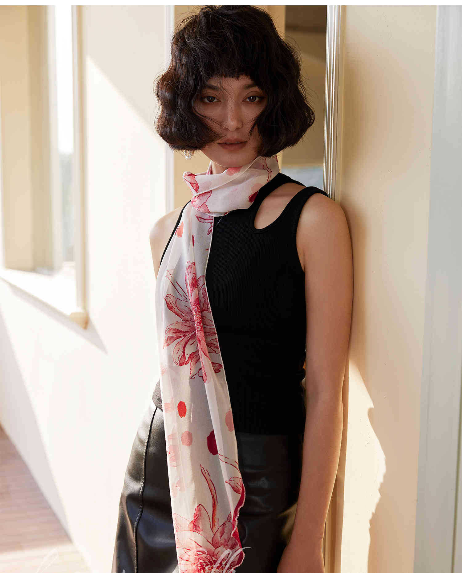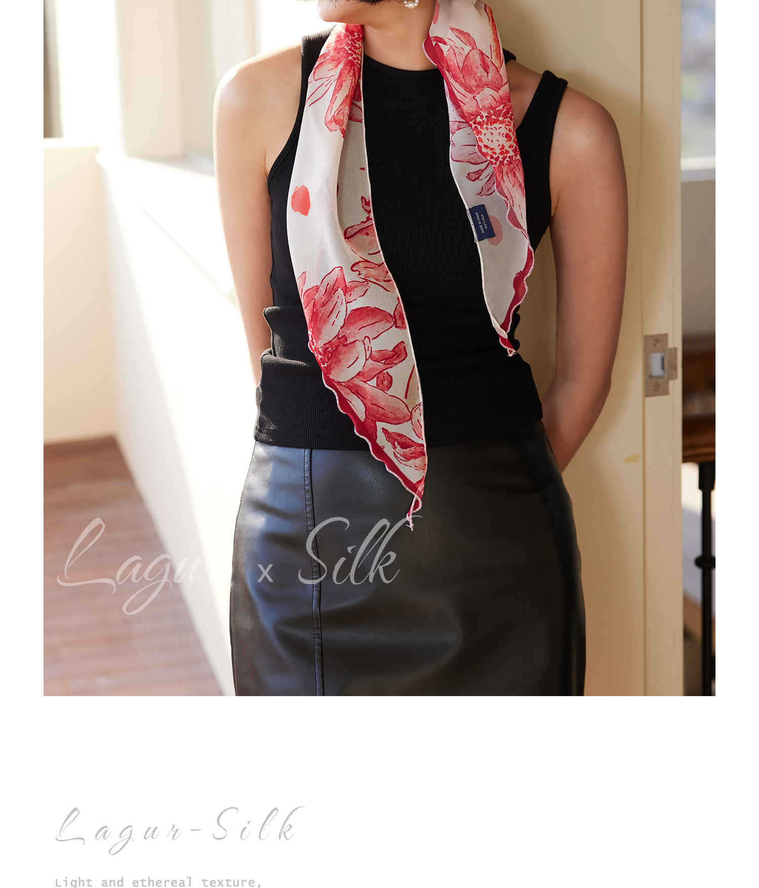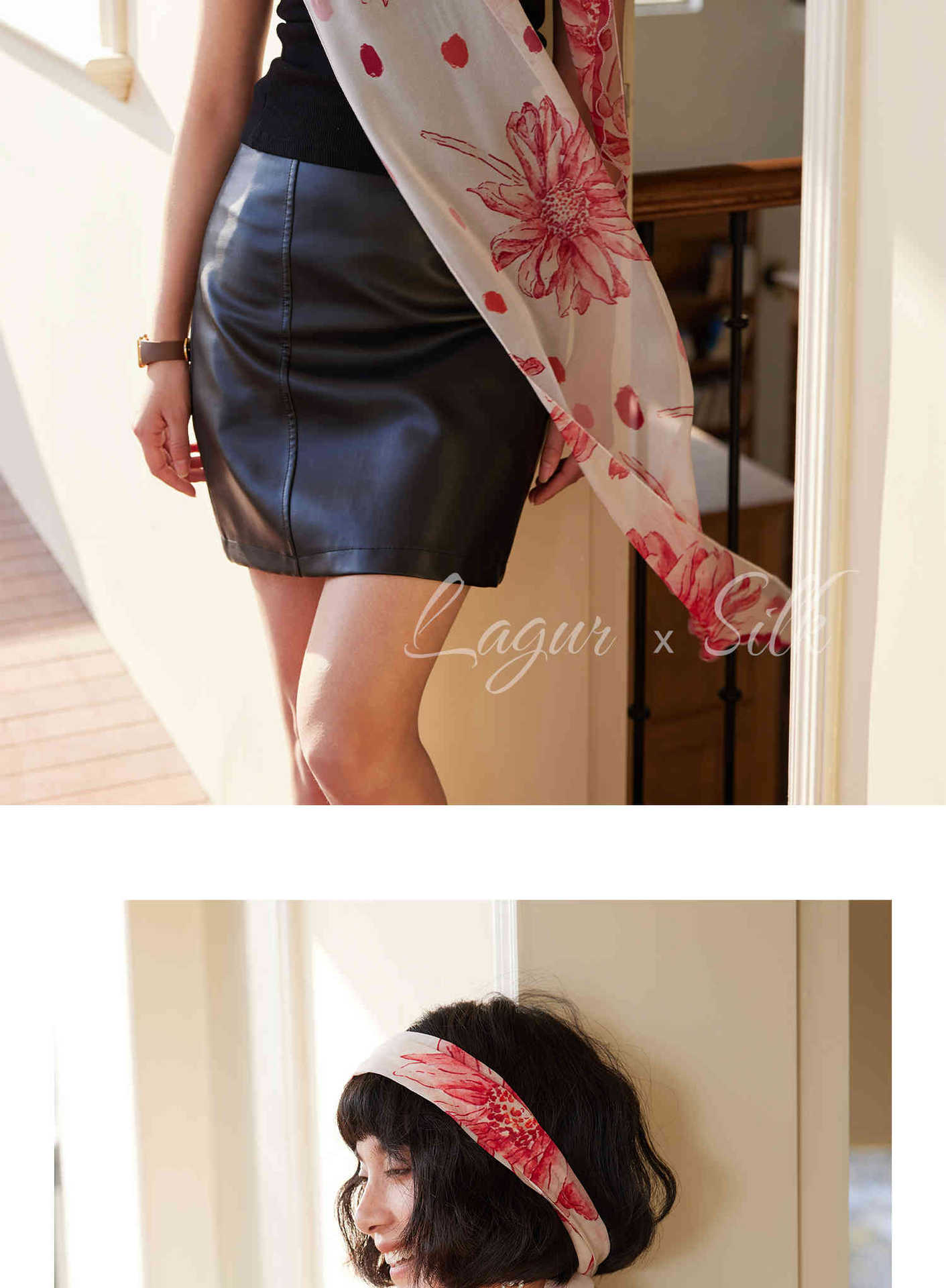 「原创艺术手绘红白花卉」100%真丝丝巾头巾花朵发带发饰新款女秋