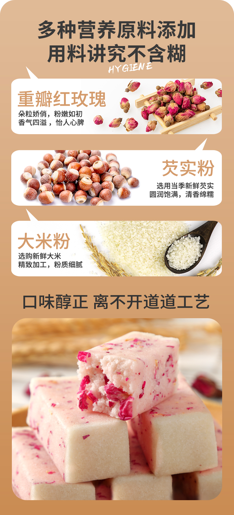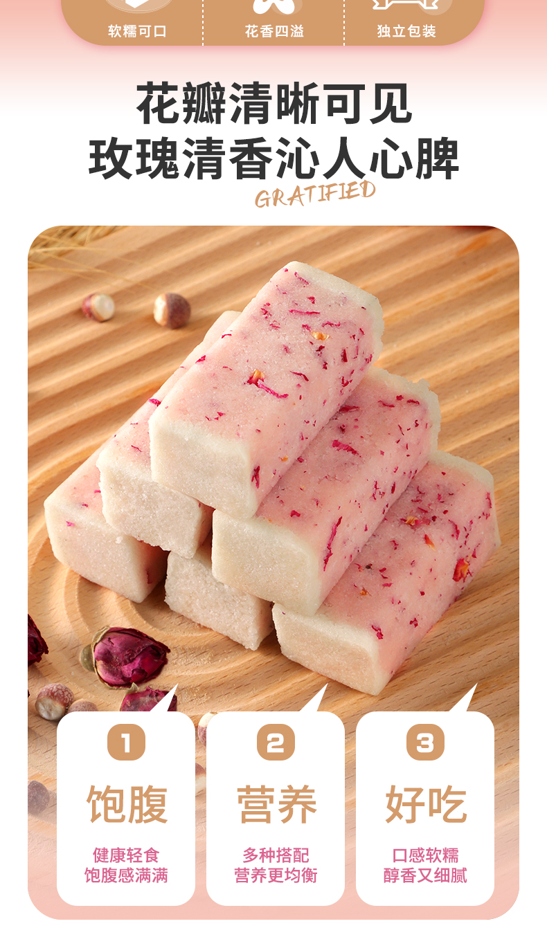 【9.9小食】松软清甜 | 重瓣玫瑰荧实糕 休闲零食点心传统中式糕点 可做早餐下午茶茶点 200g*3袋