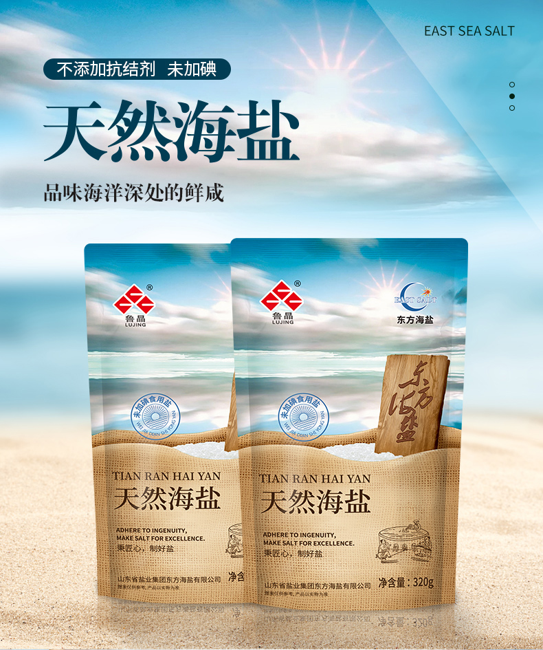 鲁晶(LUJING) 鲁晶未加碘天然海盐320g*6袋无碘无抗结剂食用盐厨房调味品